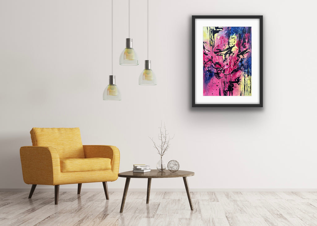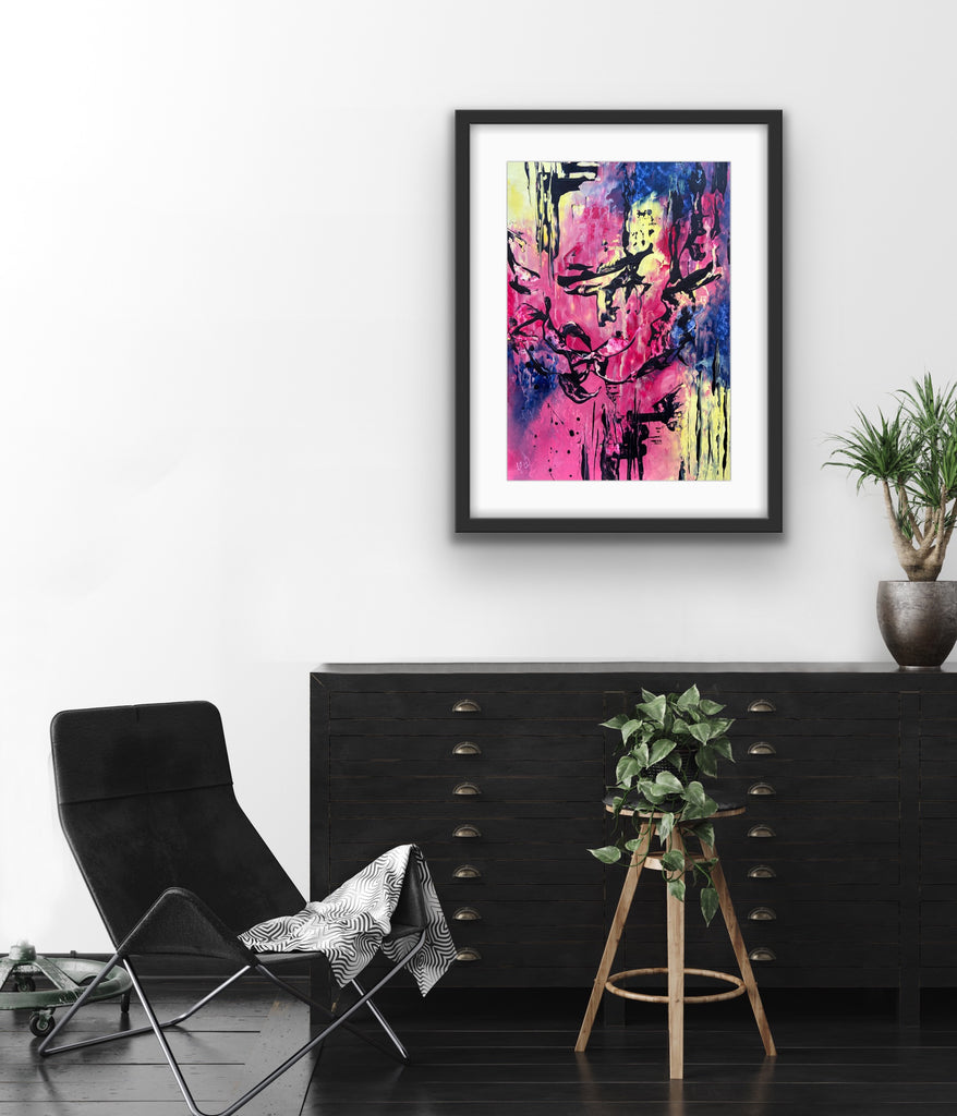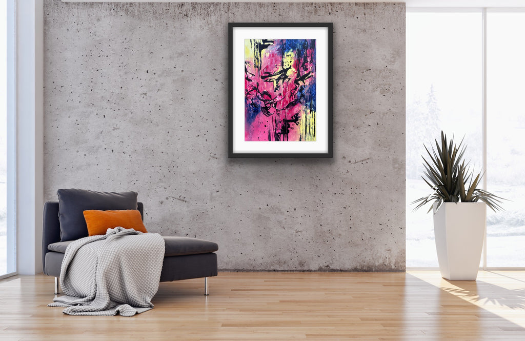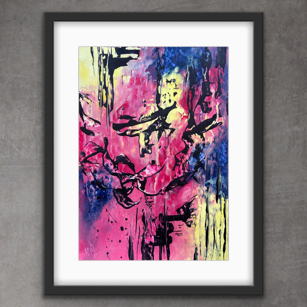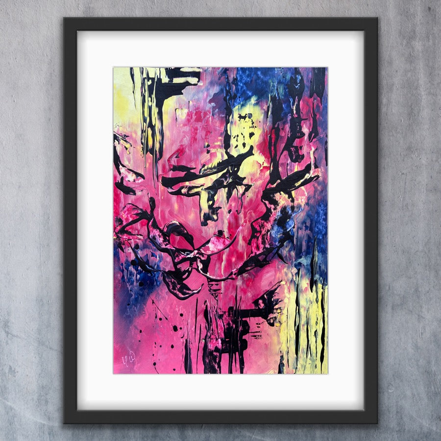 Intertwine is a beautiful and bold abstract painting symbolic of weaving through the connecting passing thoughts we have. This piece will brighten any corner of the room. Some images show what this piece looks like framed. Frames not included. 29.7 x 42 cm (A3 size) Acrylic on paper. Requires framing. No returns on original artworks so please choose carefully.