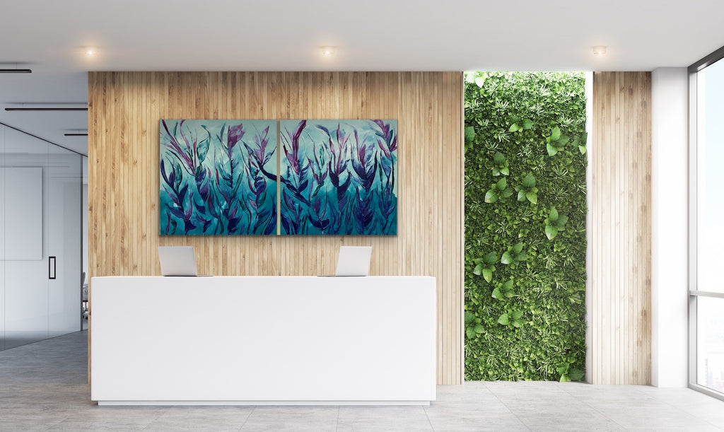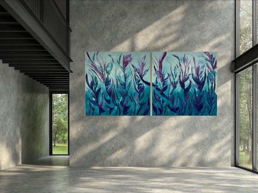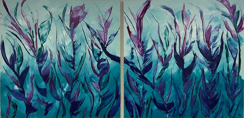 A diptych piece, Lavish is all about an abundance of beauty, rich colours with a serene feel. This is a very striking artwork set. 180 x 90 x 2 cm. Acrylic on canvas, ready to hang. No returns on original artworks so please choose carefully.