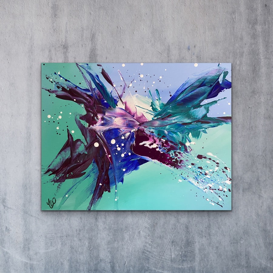 New Beginnings is an abstract piece with beautiful colour and movement. If you would like to see how this painting was made take a look at my YouTube channel, link is on my homepage. 45 x 35 x 2 cm. Acrylic on canvas, ready to hang. No returns on original artworks so please choose carefully.