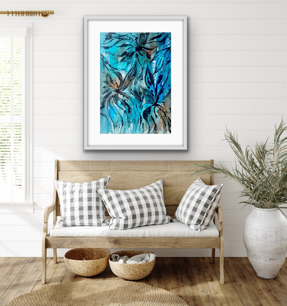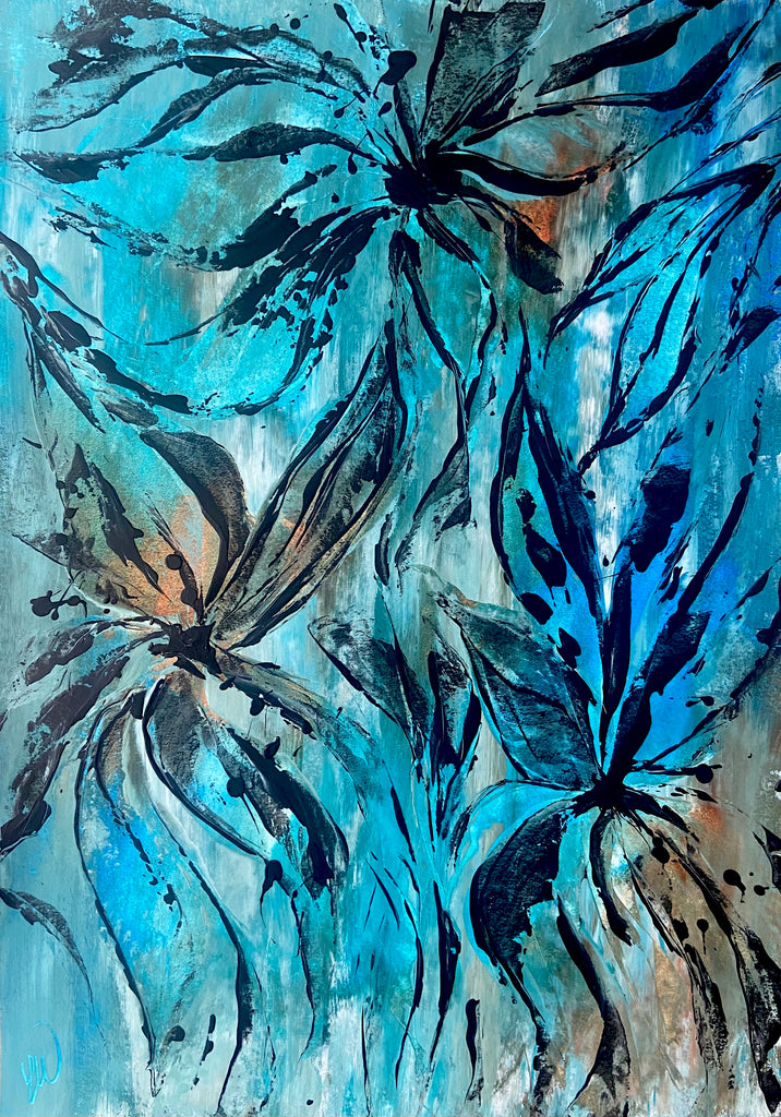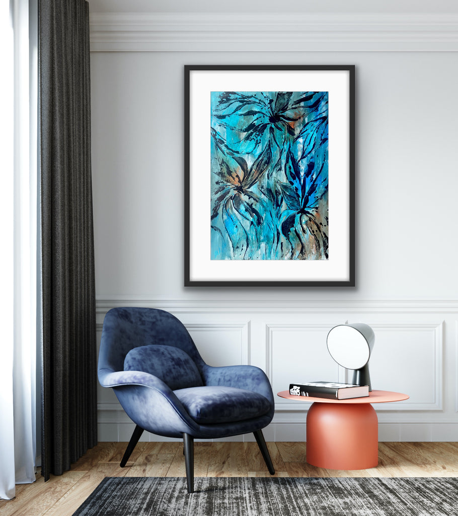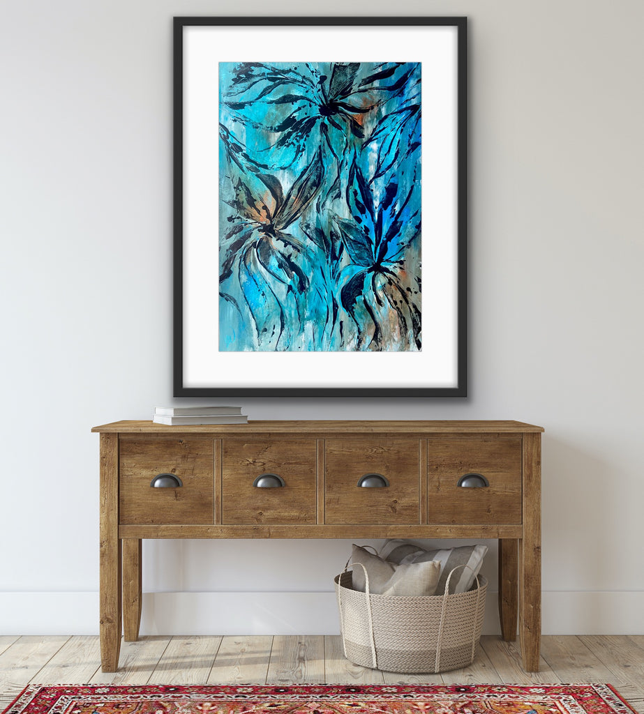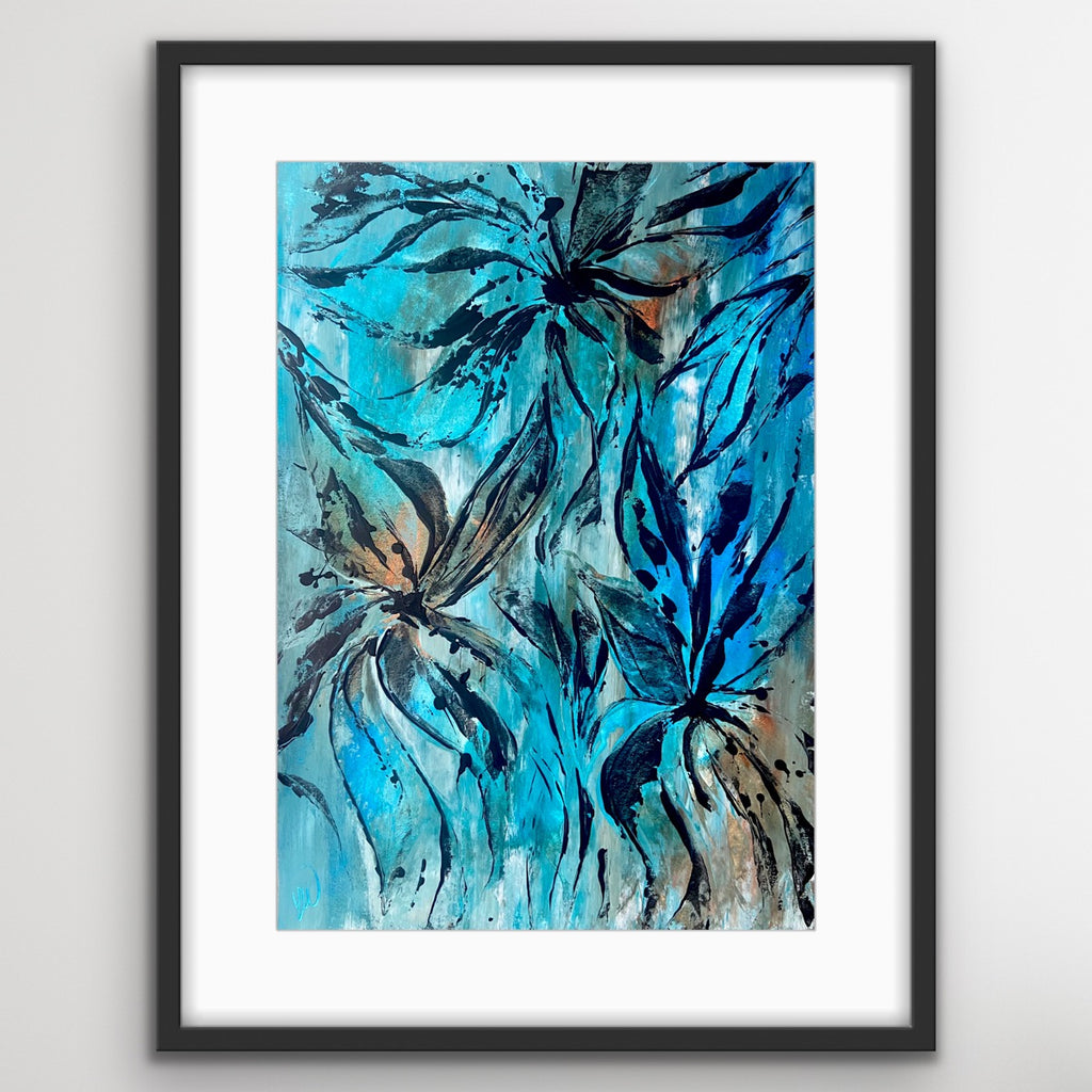 Nightfall Blooms is a beautiful abstract botanical piece. Some images show what this piece looks like framed. Frames not included. 59.4 x 42 cm (A2 size) Acrylic on paper. Requires framing. No returns on original artworks so please choose carefully.