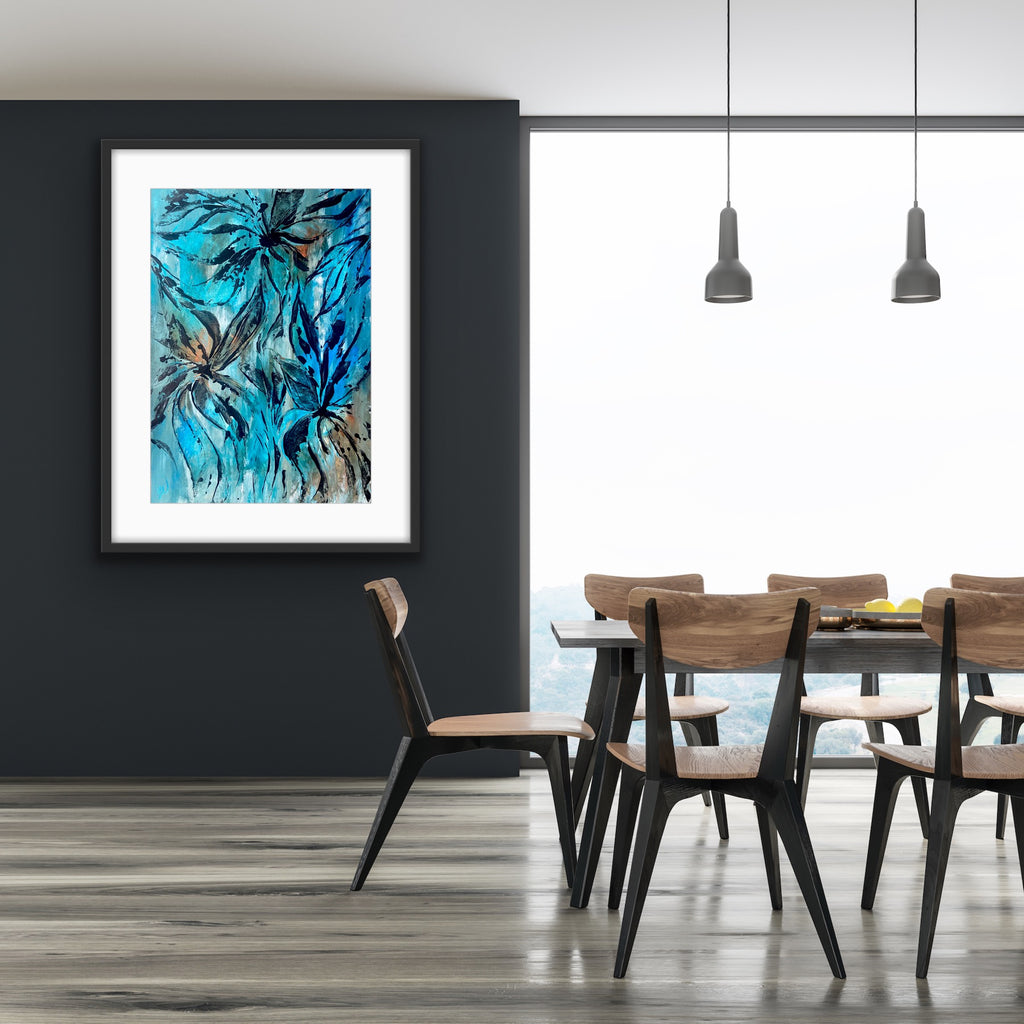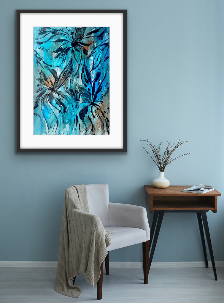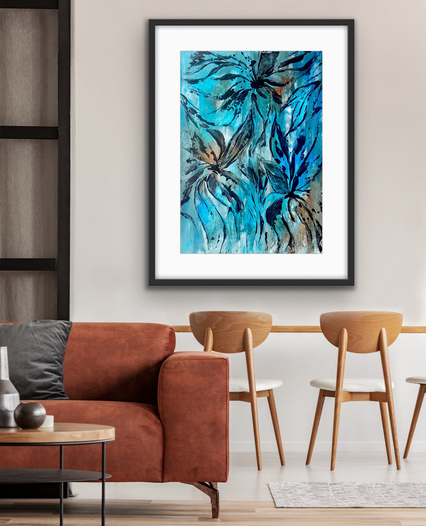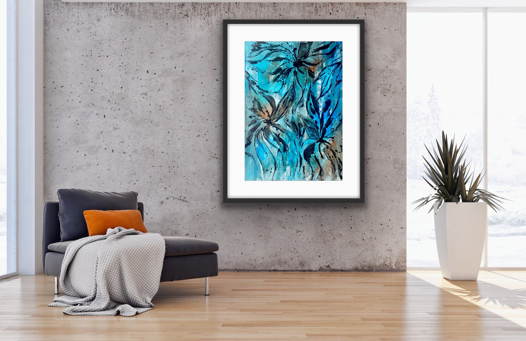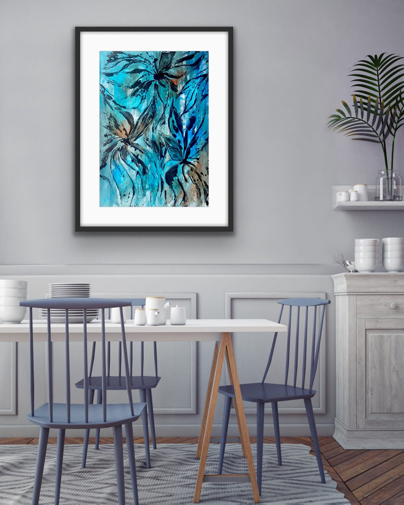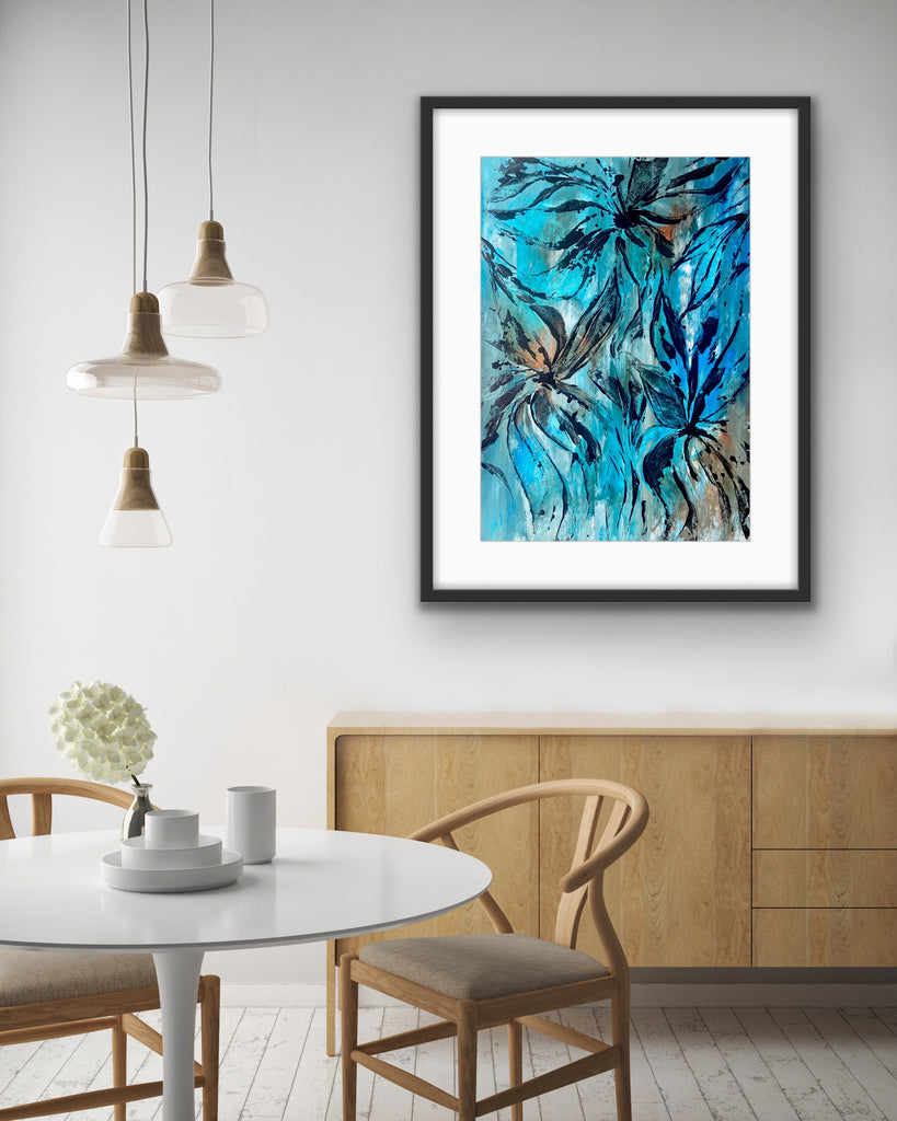 Nightfall Blooms is a beautiful abstract botanical piece. Some images show what this piece looks like framed. Frames not included. 59.4 x 42 cm (A2 size) Acrylic on paper. Requires framing. No returns on original artworks so please choose carefully.