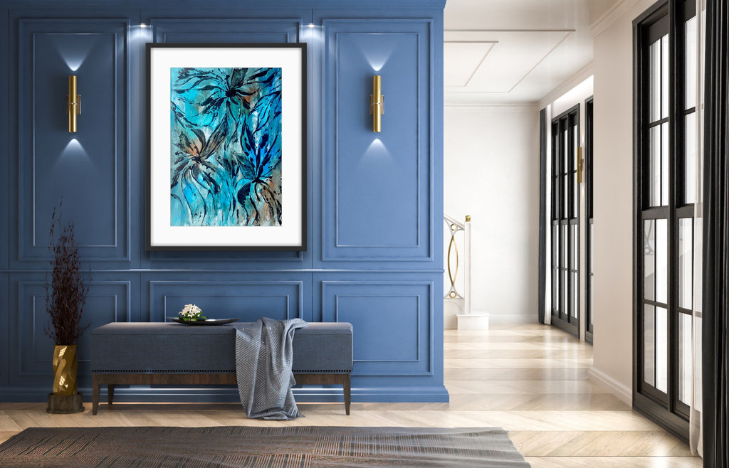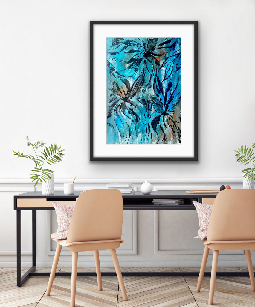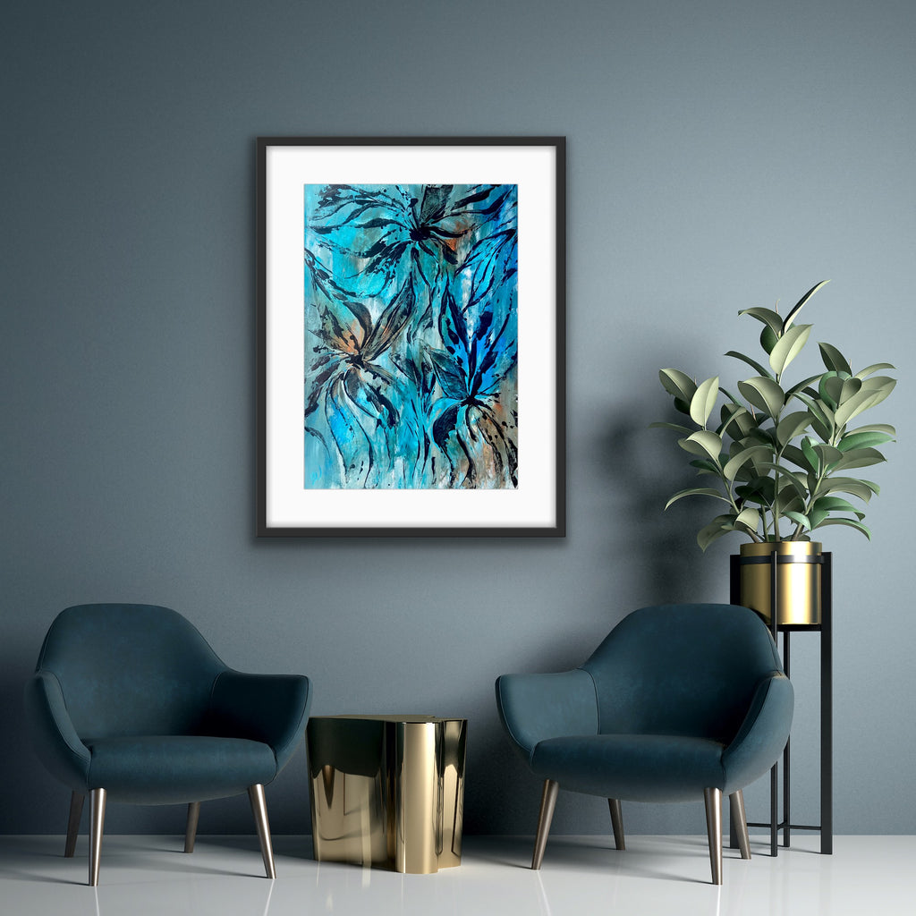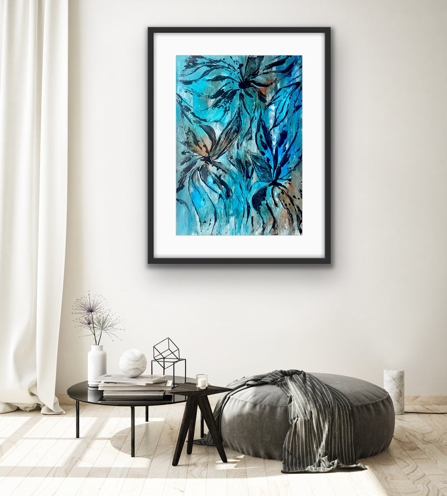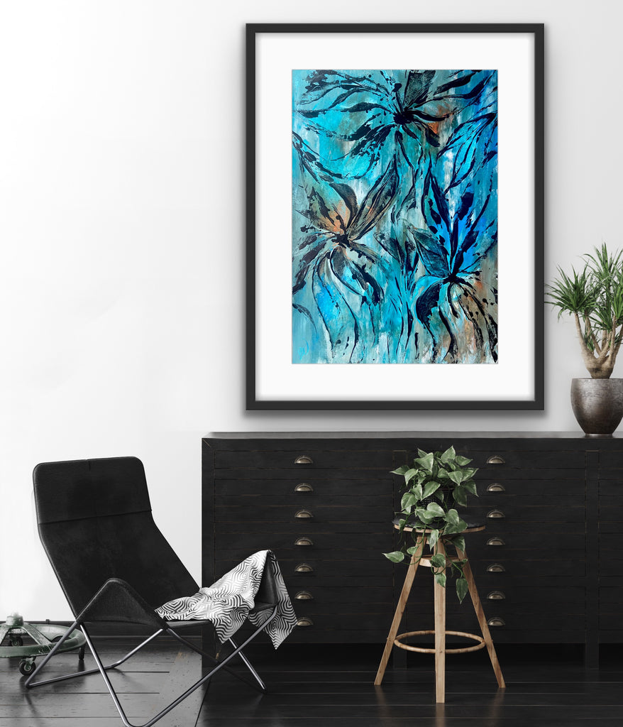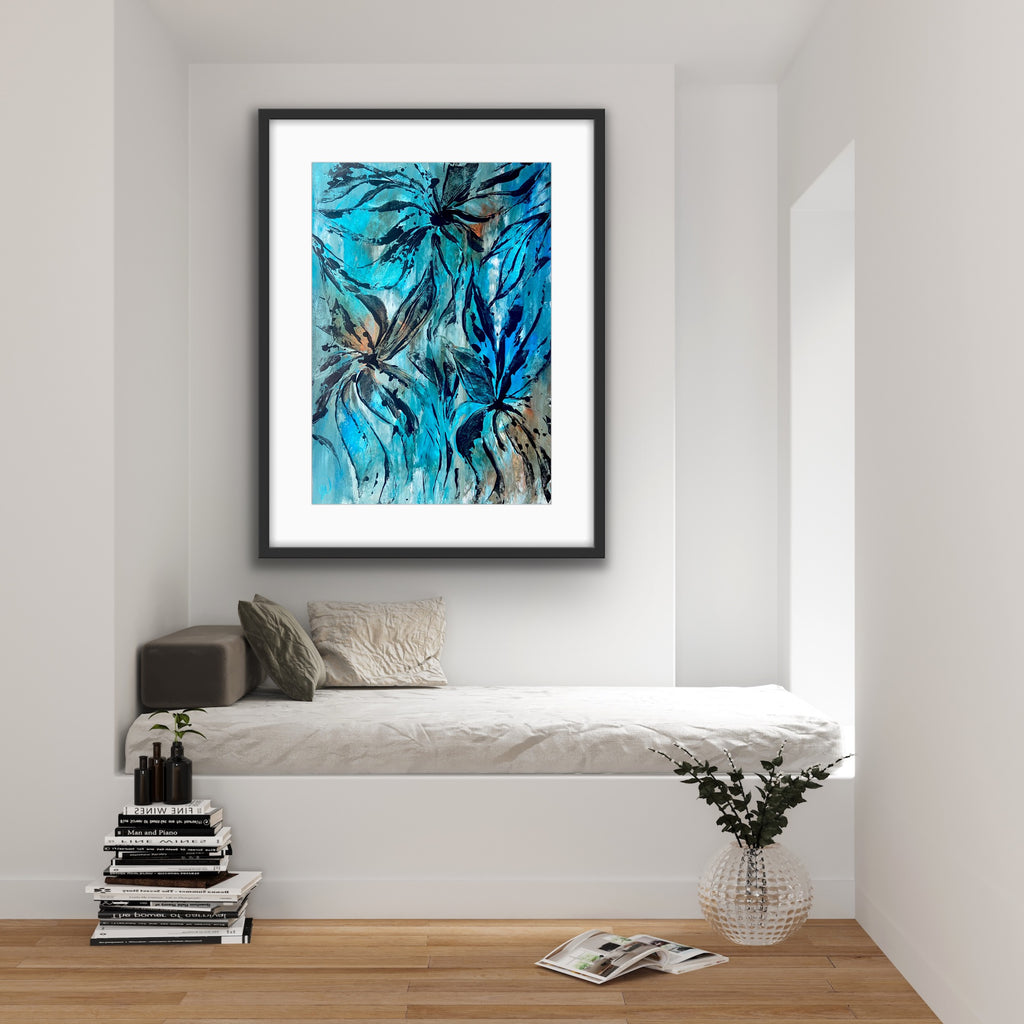 Nightfall Blooms is a beautiful abstract botanical piece. Some images show what this piece looks like framed. Frames not included. 59.4 x 42 cm (A2 size) Acrylic on paper. Requires framing. No returns on original artworks so please choose carefully.