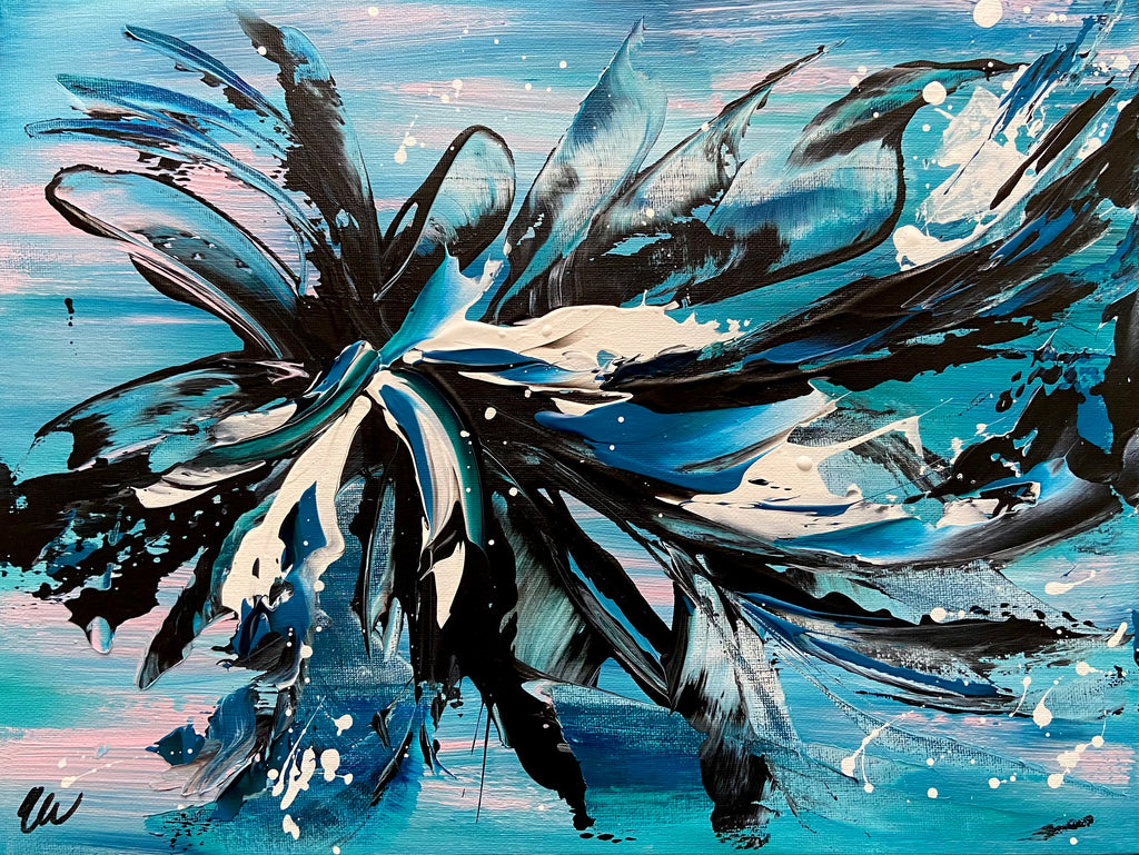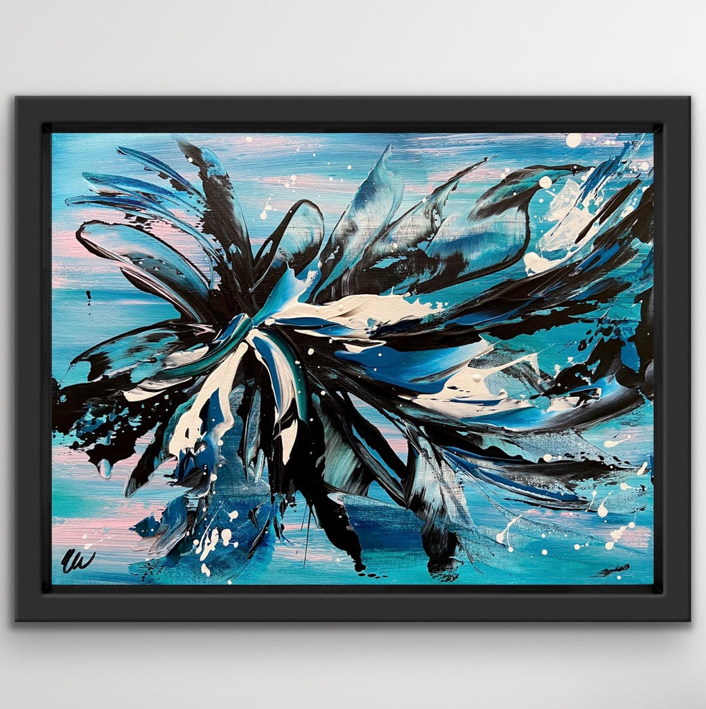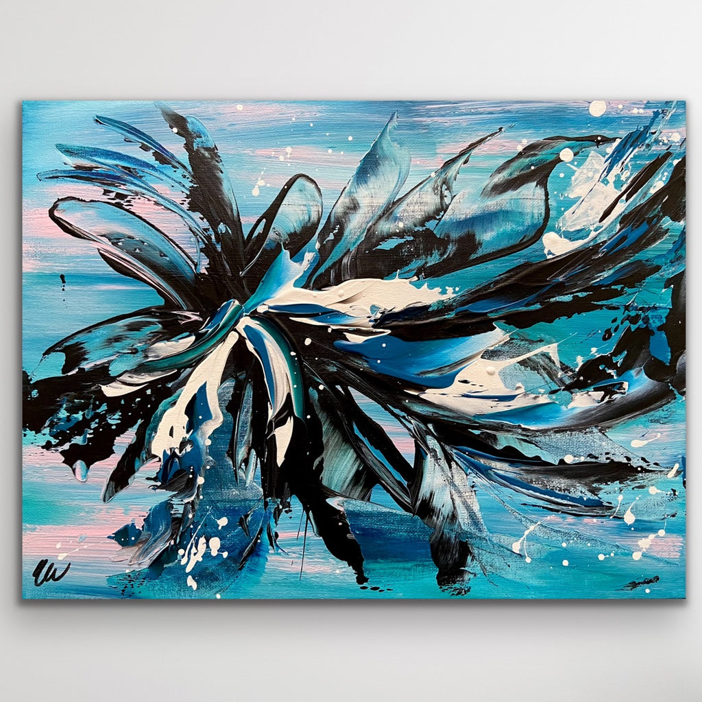 Oceans Away is a beautiful abstract piece that will brighten up any corner in your home. 41 x 30 cm. Acrylic on canvas board. Requires framing. Some images show what this painting will look like framed. Frames not included. See how this painting was made on my YouTube channel. No returns on original artworks so please choose carefully.
