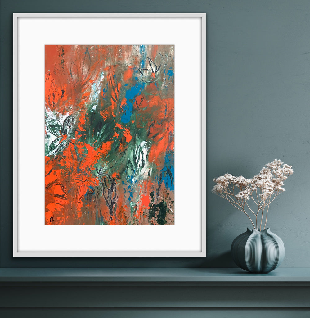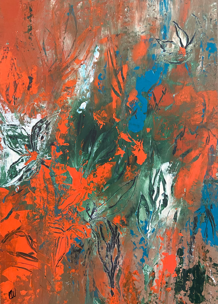 Peaceful Escape is a beautiful abstract botanical painting. Acrylic on paper. 29.7 x 42 cm (A3 size). Frames not included. Requires framing. No returns on original artworks so please choose carefully.