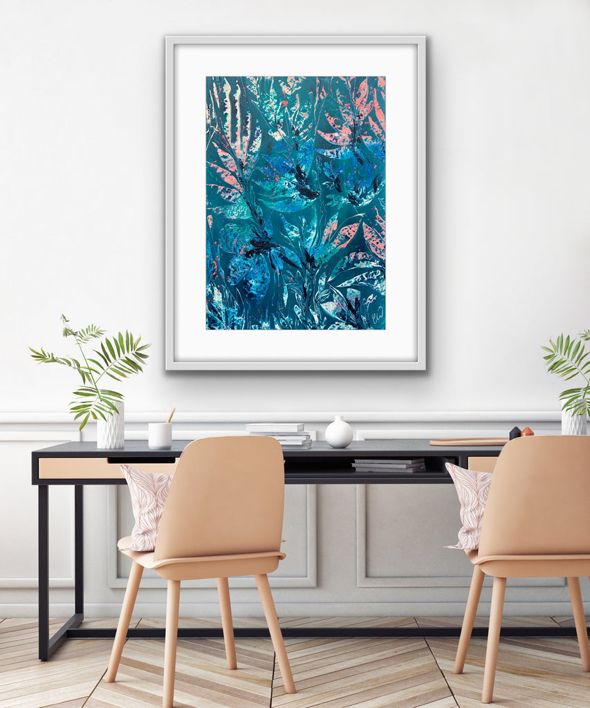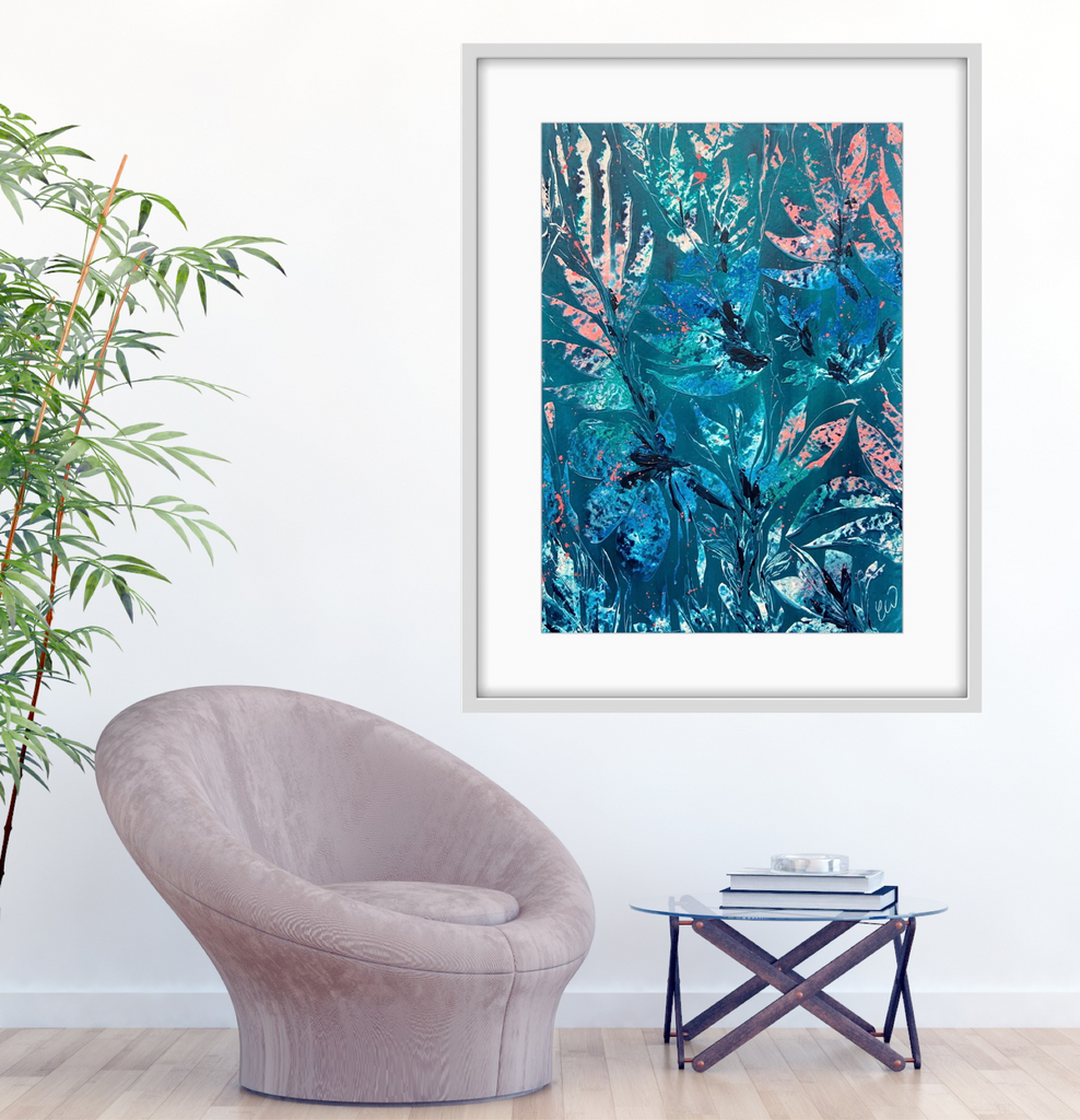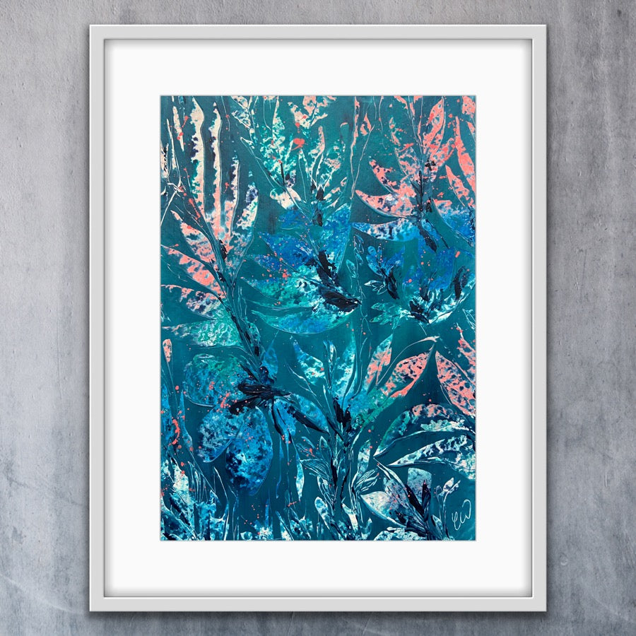 Raining Summer is a beautiful abstract botanical piece that will lift any space! Some images show what this piece looks like framed. Frames not included. 59.4 x 42 cm (A2 size) Acrylic on paper. Requires framing. No returns on original artworks so please choose carefully.