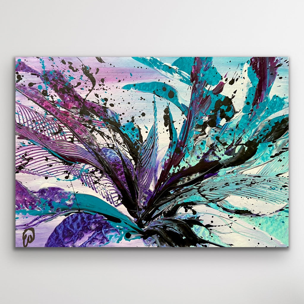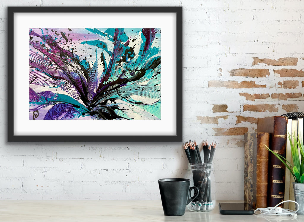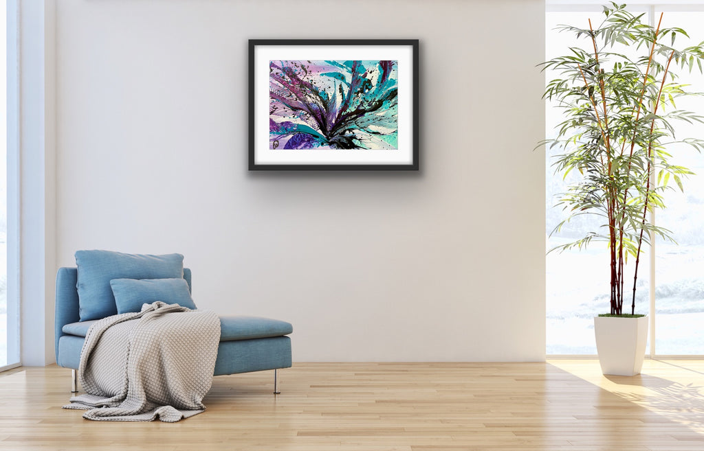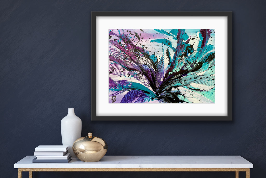 Somewhere Inbetween is a beautiful abstract piece with a gorgeous colour combo and lots of captured movement. Some images show what this piece looks like framed. Frames not included. 29.7 x 42 cm (A3 size) Acrylic on paper. Requires framing. Watch how this painting was made on my YouTube channel! Link to my YouTube is on the home page. No returns on original artworks so please choose carefully.