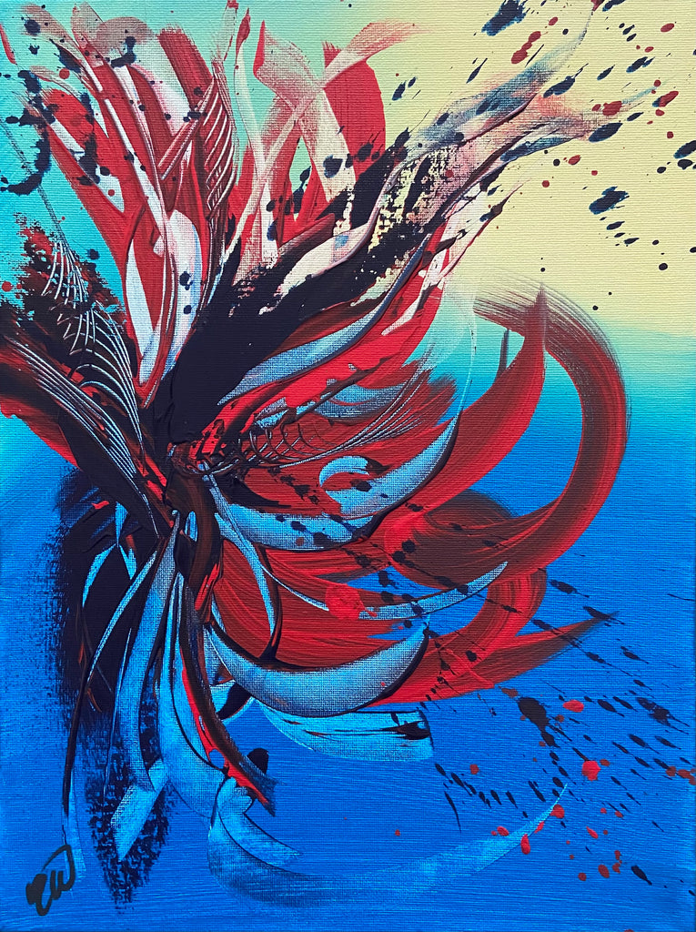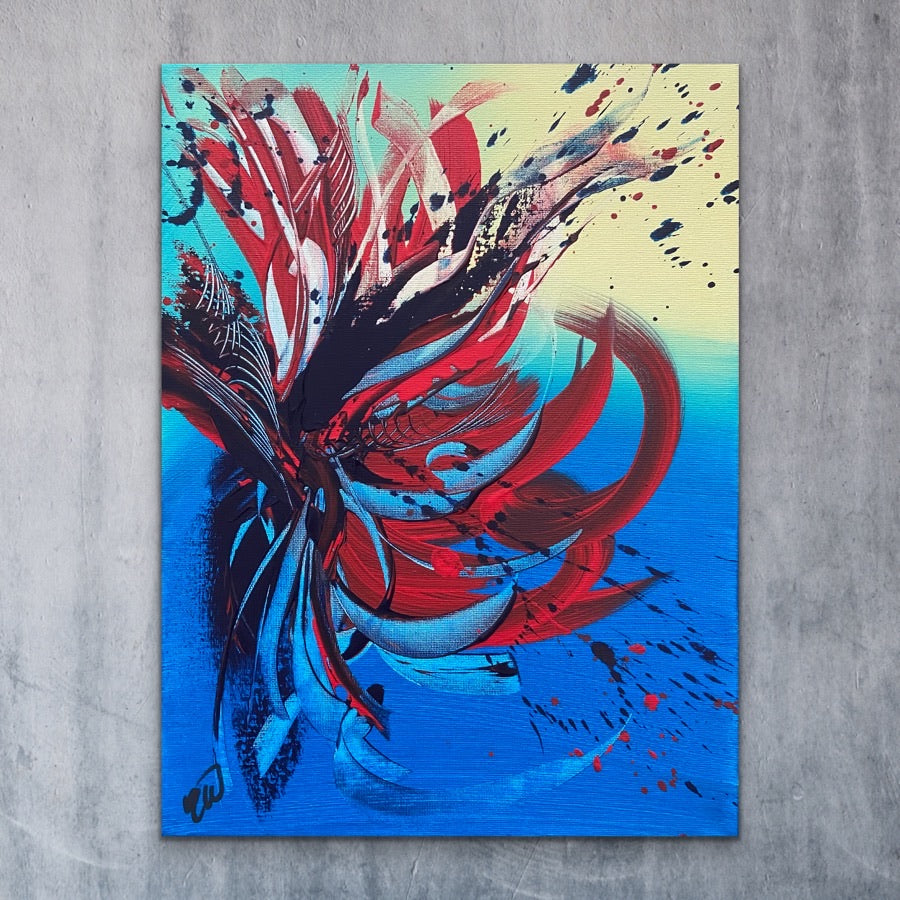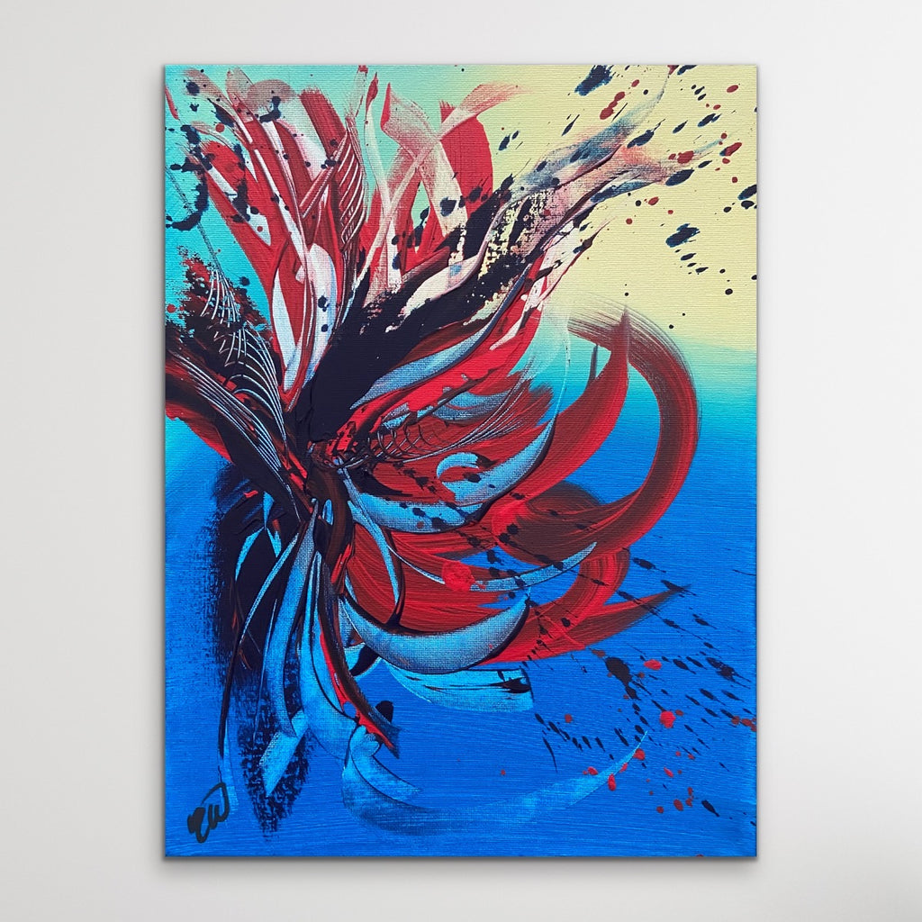 Spitfire is a stunning abstract piece that is full of life and beautiful colours! 30 x 40cm. Acrylic on canvas, ready to hang. Watch how this painting was made on my YouTube! Link to my YouTube is on the home page. No returns on original artworks so please choose carefully.