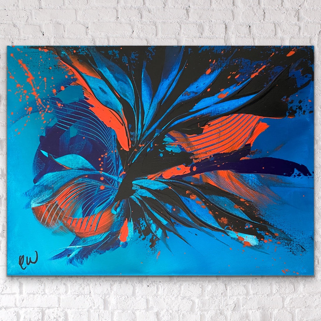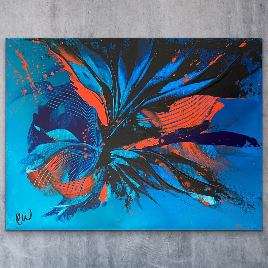 Submerged is a beautifully coloured abstract piece with lots of life and movement. 30 x 40cm. Acrylic on canvas, ready to hang. Watch how this painting was made on my YouTube! Link to my YouTube is on the home page. No returns on original artworks so please choose carefully.