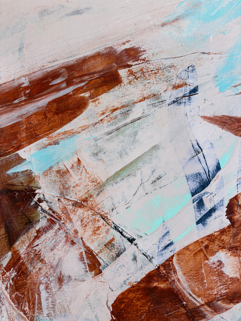 Sun Chasing is a beautifully textured abstract botanical painting. 59.4 x 84.1 cm (A1 size). Acrylic on paper. Frame not included. Requires framing. No returns on original artworks for change of mind so please choose carefully.