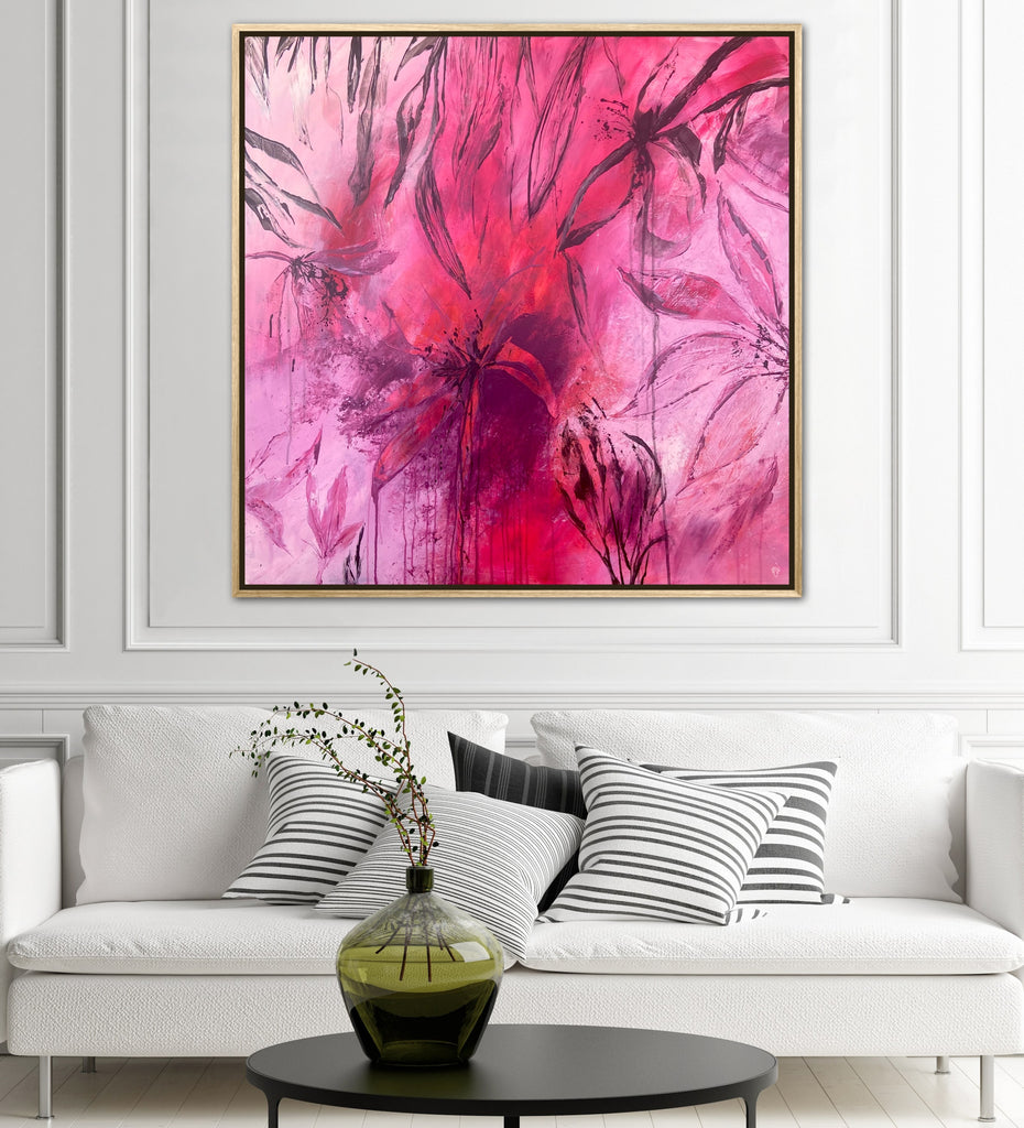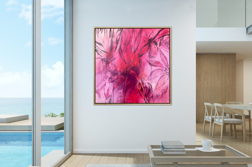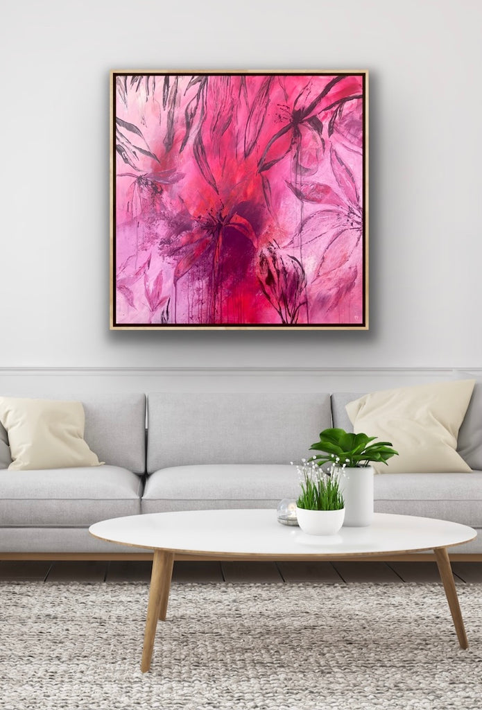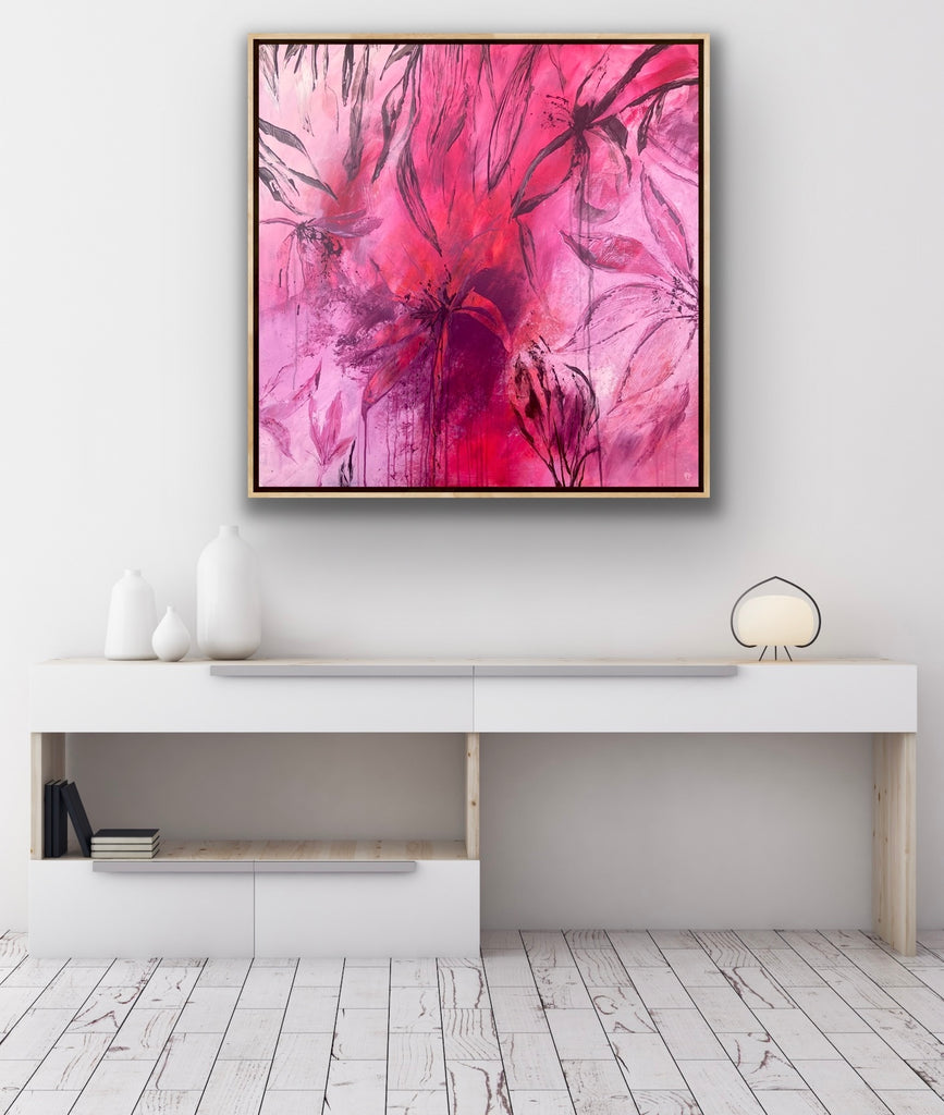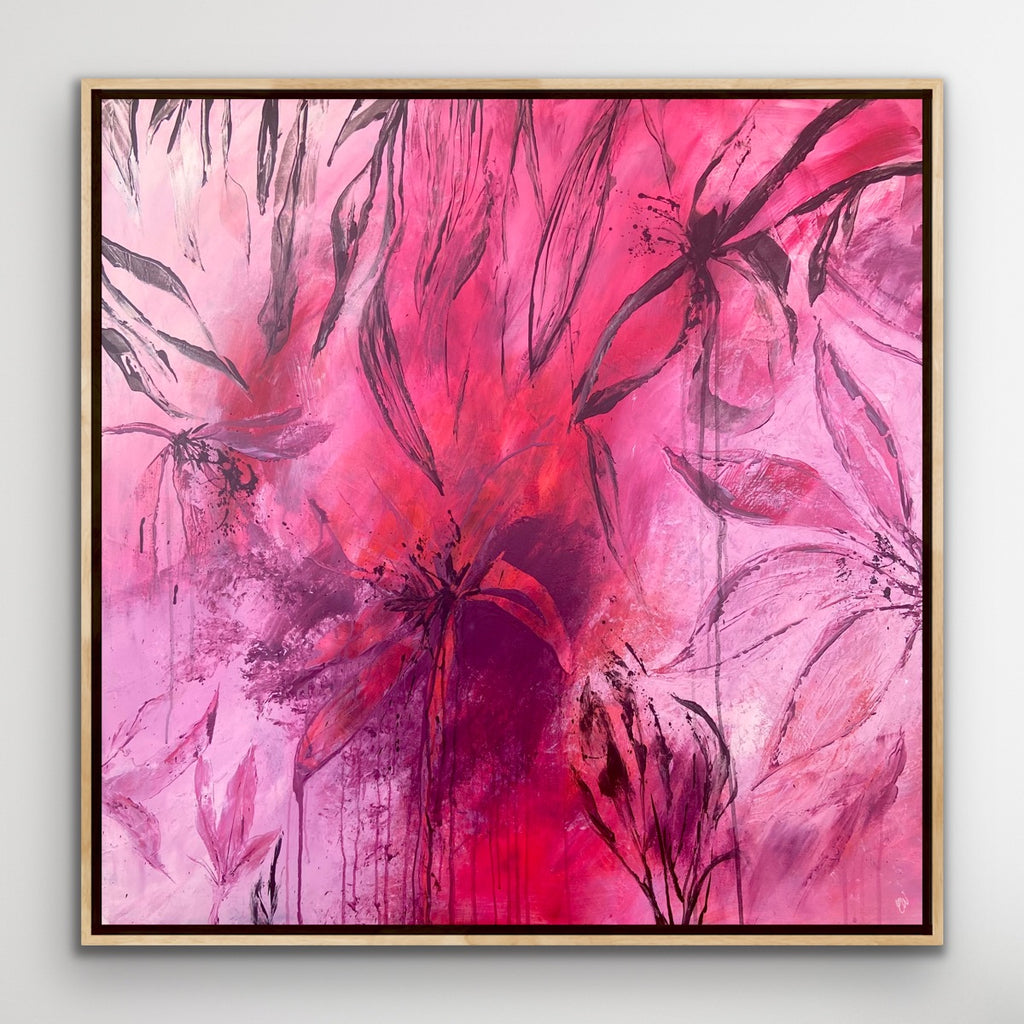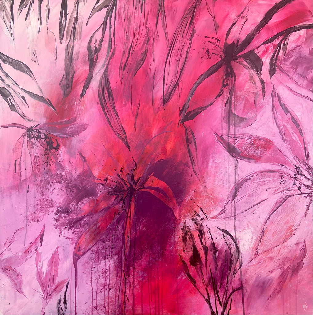 Sun Drenched is a beautiful abstract botanical piece that is very textured and has a warm and balmy feel. 101.6 x 101.6 x 5 cm. Acrylic on canvas, ready to hang. Frames not included. No returns on original artworks so please choose carefully.