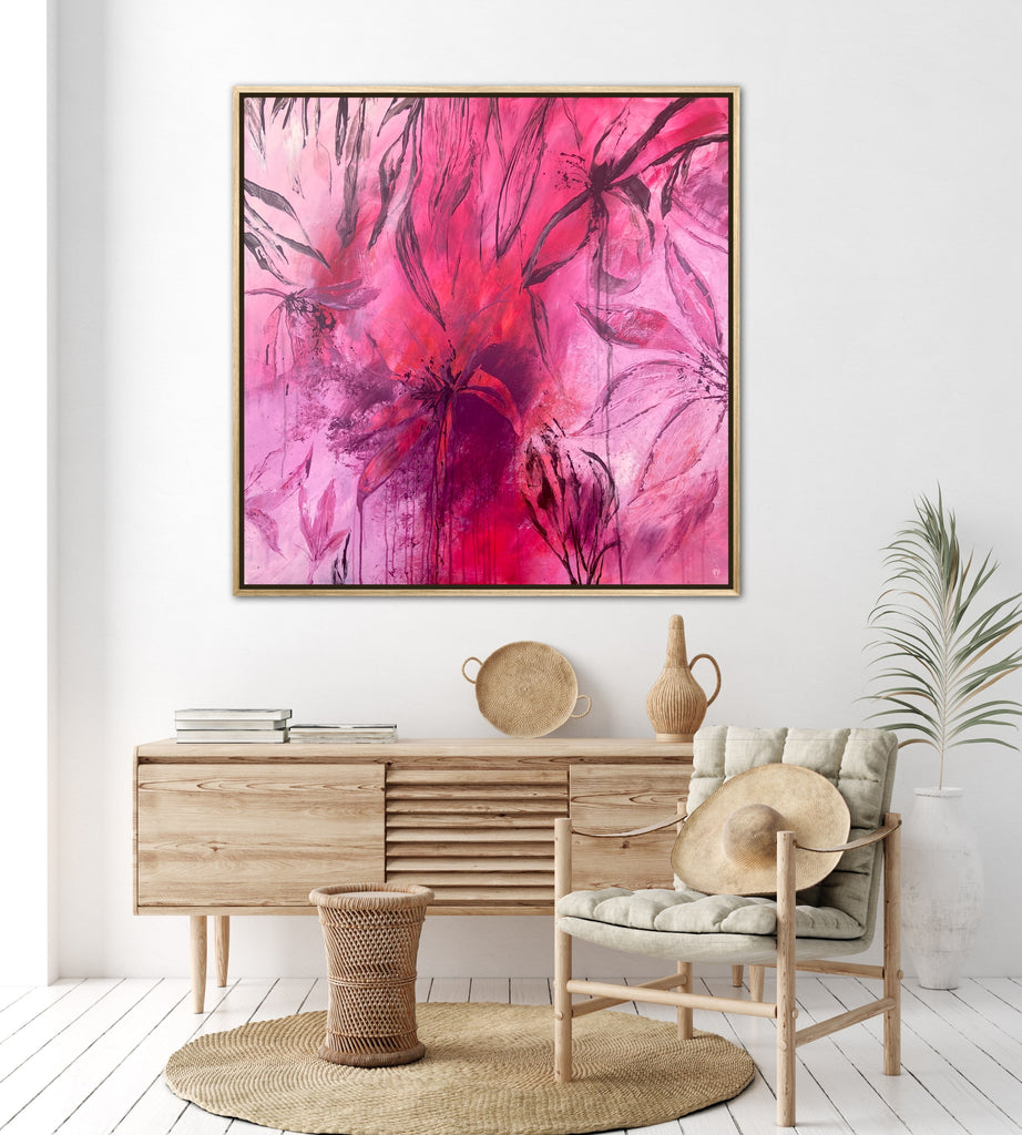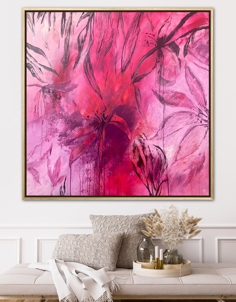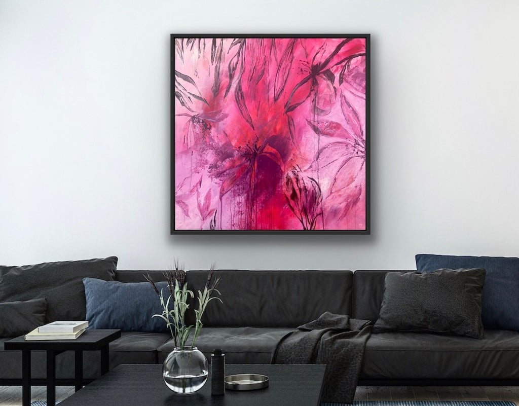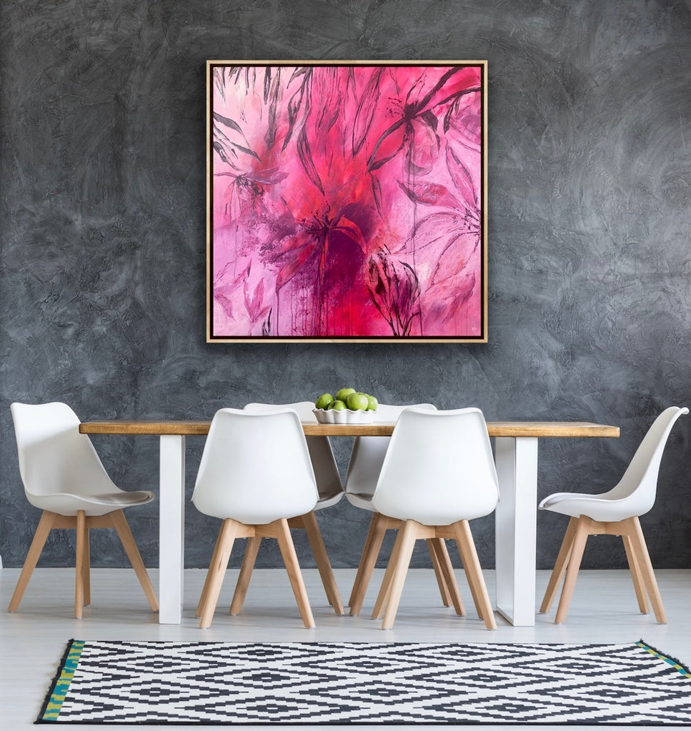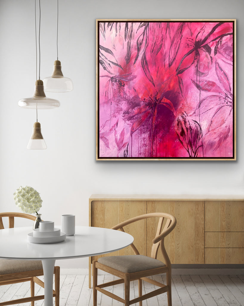 Sun Drenched is a beautiful abstract botanical piece that is very textured and has a warm and balmy feel. 101.6 x 101.6 x 5 cm. Acrylic on canvas, ready to hang. Frames not included. No returns on original artworks so please choose carefully.