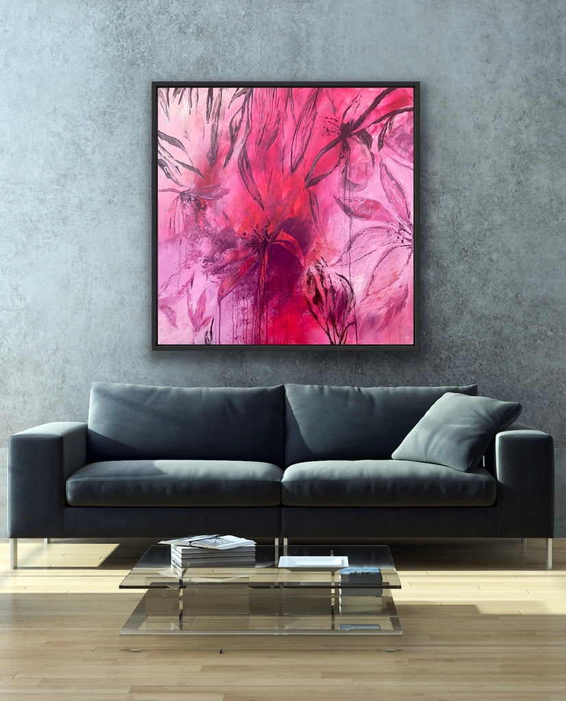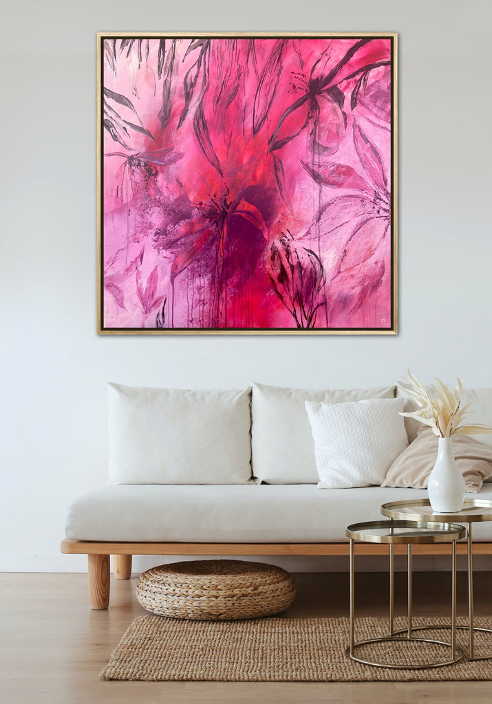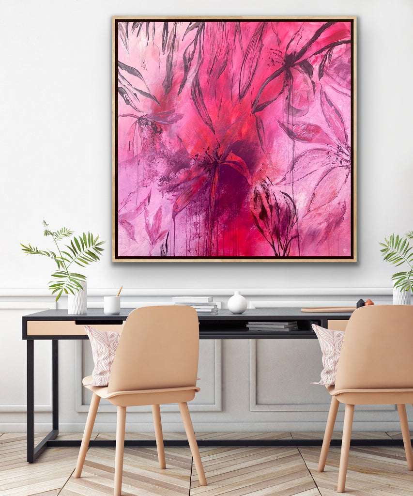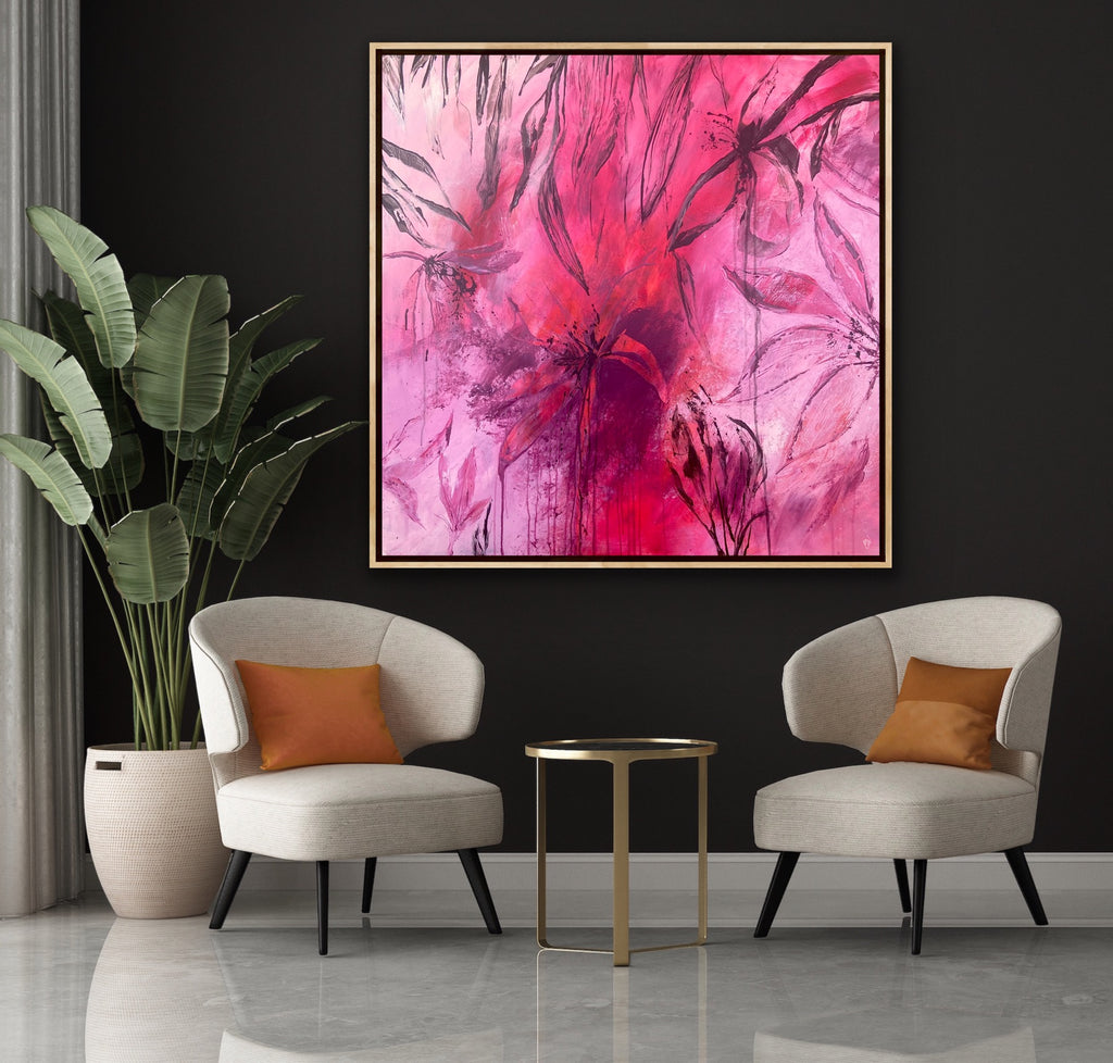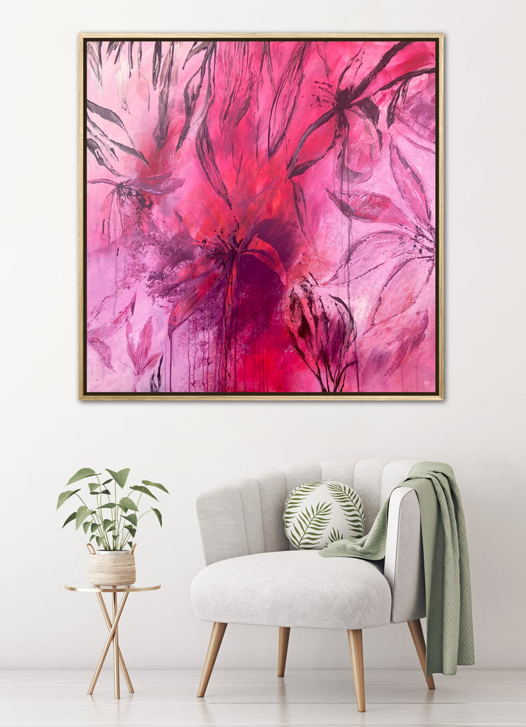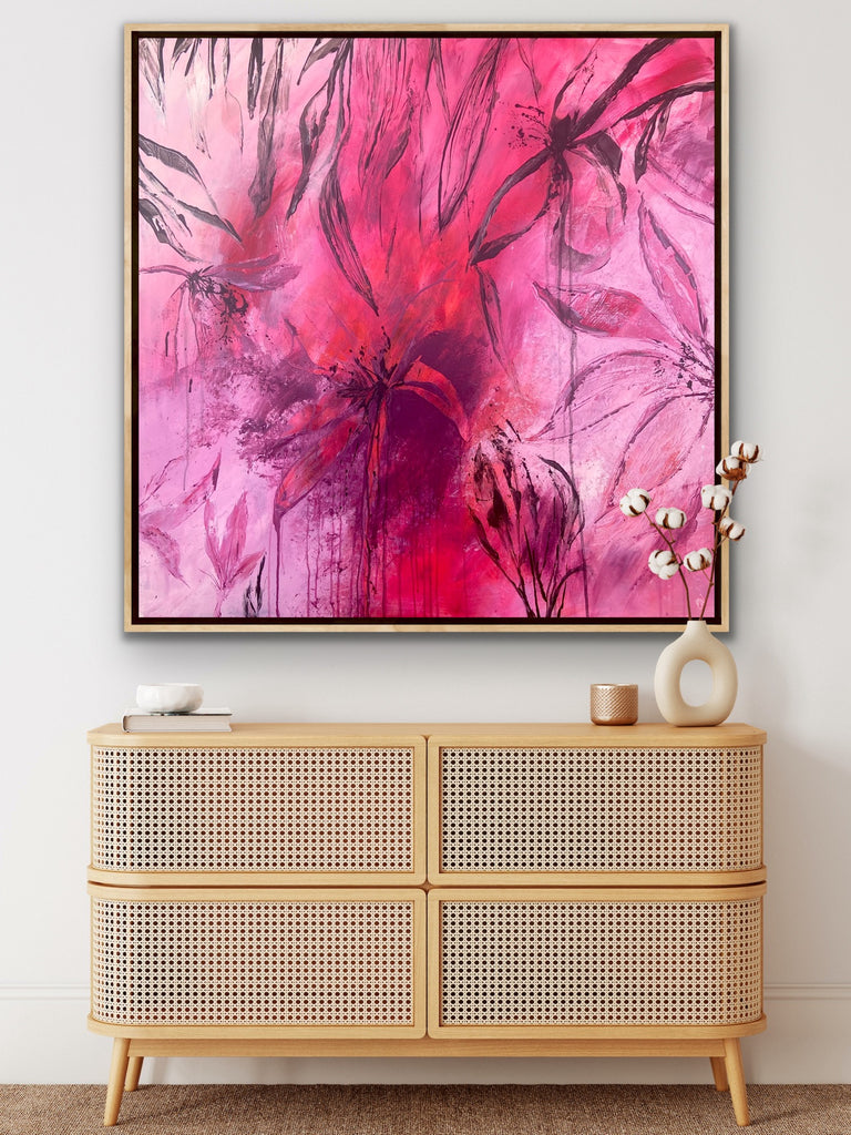 Sun Drenched is a beautiful abstract botanical piece that is very textured and has a warm and balmy feel. 101.6 x 101.6 x 5 cm. Acrylic on canvas, ready to hang. Frames not included. No returns on original artworks so please choose carefully.