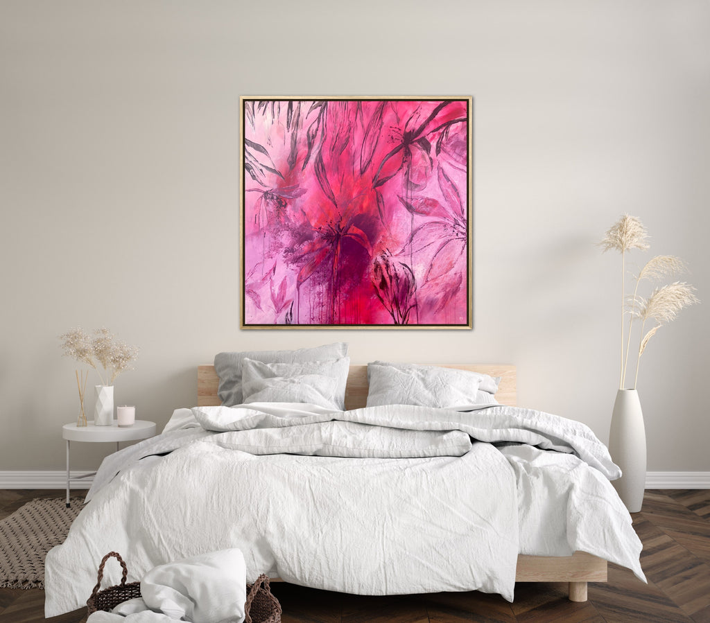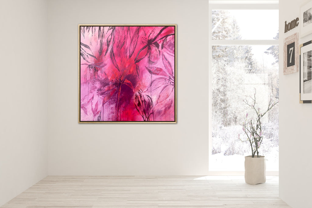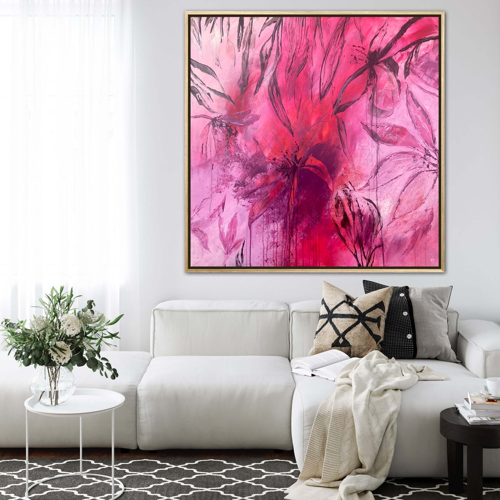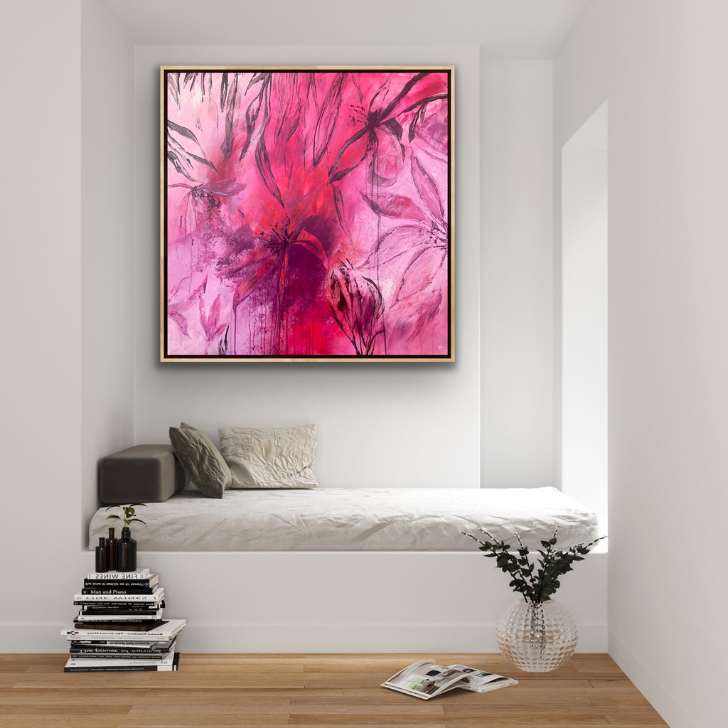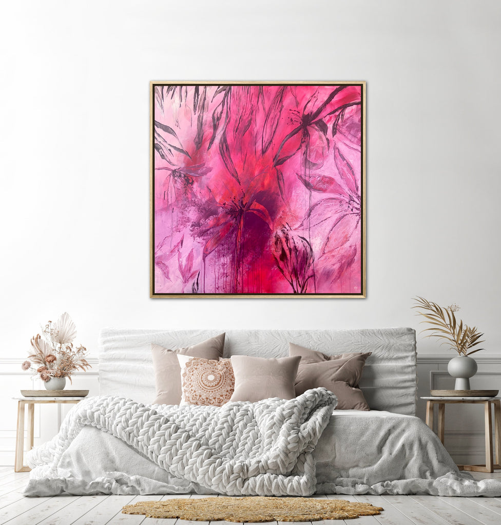 Sun Drenched is a beautiful abstract botanical piece that is very textured and has a warm and balmy feel. 101.6 x 101.6 x 5 cm. Acrylic on canvas, ready to hang. Frames not included. No returns on original artworks so please choose carefully.