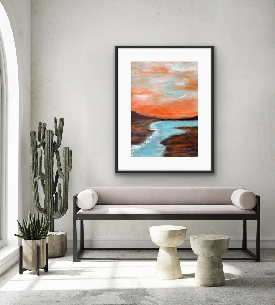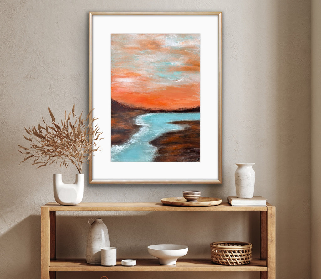The Inlet is a beautiful abstract landscape/seascape painting. 59.4 x 42 cm (A2 size). Acrylic on paper. Frame not included. Requires framing. No returns on original artworks for change of mind so please choose carefully.