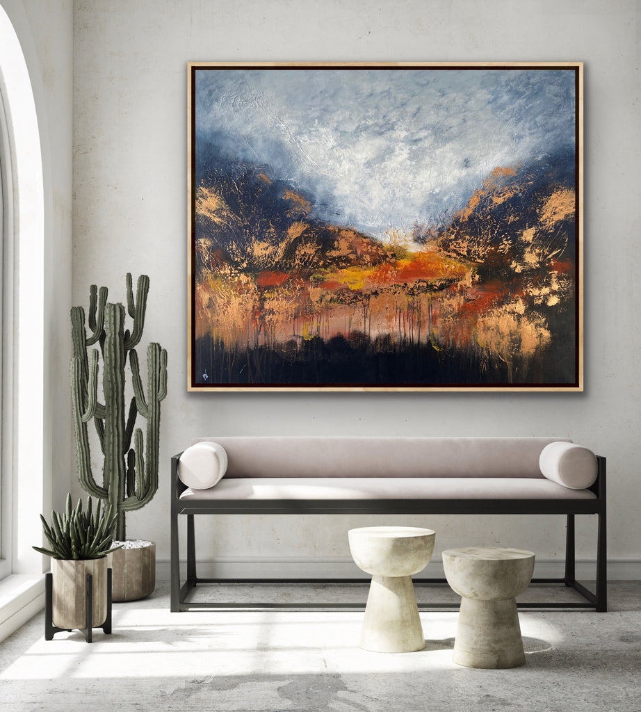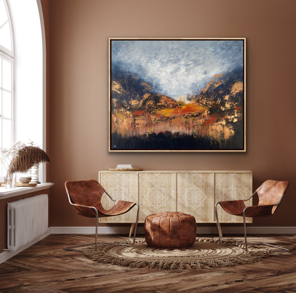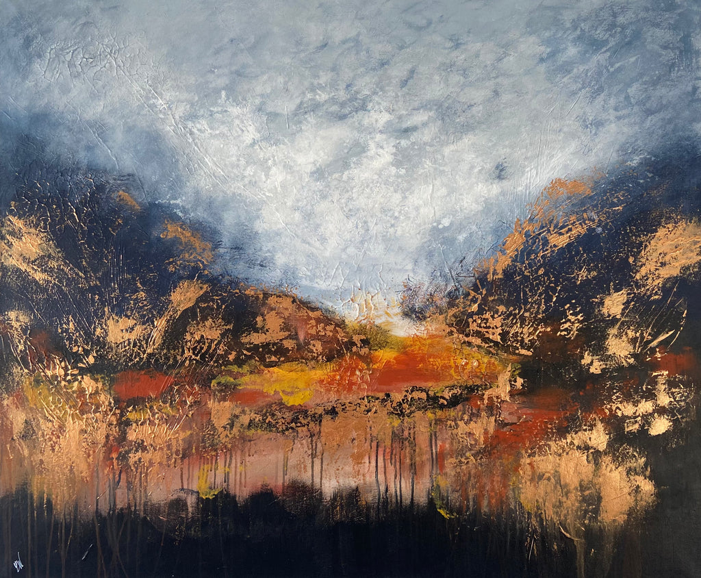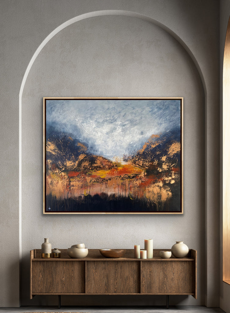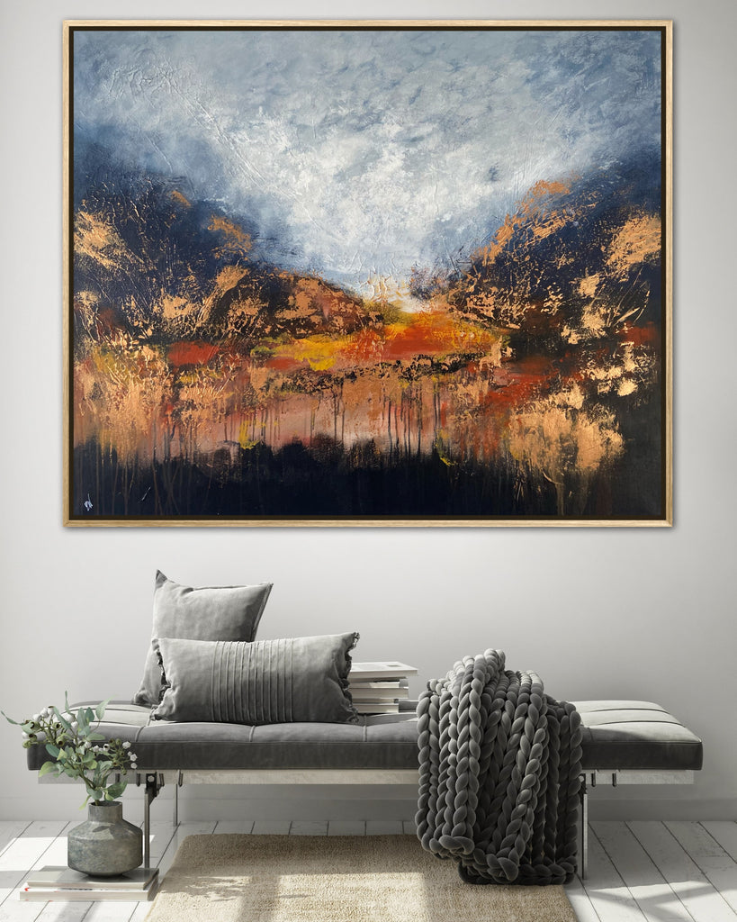 Those Who Wander is a beautifully textured abstract landscape that has shimmering bronze metallics. 120 x 100 cm. Acrylic on canvas, ready to hang. Frame not included. No returns on original artworks so please choose carefully.