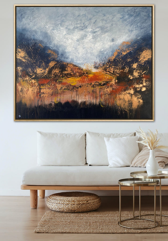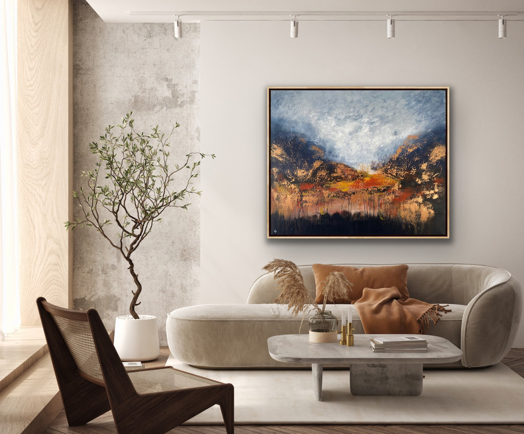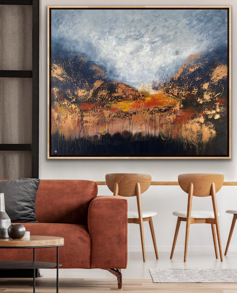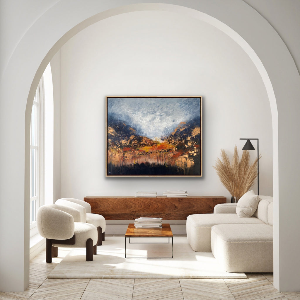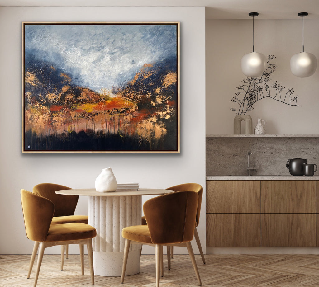 Those Who Wander is a beautifully textured abstract landscape that has shimmering bronze metallics. 120 x 100 cm. Acrylic on canvas, ready to hang. Frame not included. No returns on original artworks so please choose carefully.