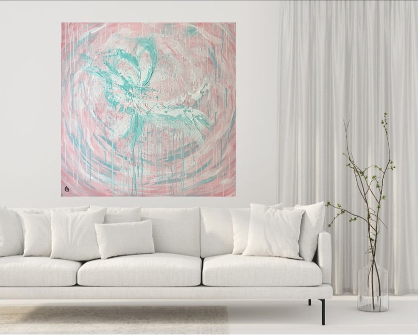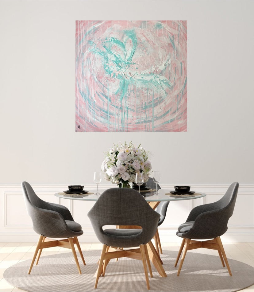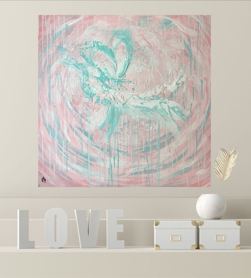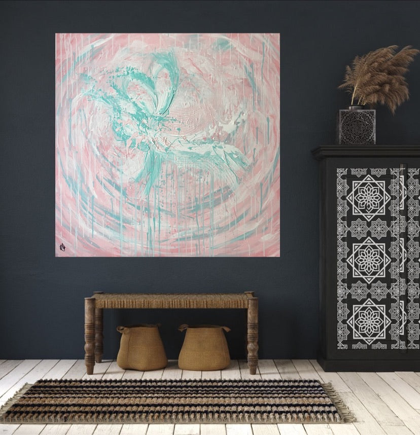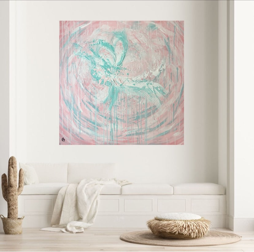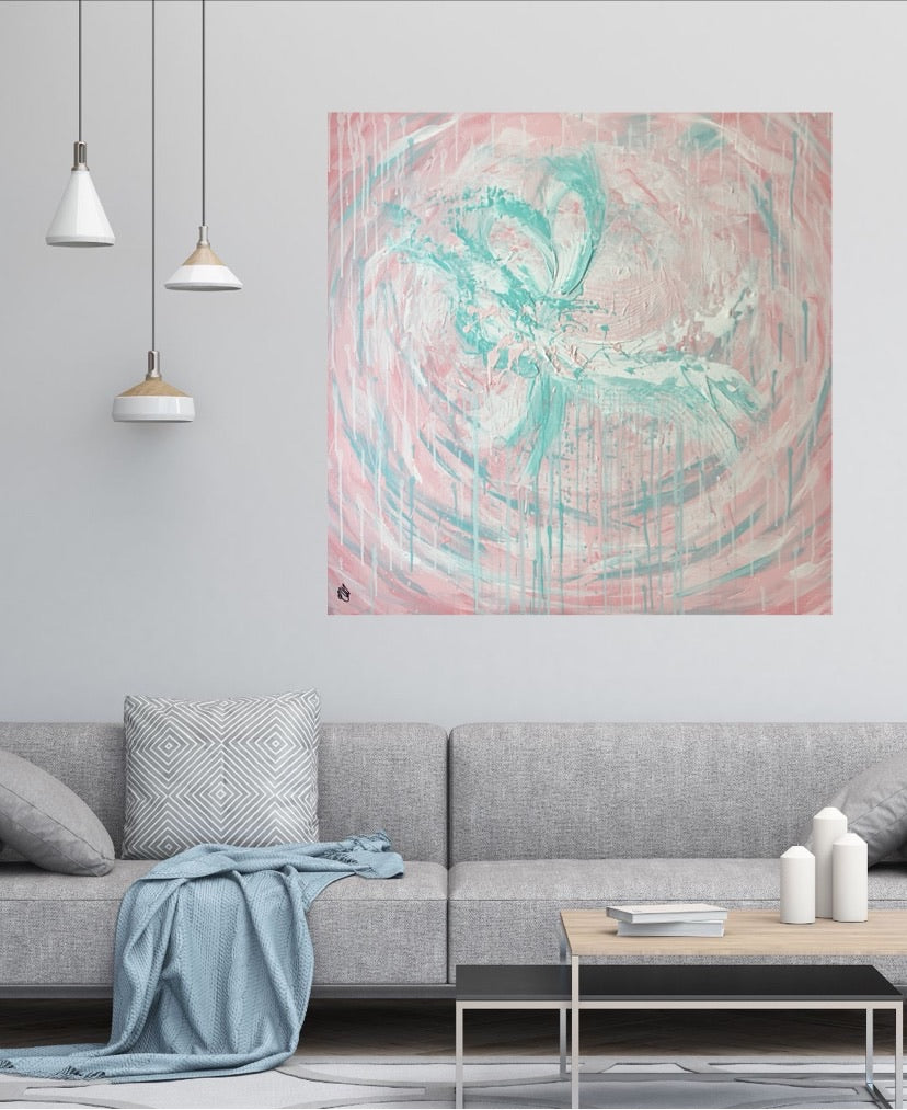 Transparency is a soft pastel coloured abstract piece that will look beautiful in any space in your home. 91.4 x 91.4 x 2 cm. Acrylic on canvas, ready to hang. No returns on original artworks so please choose carefully.