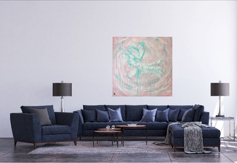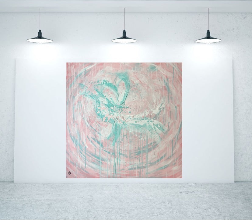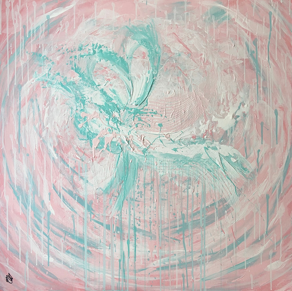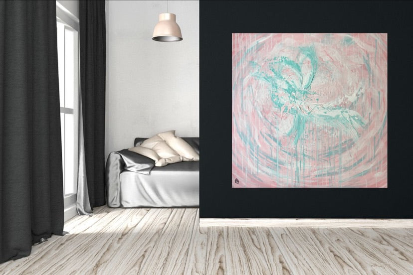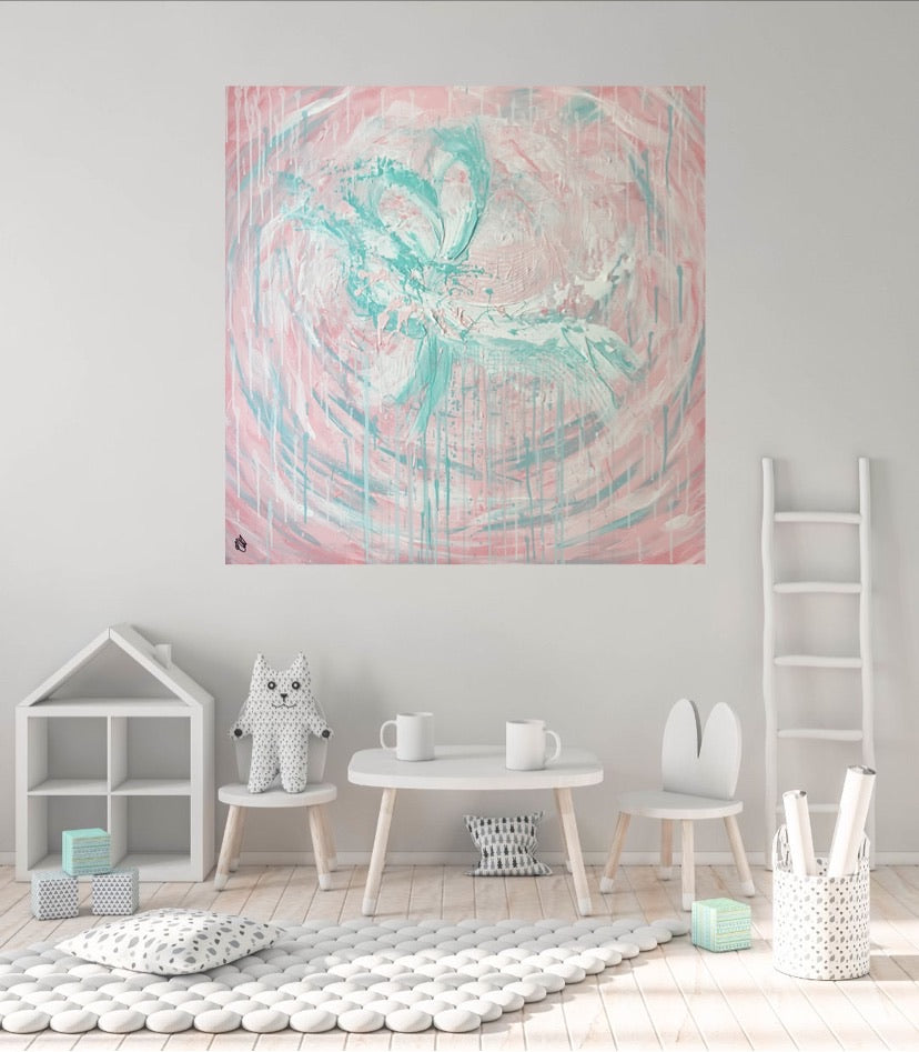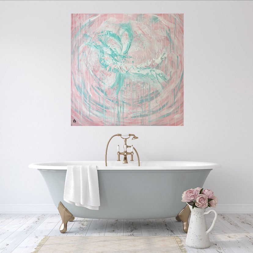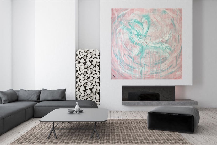 Transparency is a soft pastel coloured abstract piece that will look beautiful in any space in your home. 91.4 x 91.4 x 2 cm. Acrylic on canvas, ready to hang. No returns on original artworks so please choose carefully.