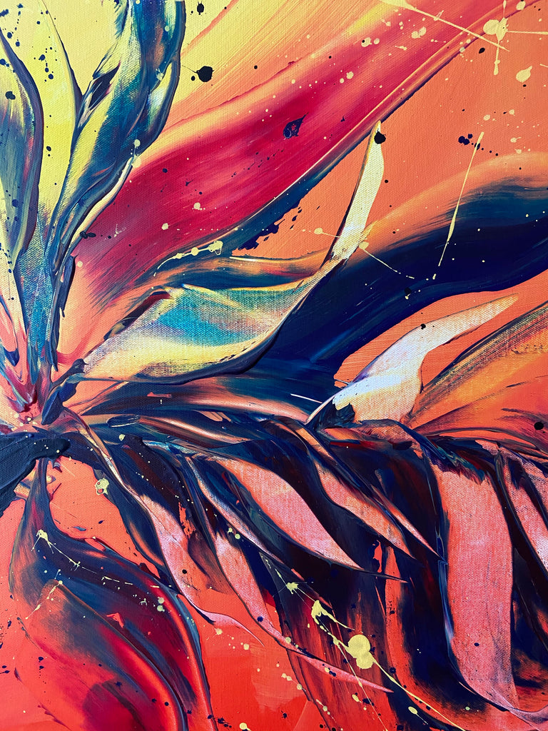 Tropical Oasis is a very vibrant, bold and absolutely beautiful statement piece that will add wow to your walls! An abstract painting with a tropical feel to bring lots of joy and warmth to your home. Acrylic on canvas. Ready to hang.  121.8 x 91.4 x 2cm  No returns on original artworks so please choose carefully.