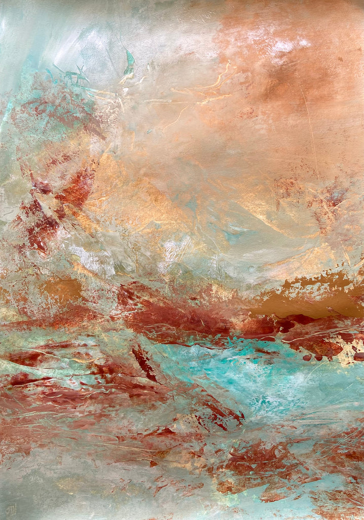 Explore is a beautiful abstract landscape painting. 59.4 x 42 cm (A2 size). Acrylic on paper. Frame not included. Requires framing. No returns on original artworks so please choose carefully.