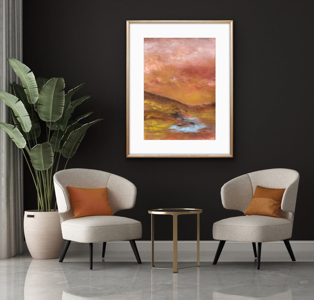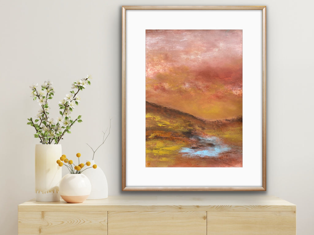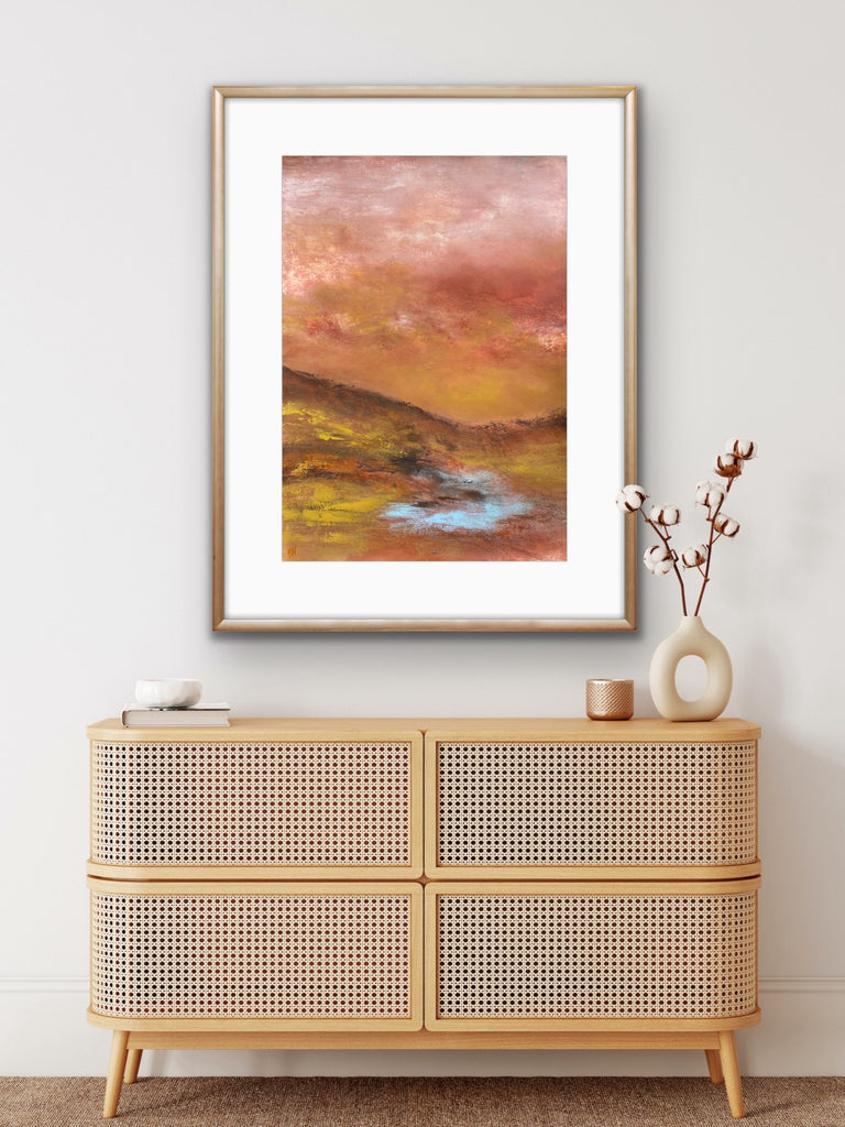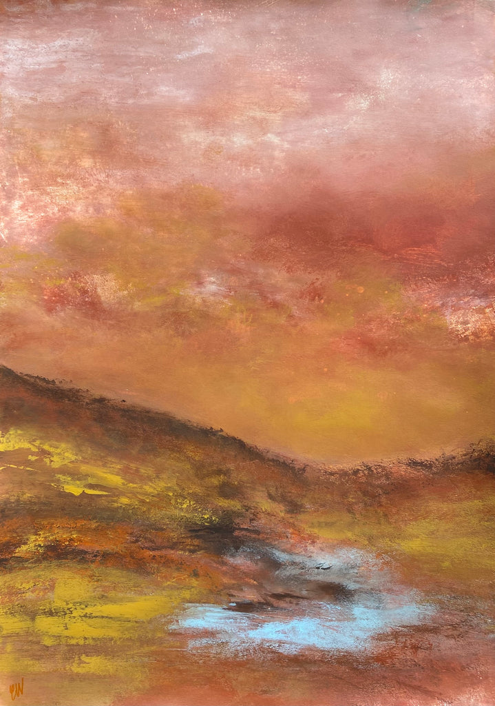 Sun Dance is a beautiful abstract landscape painting. 59.4 x 42 cm (A2 size). Acrylic on paper. Frame not included. Requires framing. No returns on original artworks so please choose carefully.