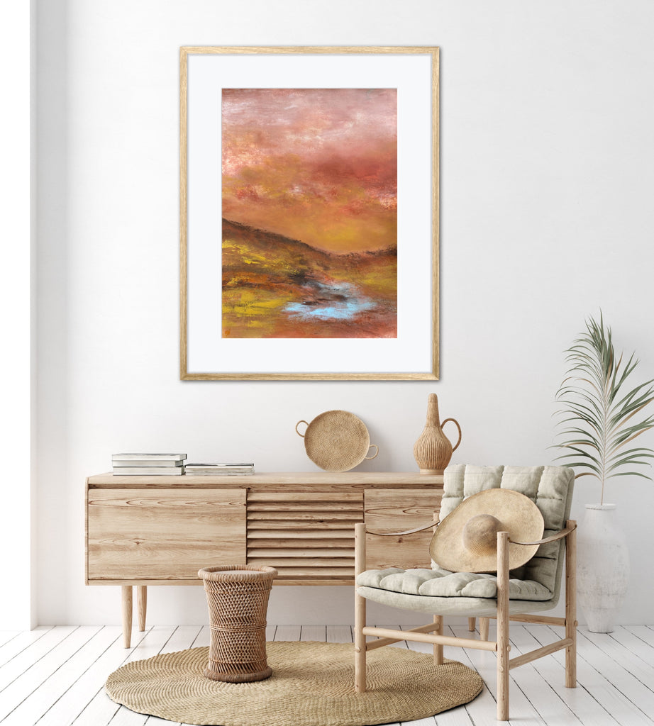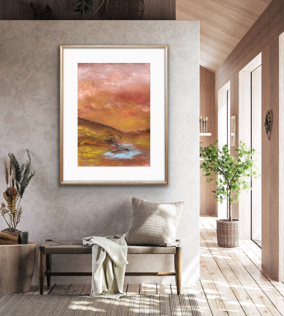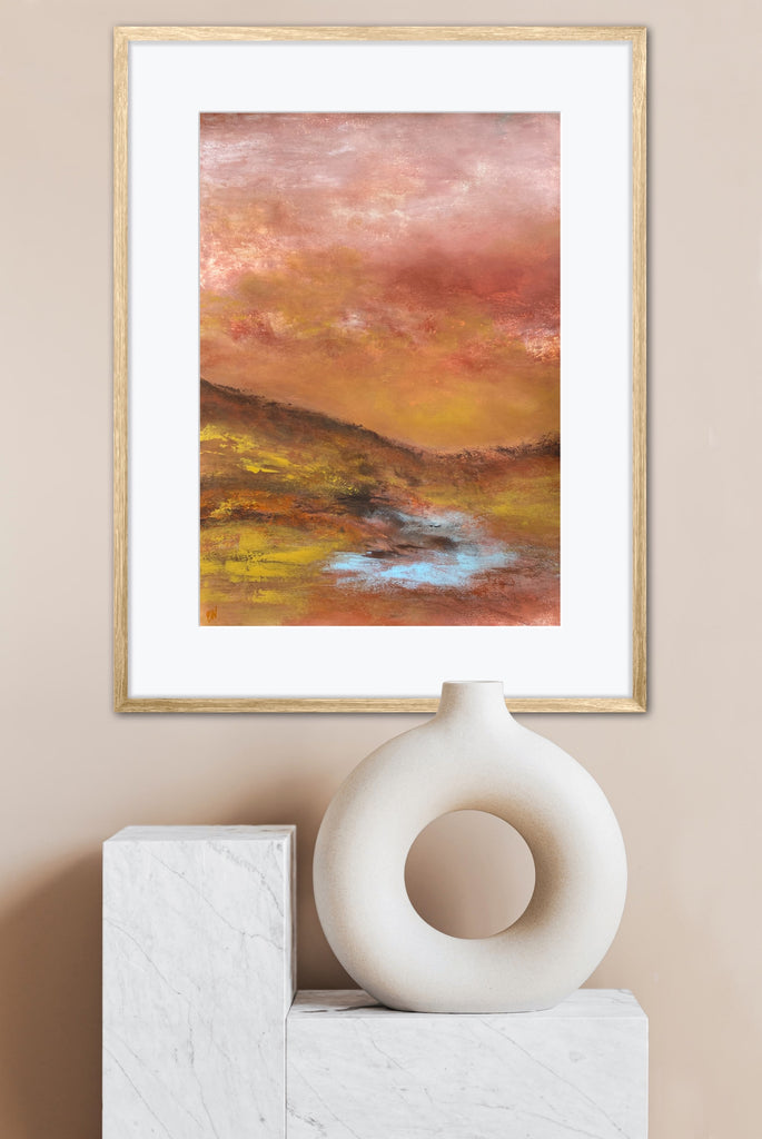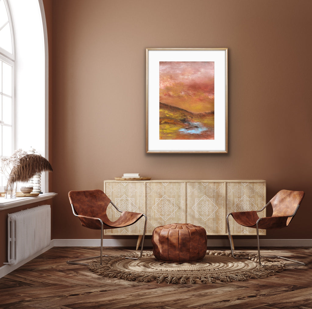 Sun Dance is a beautiful abstract landscape painting. 59.4 x 42 cm (A2 size). Acrylic on paper. Frame not included. Requires framing. No returns on original artworks so please choose carefully.