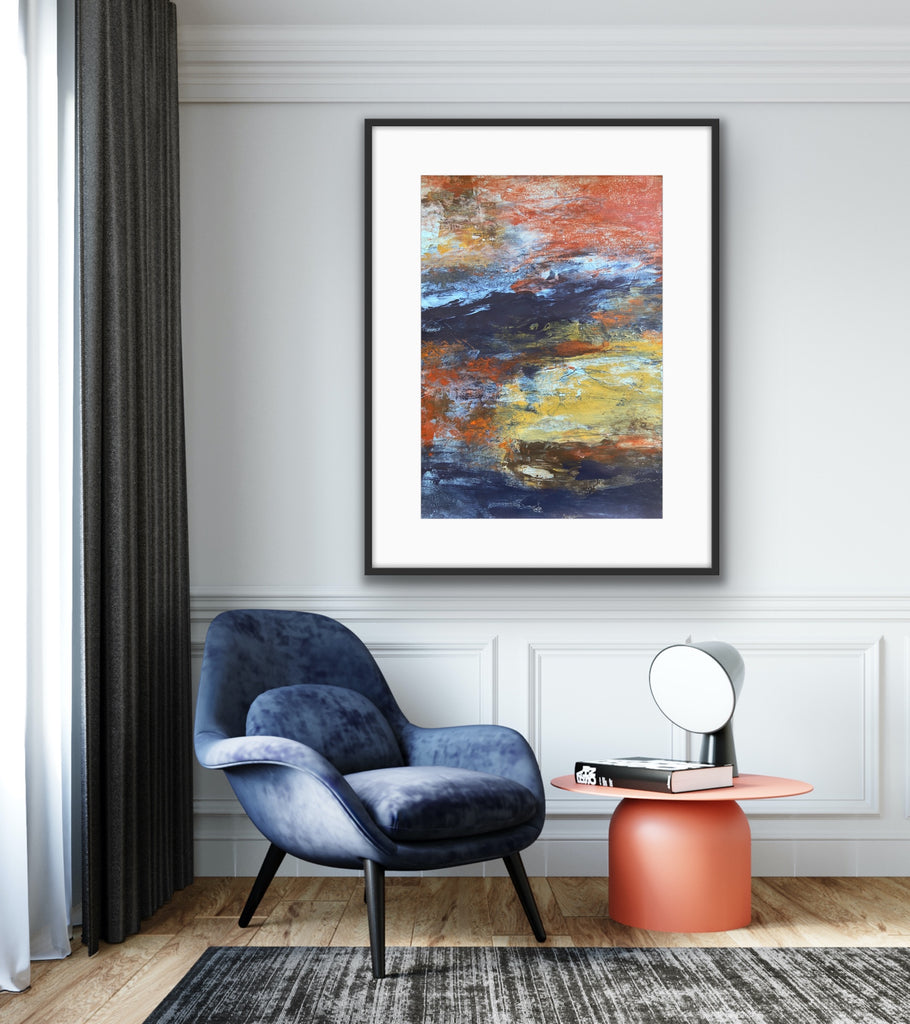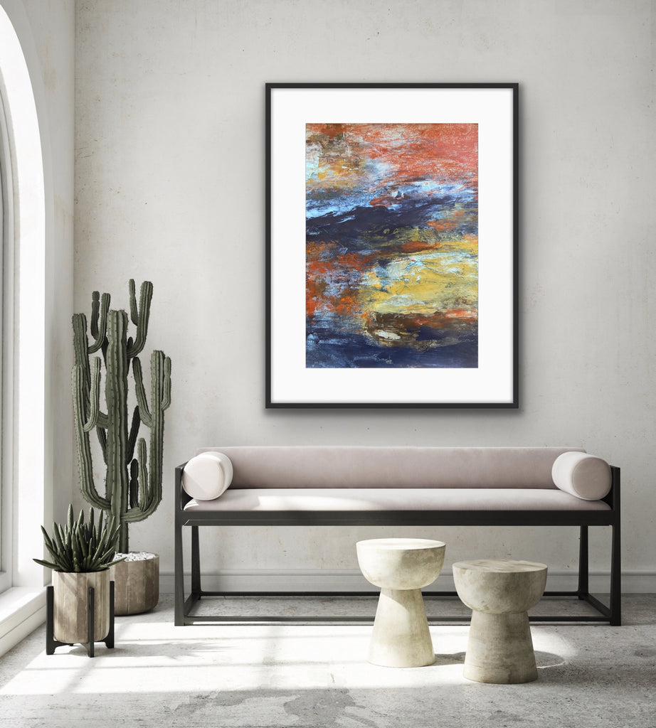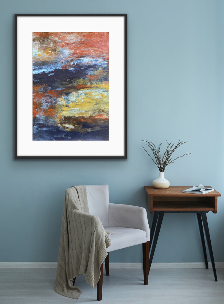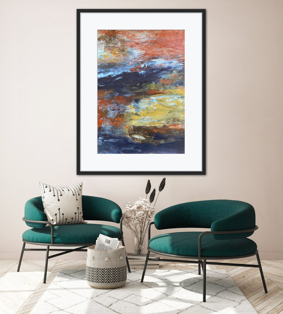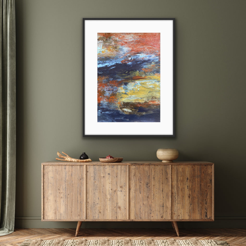 Days End is a beautiful abstract landscape painting. 59.4 x 42 cm (A2 size). Acrylic on paper. Frame not included. Requires framing. No returns on original artworks so please choose carefully.