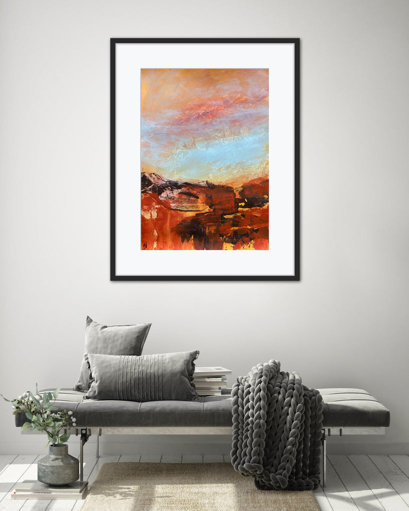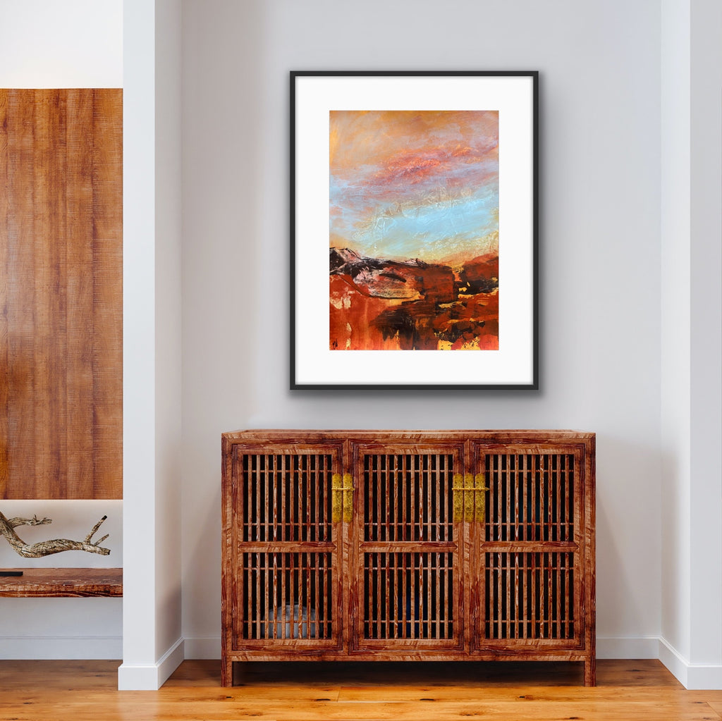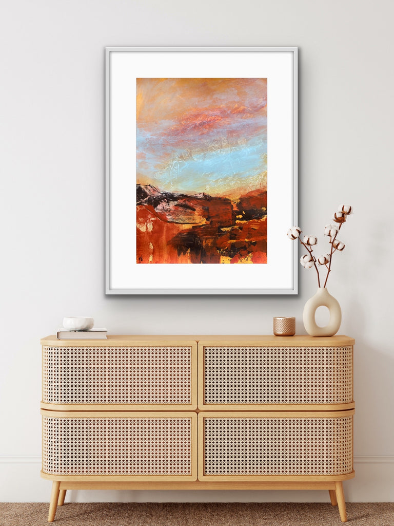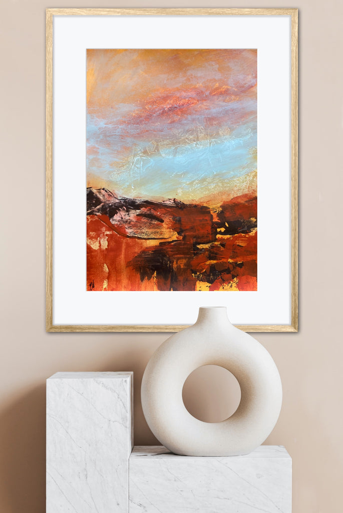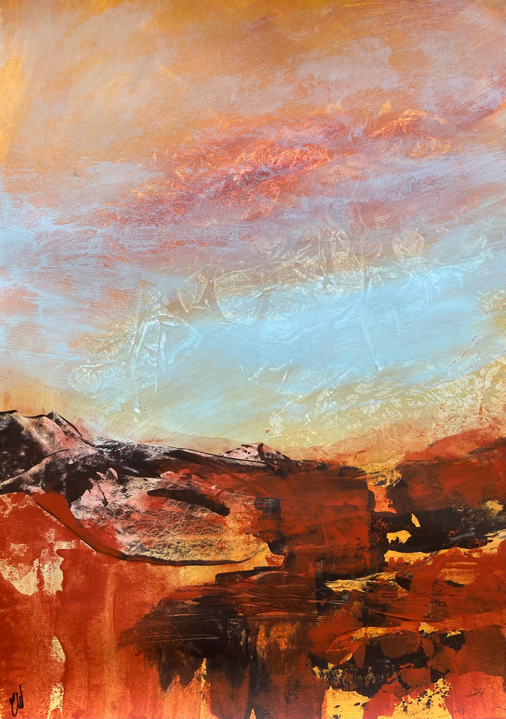 Uncharted Territory is a beautiful abstract landscape painting. 59.4 x 42 cm (A2 size). Acrylic on paper. Frame not included. Requires framing. No returns on original artworks so please choose carefully.