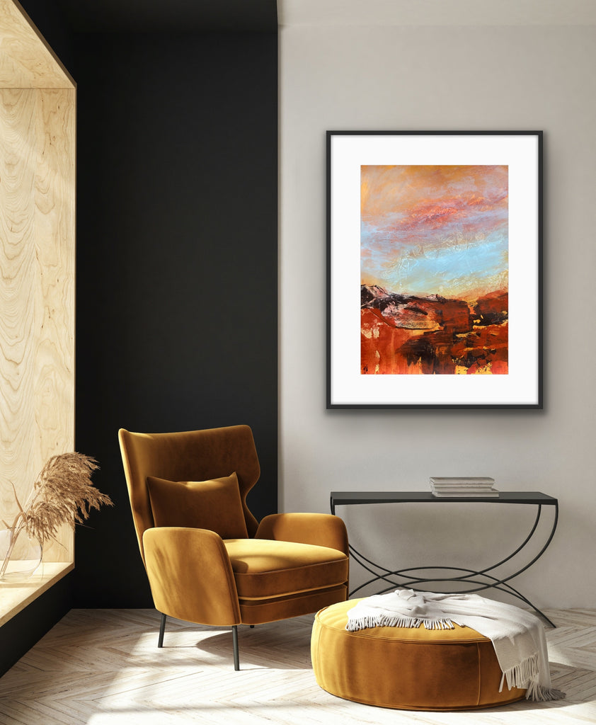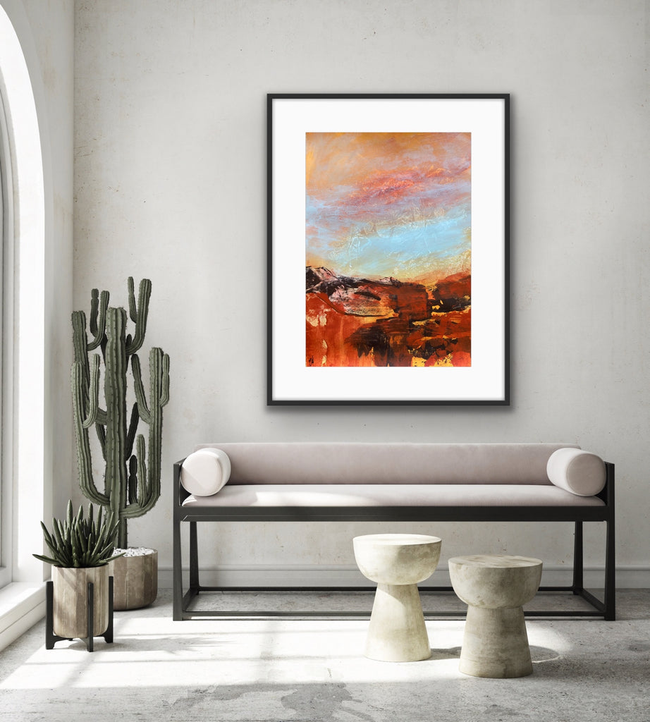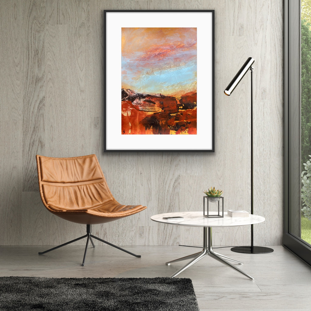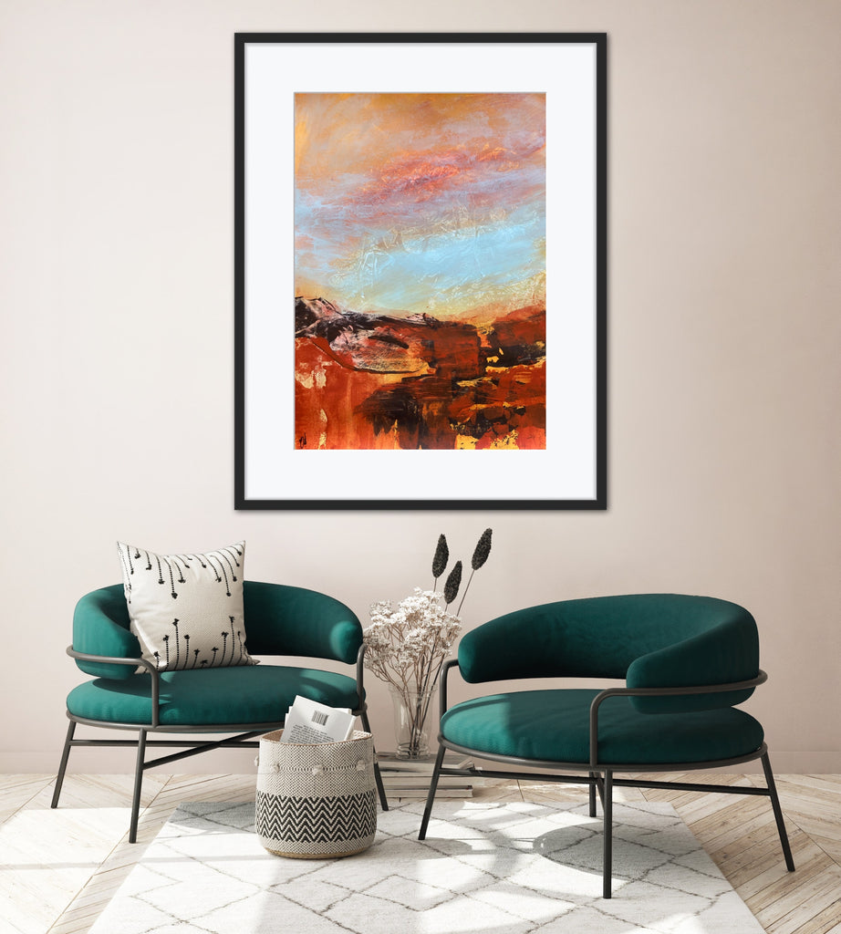 Uncharted Territory is a beautiful abstract landscape painting. 59.4 x 42 cm (A2 size). Acrylic on paper. Frame not included. Requires framing. No returns on original artworks so please choose carefully.