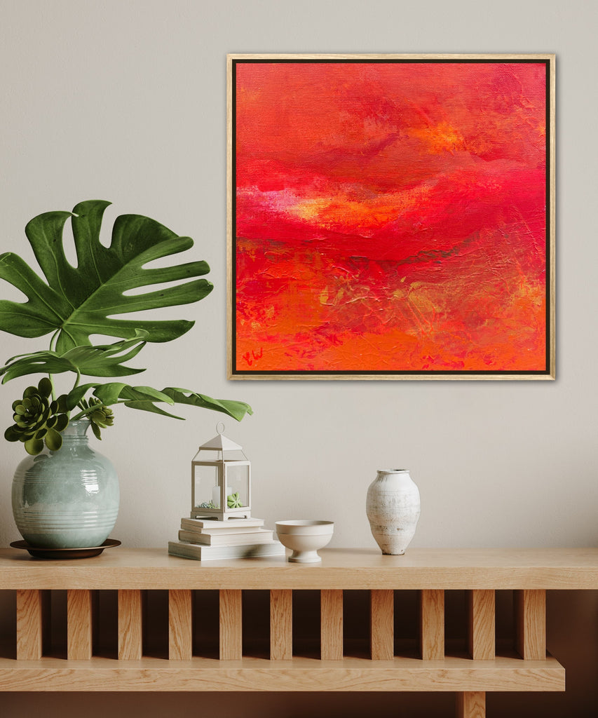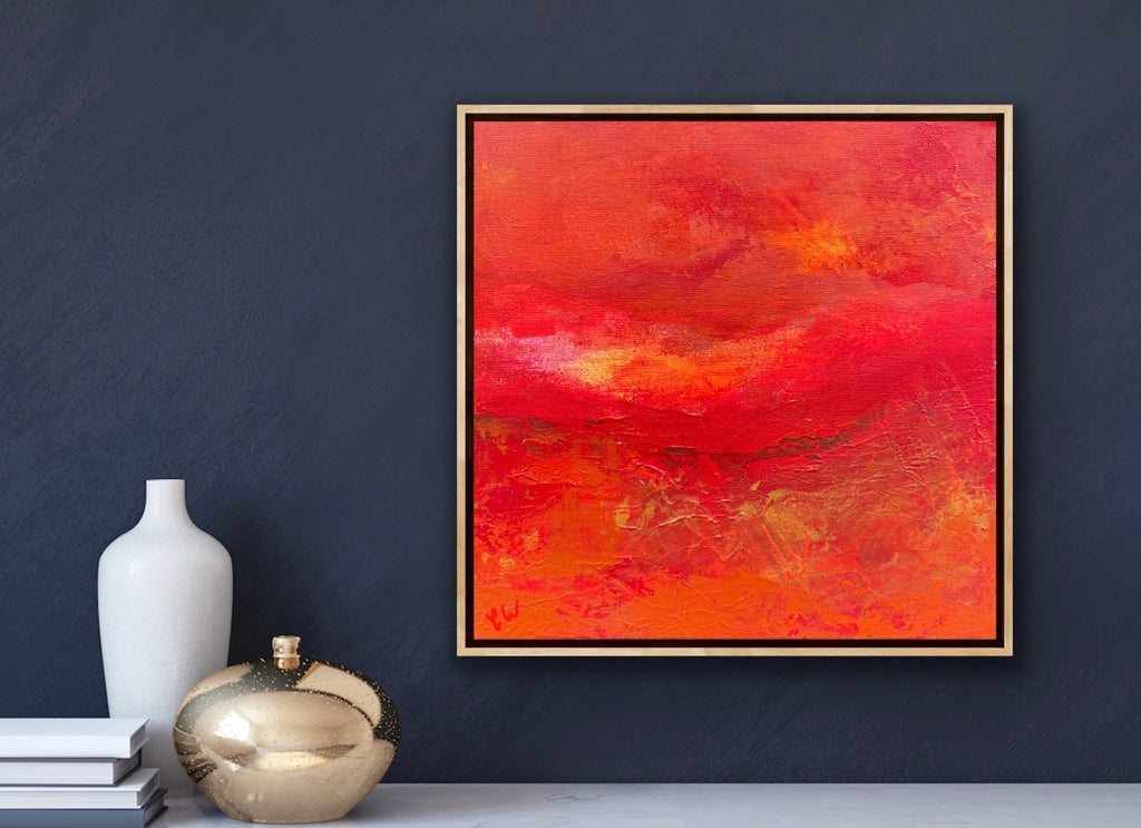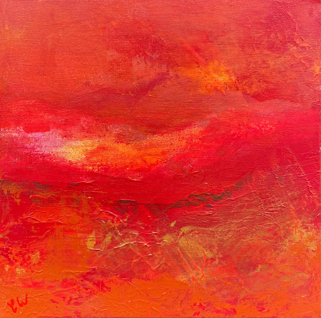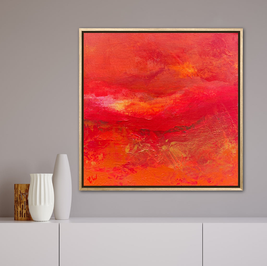 Desert Sun is a beautiful abstract landscape painting. 25 x 25 cm. Acrylic on canvas, ready to hang. Frame is not included. No returns on original artworks so please choose carefully.