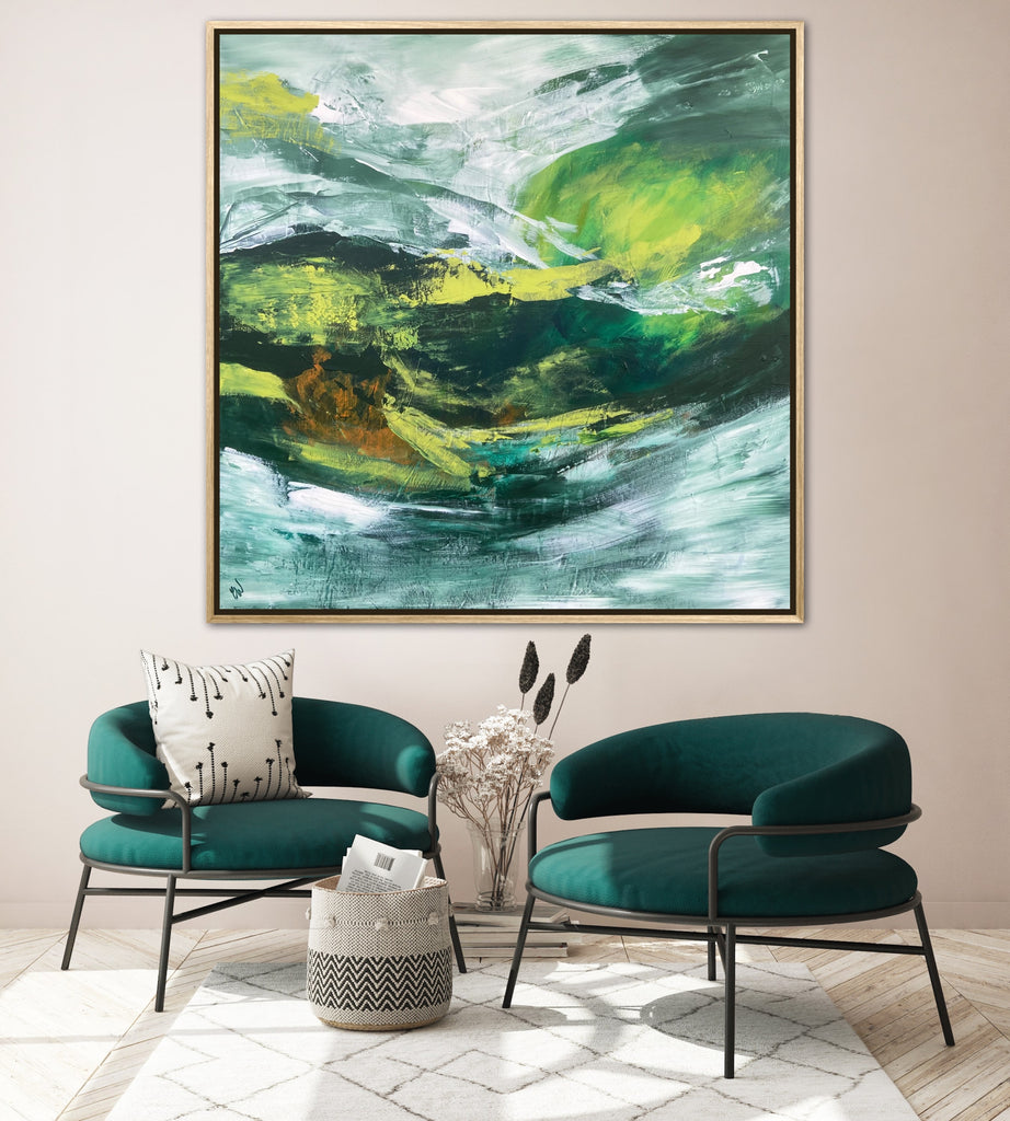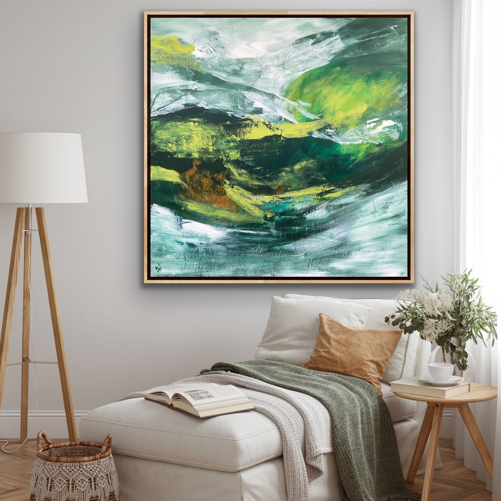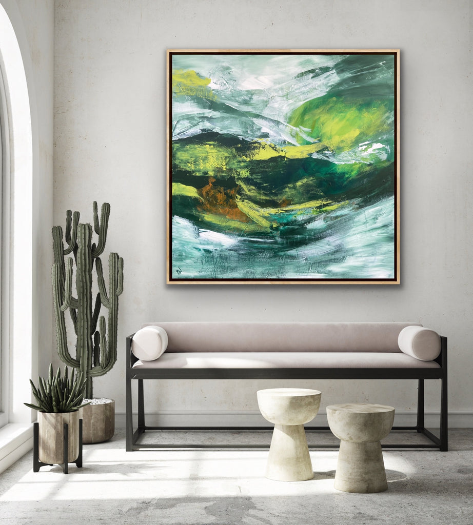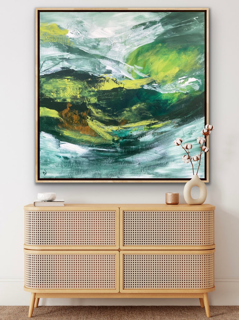 Evolving is a beautifully textured abstract landscape artwork. Acrylic on canvas, ready to hang. Frame not included. 90 x 90 x 2cm. No returns on original artworks so please choose carefully.