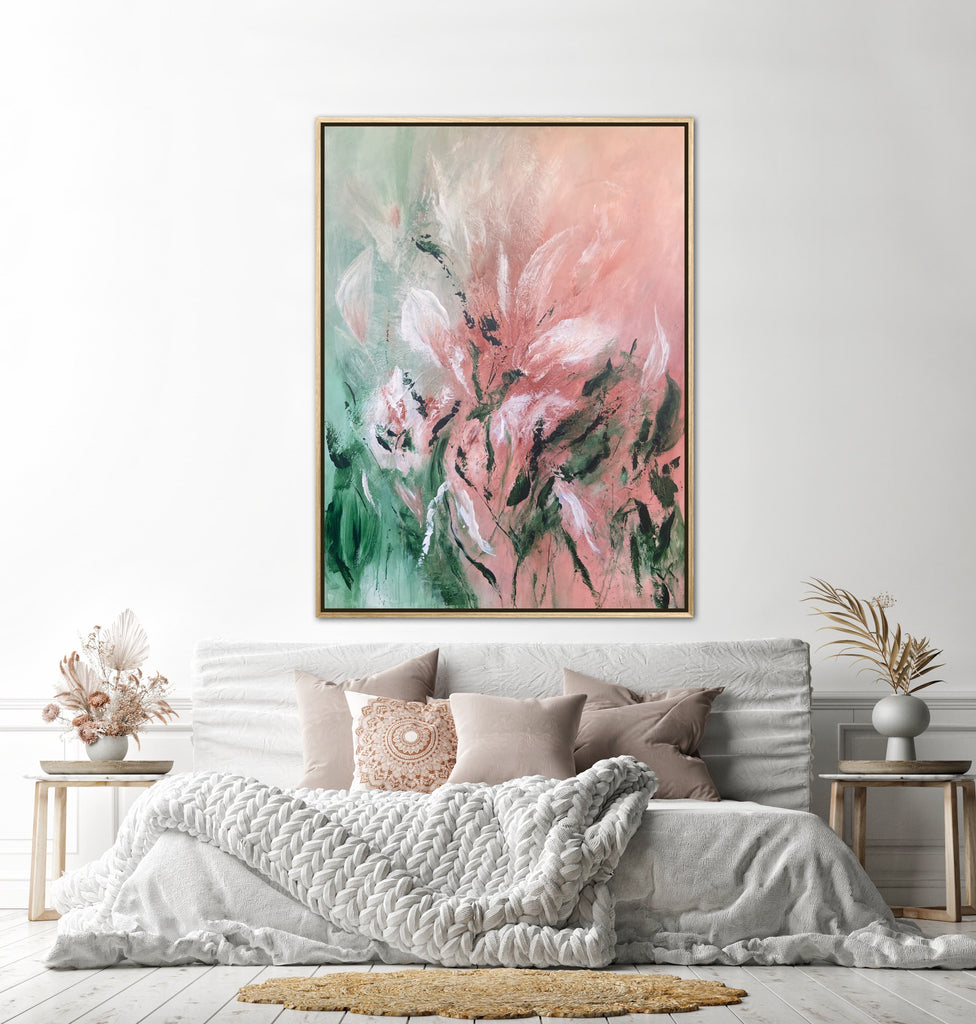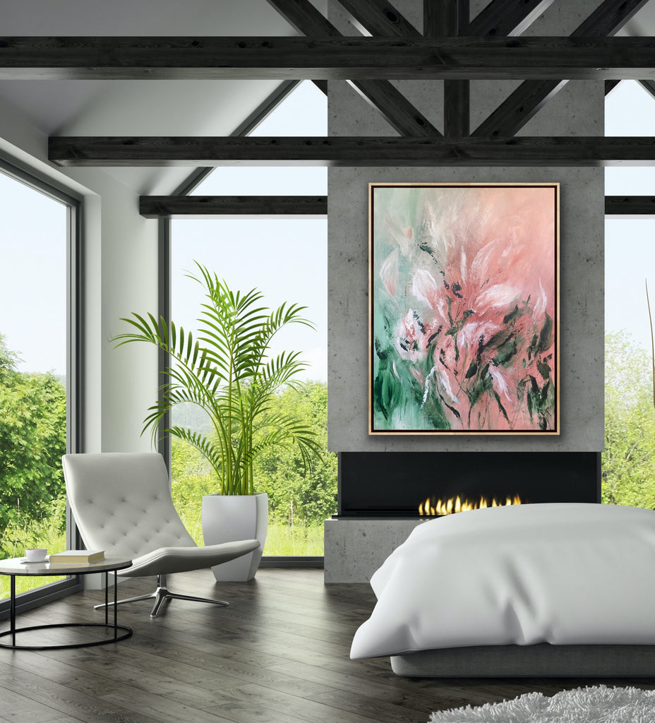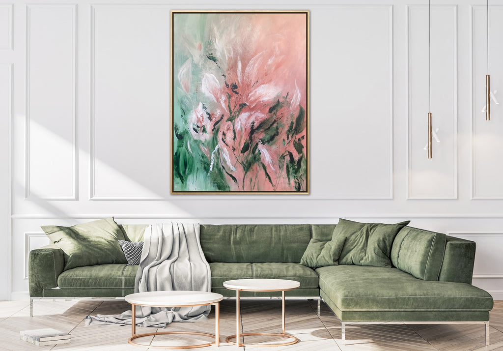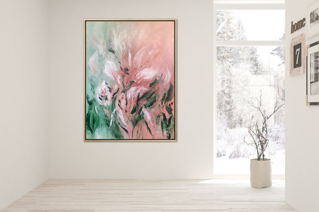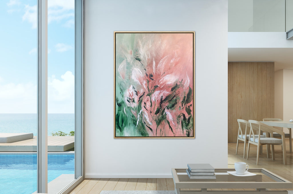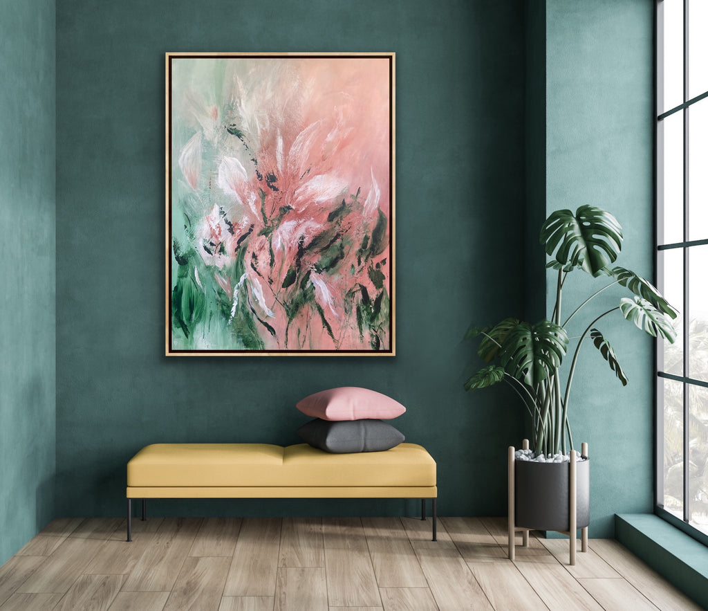Velvet Petals is a beautifully textured abstract botanical painting. 91.4 x 121.9 cm. Acrylic on canvas, ready to hang. Frame not included. No returns on original artworks so please choose carefully.