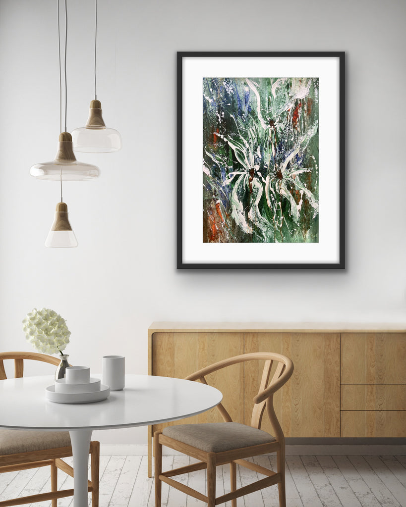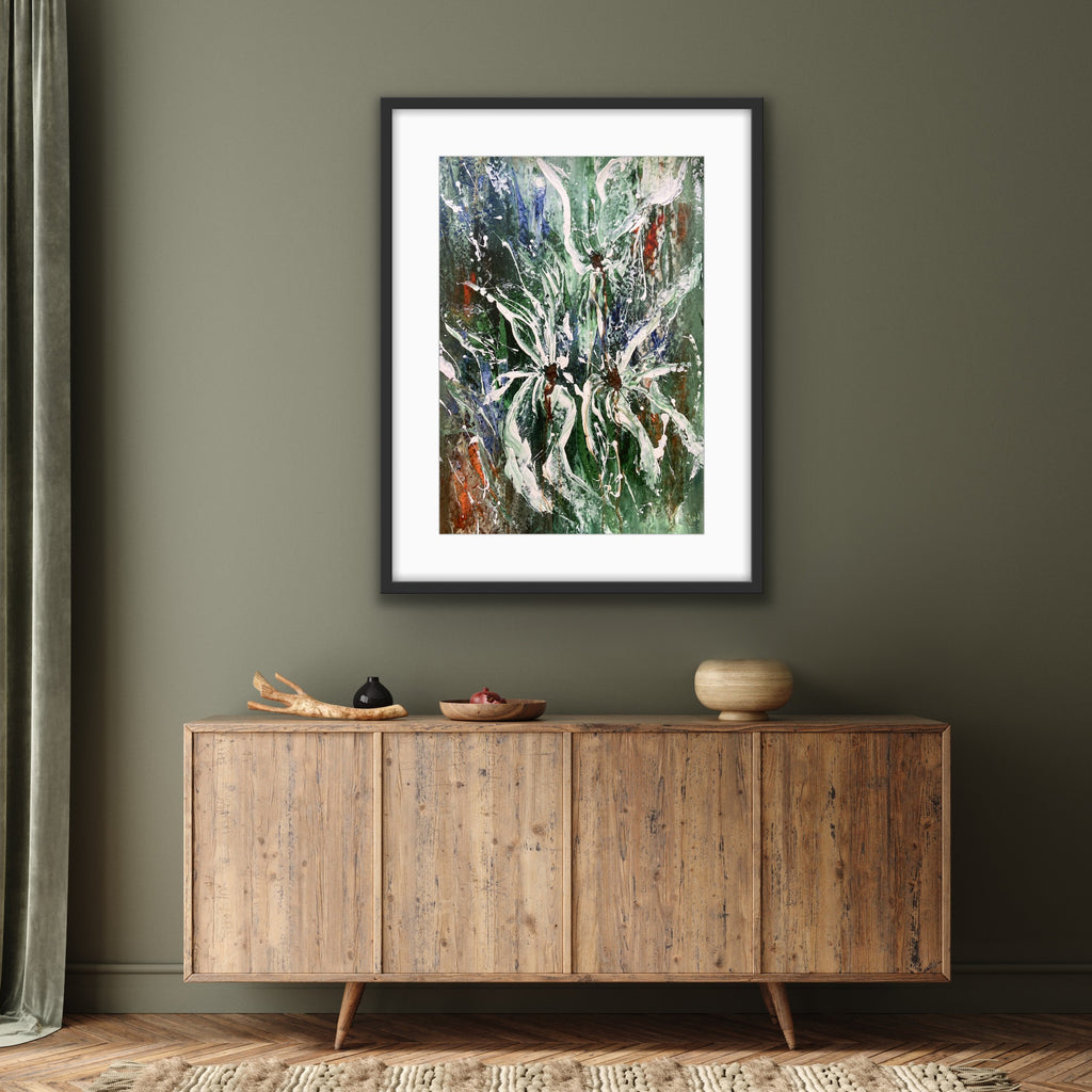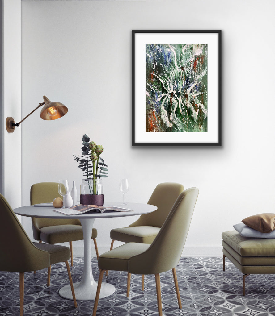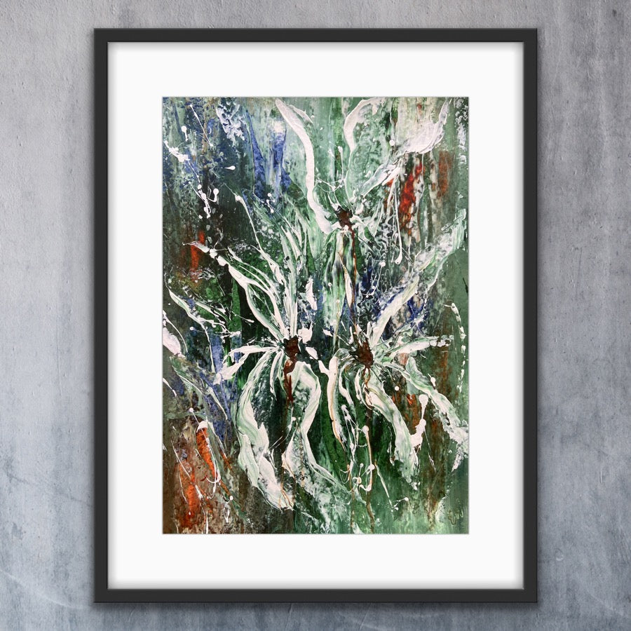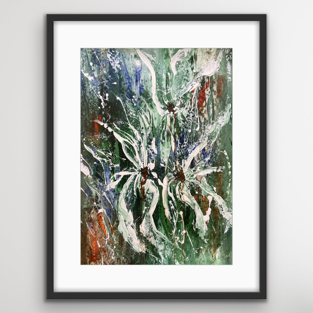 Viridescent is a striking botanical abstract piece with lots of beautiful details. Some images show what this piece looks like framed. Frames not included. 59.4 x 42 cm (A2 size) Acrylic on paper. Requires framing. No returns on original artworks so please choose carefully.