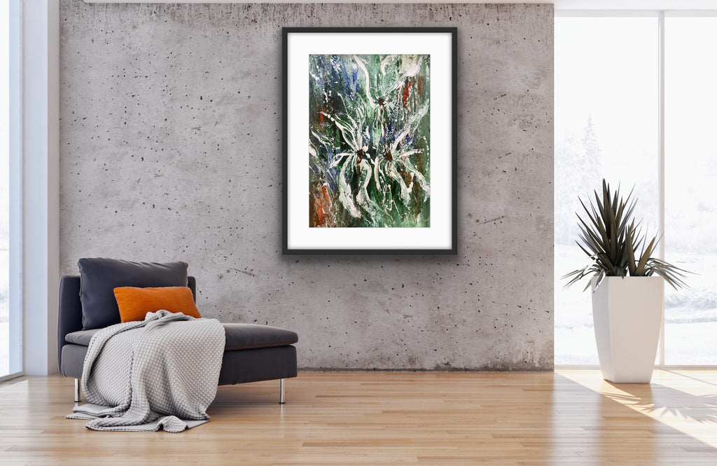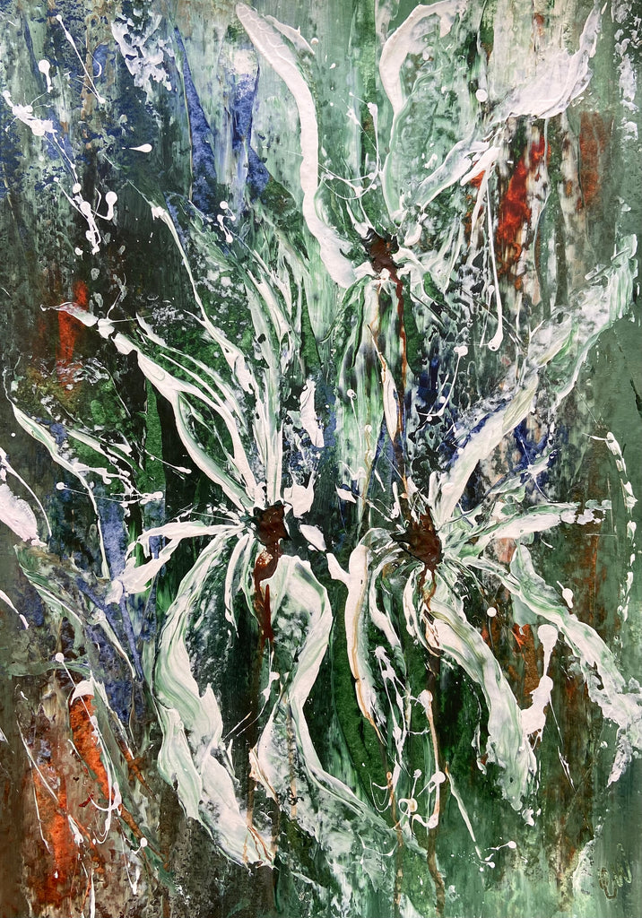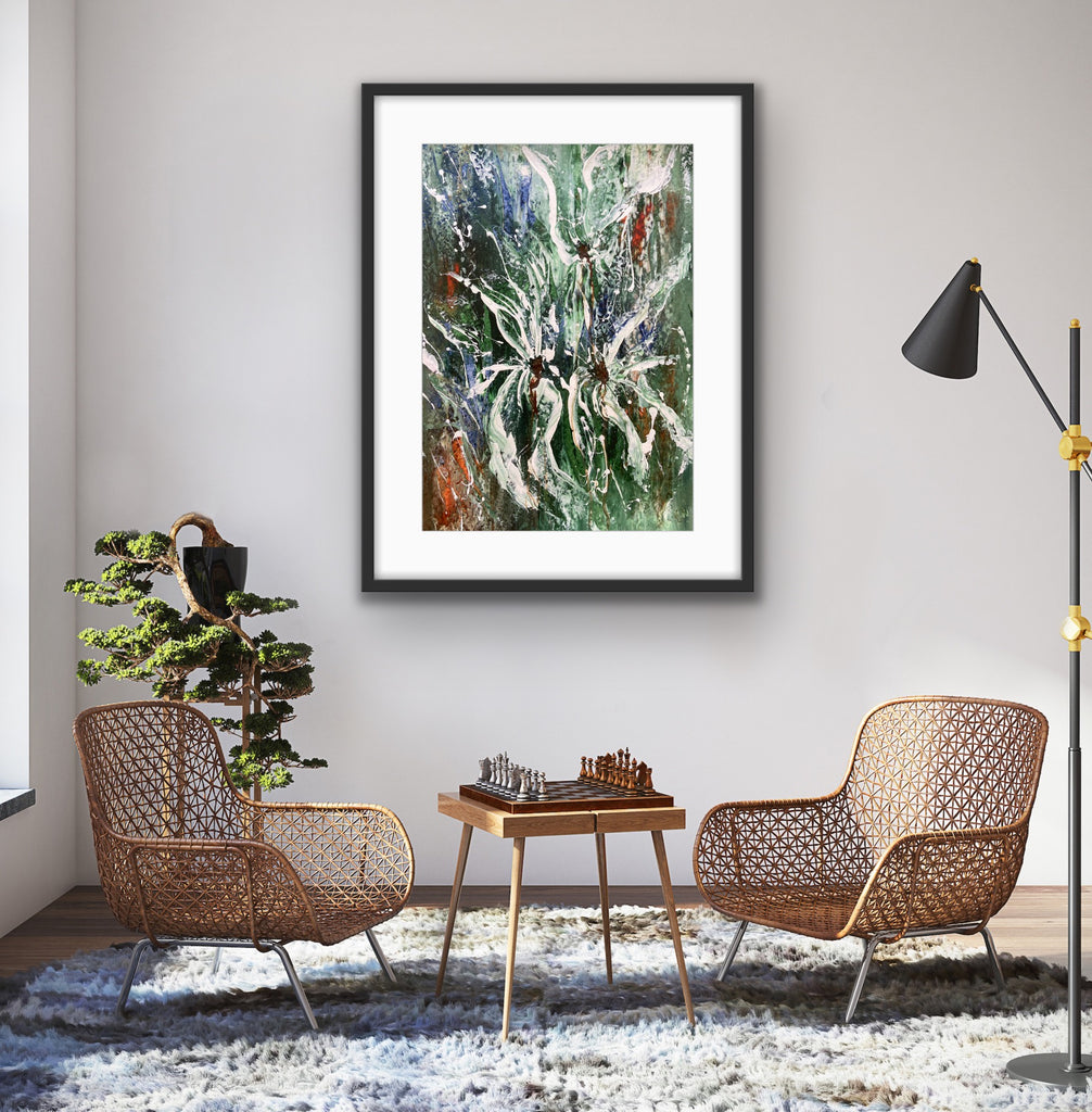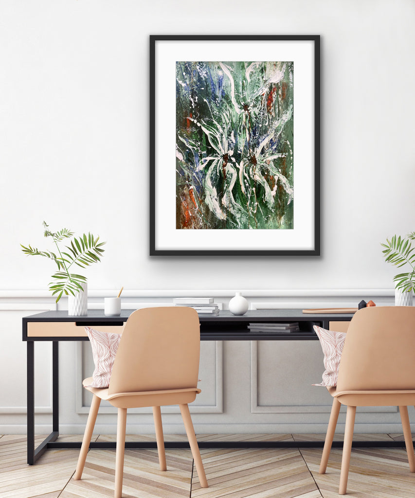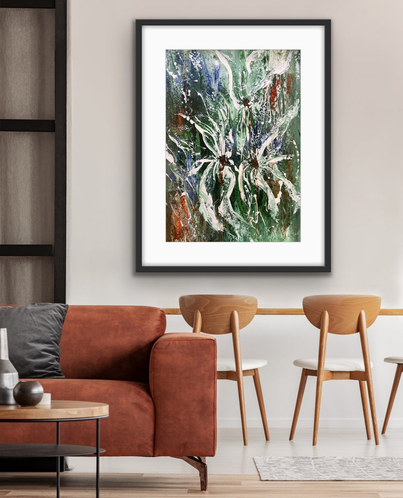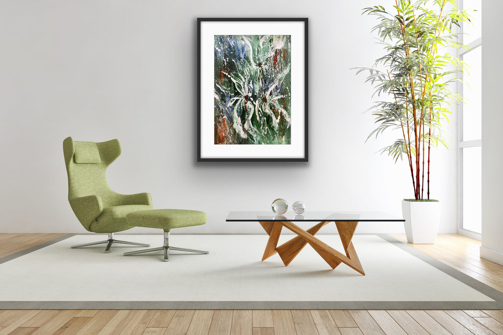 Viridescent is a striking botanical abstract piece with lots of beautiful details. Some images show what this piece looks like framed. Frames not included. 59.4 x 42 cm (A2 size) Acrylic on paper. Requires framing. No returns on original artworks so please choose carefully.