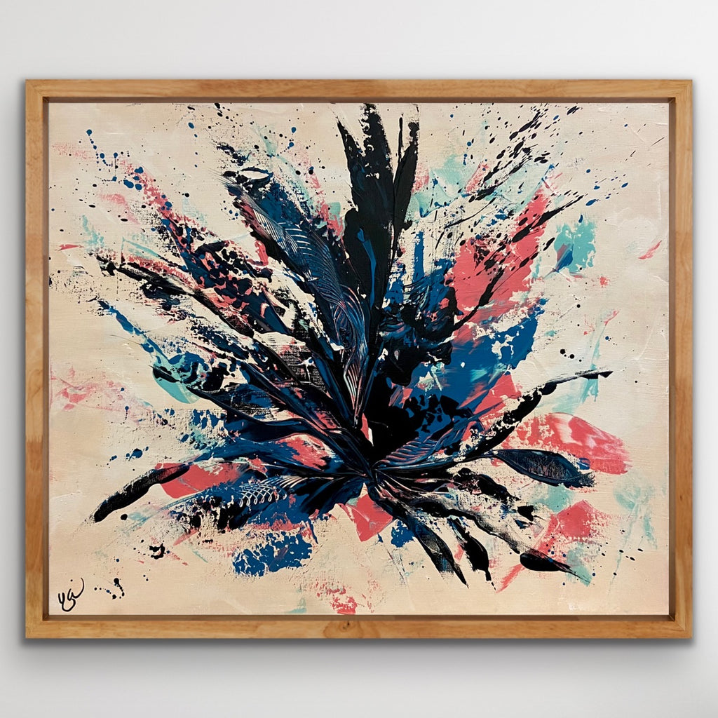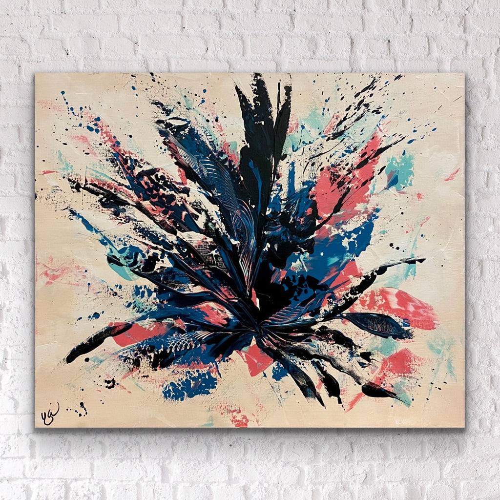 Vivacious is a bright, energetic and fun abstract piece that has a beautiful peach, white and aqua base, with vibrant turquoise, coral, and black that make this piece pop! 60 x 50 cm. Acrylic on canvas, ready to hang. Some images show what this painting will look like framed. Frames not included. Watch how this painting was made on my YouTube! Link to my YouTube is on the home page. No returns on original artworks so please choose carefully.