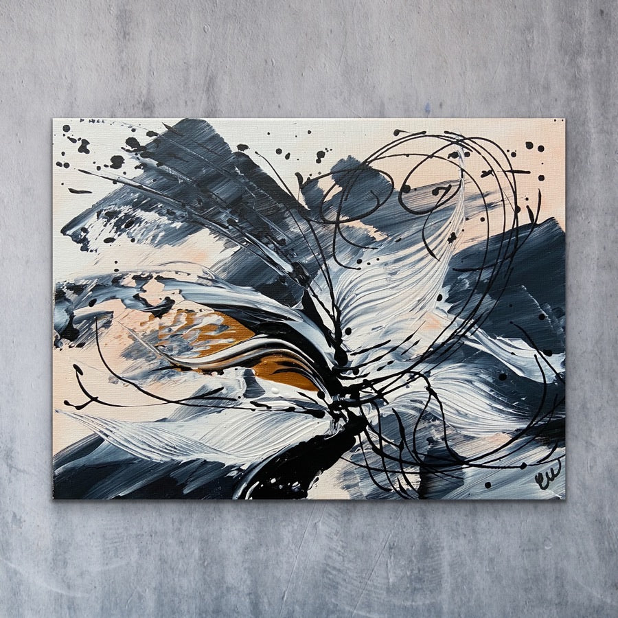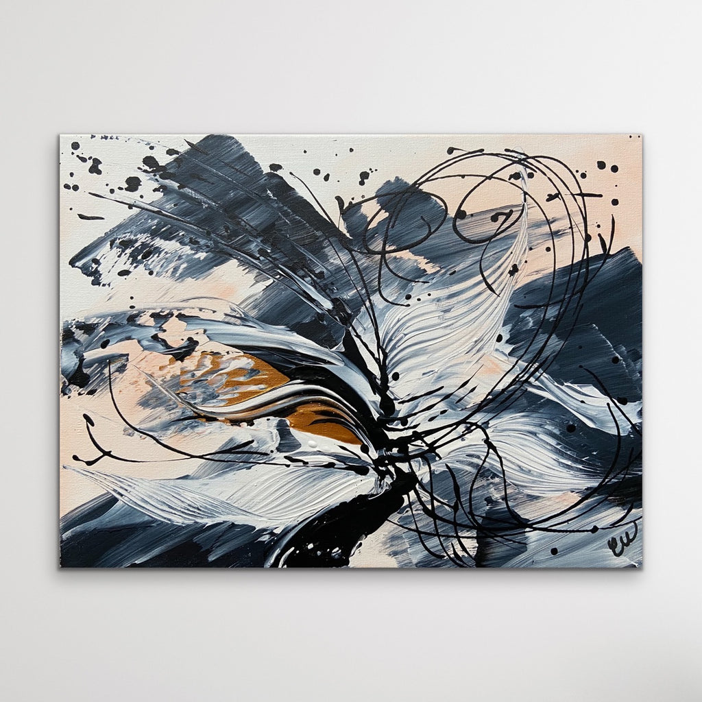 Wanderlust is a beautiful abstract piece with lots of contrast in colour and captured movement. It has a whimsical and luxe feel. The peach hue is gorgeous and the gold gives this piece that extra component of wow. Wanderlust will add life to any walls! 30 x 40cm. Acrylic on canvas, ready to hang. Watch how this painting was made on my YouTube! Link to my YouTube is on the home page. No returns on original artworks so please choose carefully.