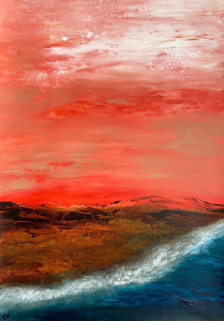 Winter Dreaming is a beautiful abstract landscape/seascape painting. 59.4 x 42 cm (A2 size). Acrylic on paper. Frame not included. Requires framing. No returns on original artworks so please choose carefully.