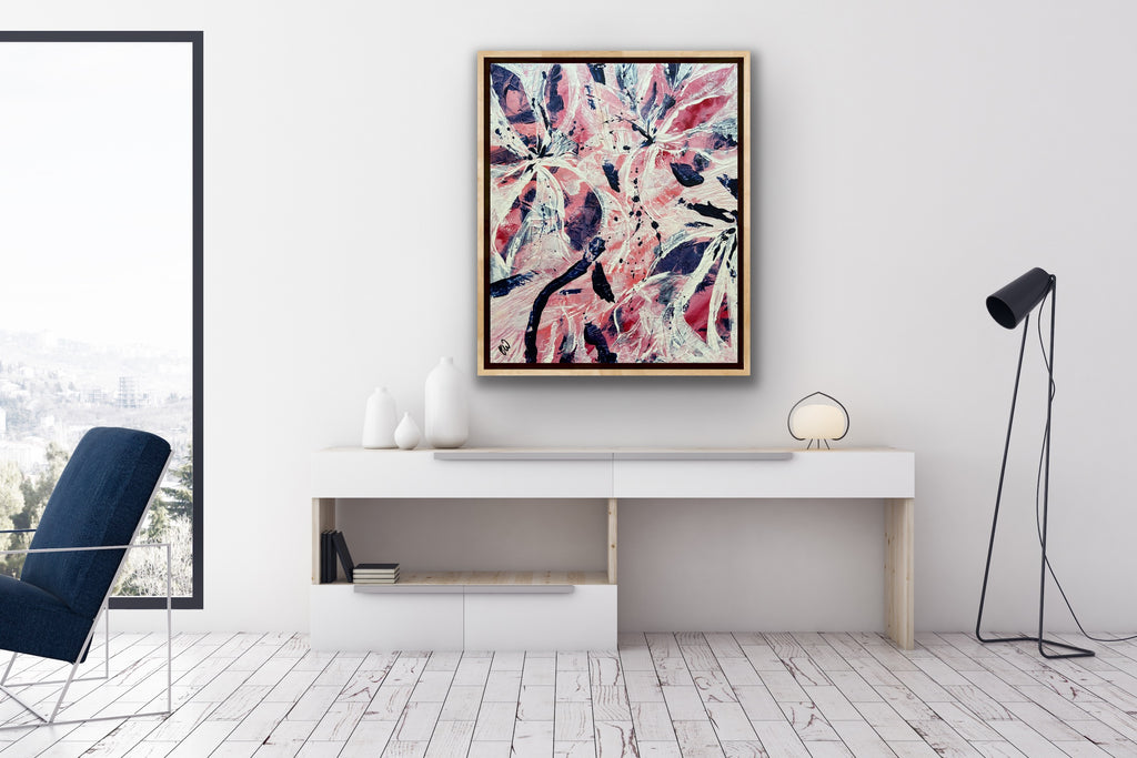 Beyond is a beautiful abstract botanical painting with a tropical feel and lots of texture. This piece will bring life to any space 50 x 60 cm. Acrylic on canvas, ready to hang. Some images show what this piece looks like framed. Frames not included. No returns on original artworks so please choose carefully.
