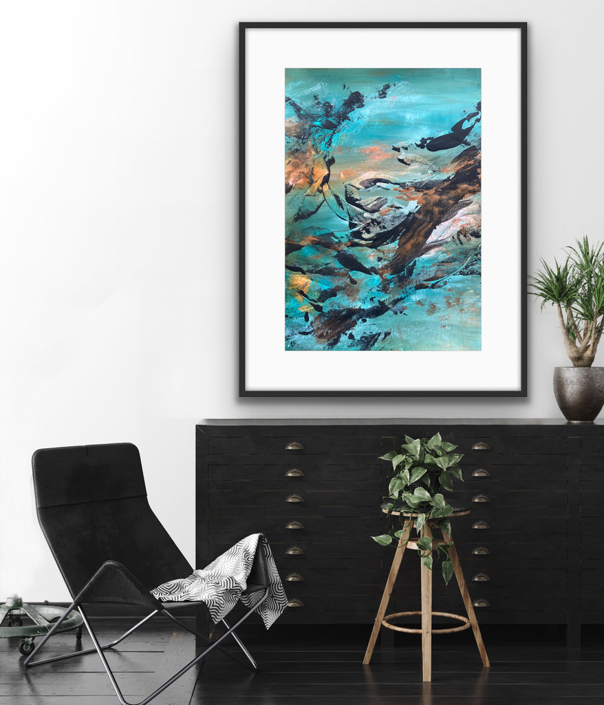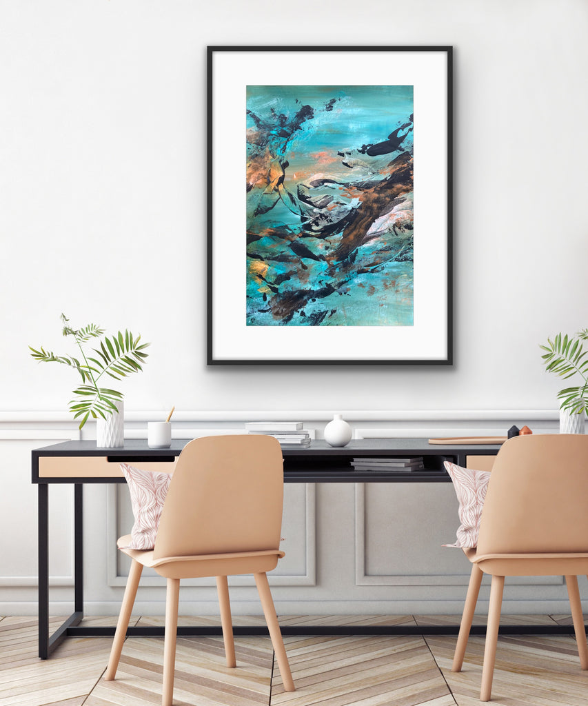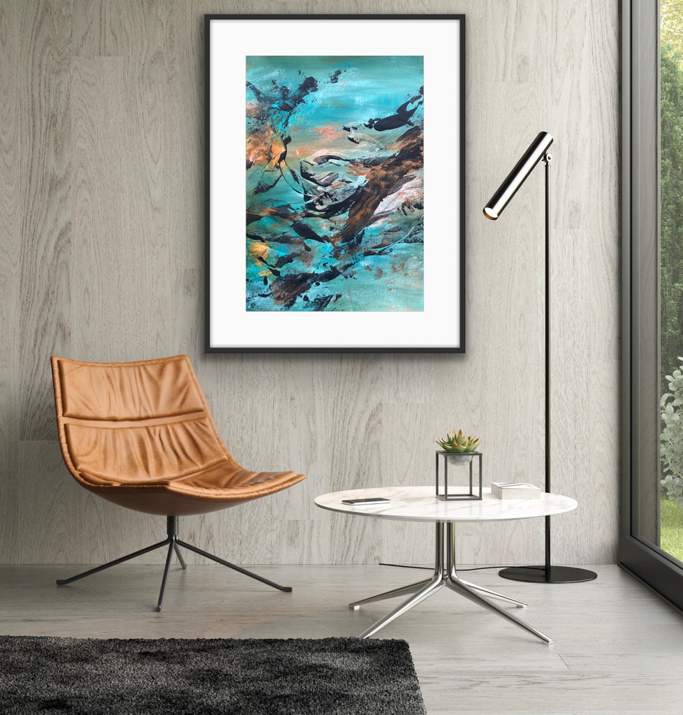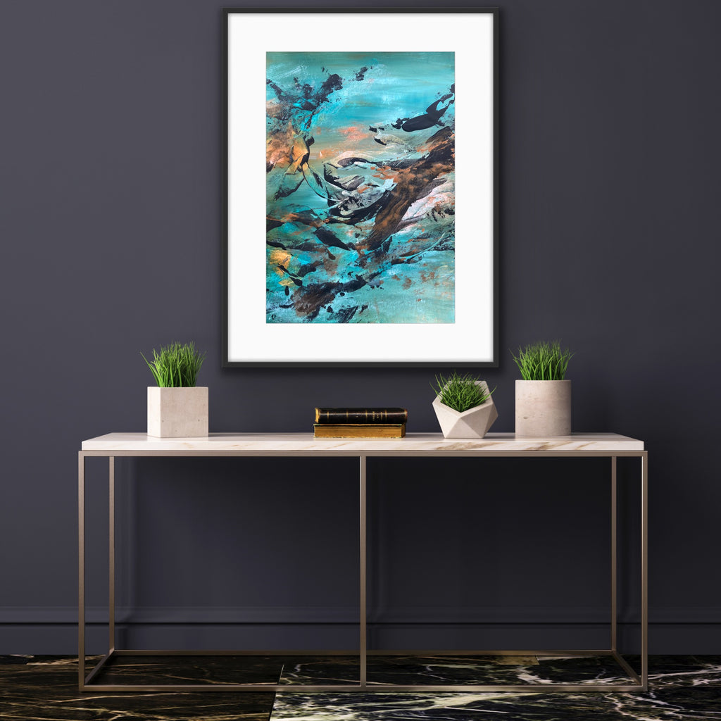 Cathartic is a beautiful abstract painting full of captured movement. It has stunning metallic accents that shimmer in the light. 59.4 x 42 cm (A2 size) Acrylic on paper. Frame not included . Requires framing. No returns on original artworks so please choose carefully.