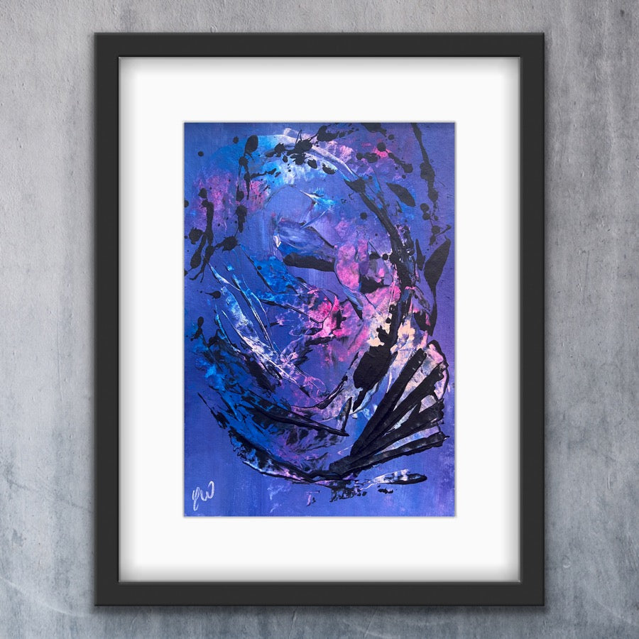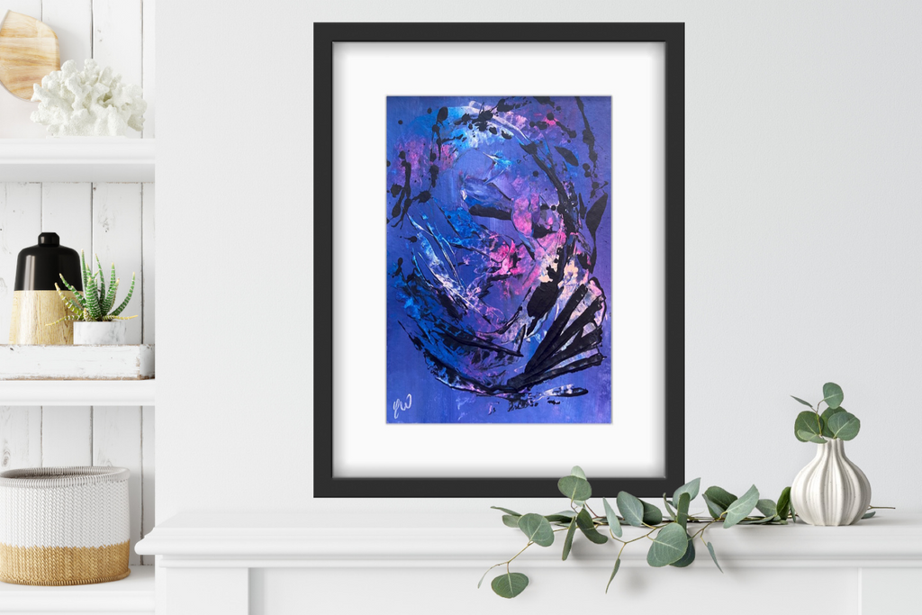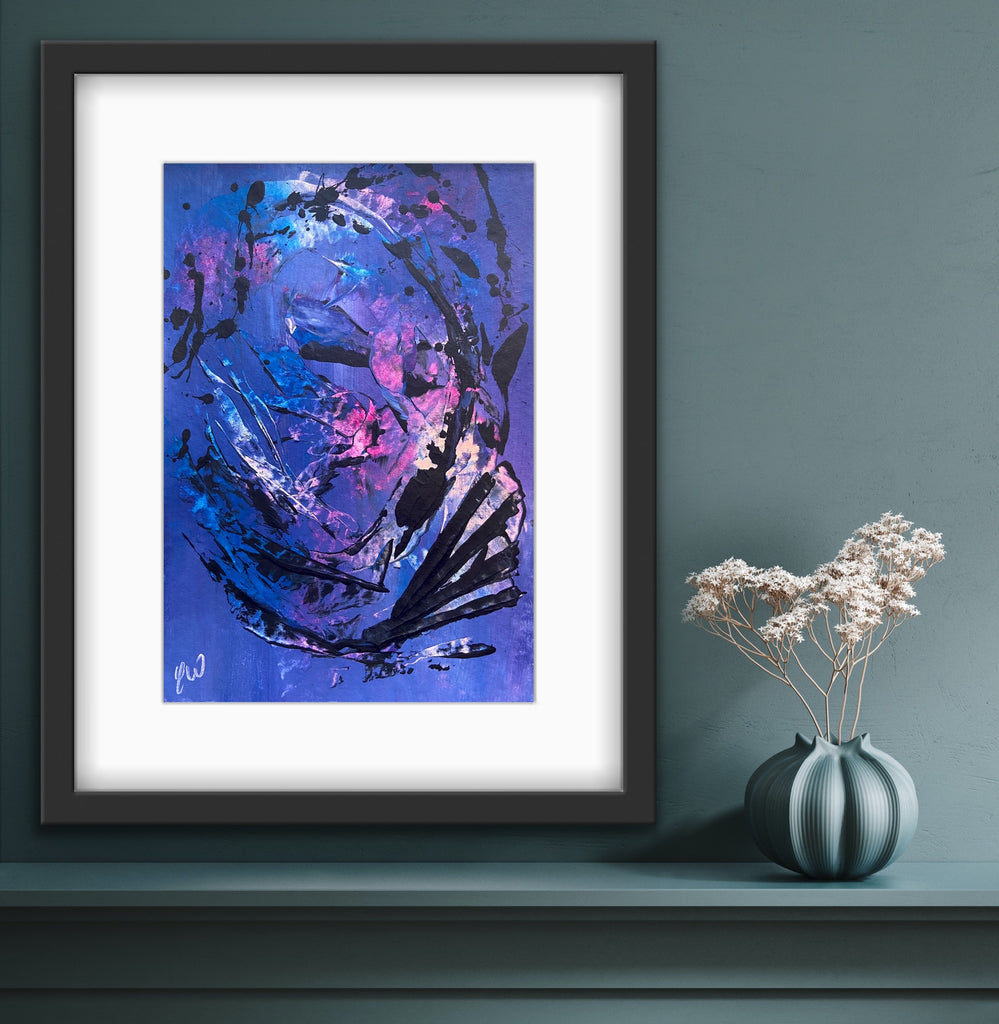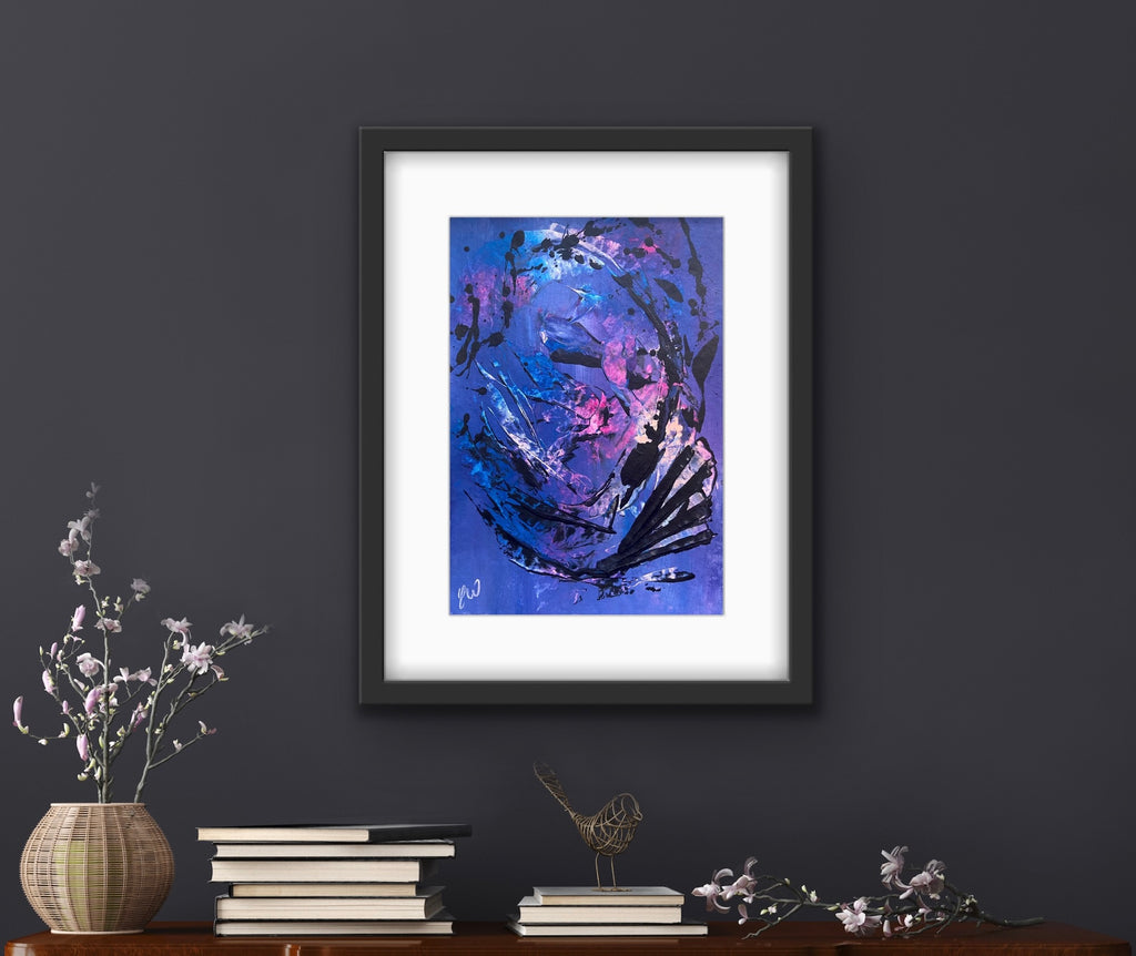 Dance is a beautiful abstract piece full of movement. Some images show what this piece looks like framed. Frames not included. 21 x 29.7 cm (A4 size) Acrylic on paper. Requires framing. No returns on original artworks so please choose carefully.