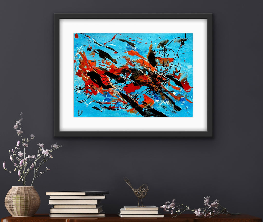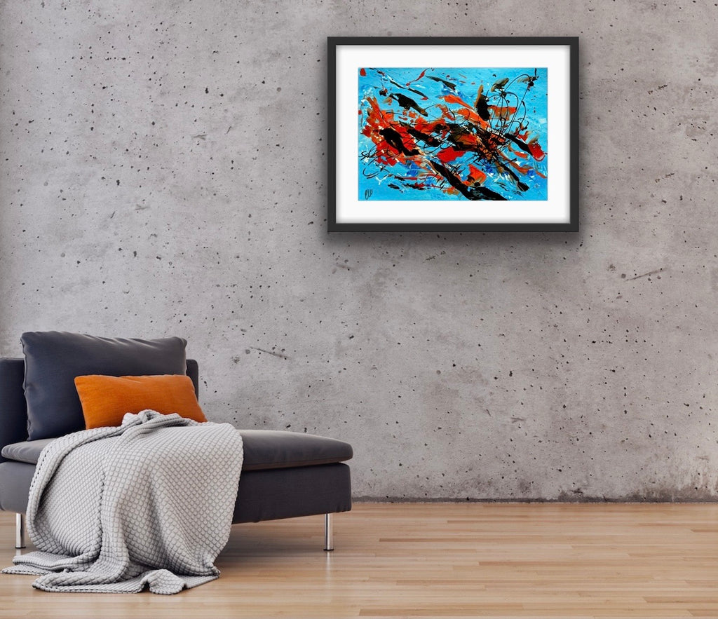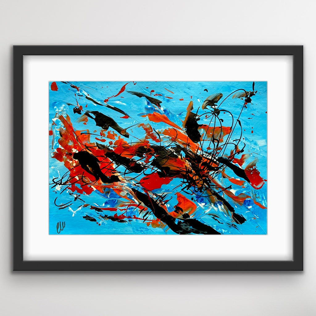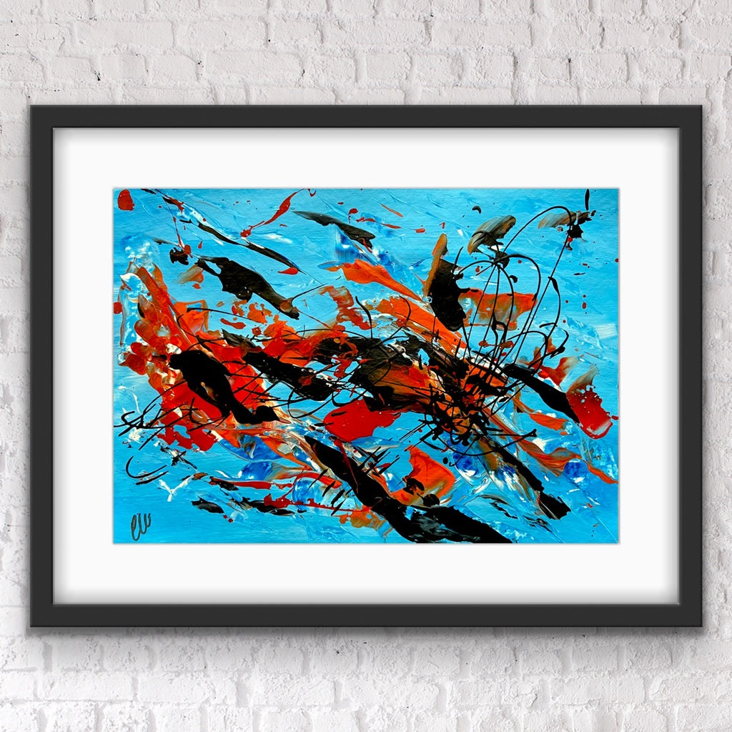 Exhilarate is a beautiful abstract with bold colour and lots of energy and captured movement. This piece is sure to add life to any space. Some images show what this piece looks like framed. Frames not included. 29.7 x 42 cm (A3 size) Acrylic on paper. Requires framing. Watch how this painting was made on my YouTube channel! Link to my YouTube is on the home page. No returns on original artworks so please choose carefully.