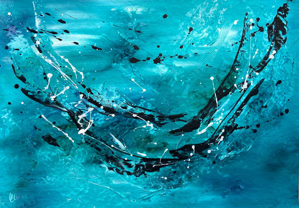 Feel The Rush is a lively abstract filled with energy and captured movement. Some images show what this piece looks like framed. Frames not included. 59.4 x 42 cm (A2 size) Acrylic on paper. Requires framing. No returns on original artworks so please choose carefully.
