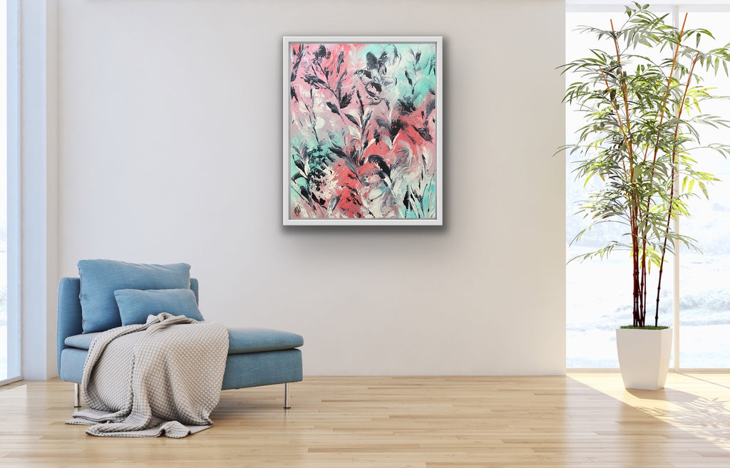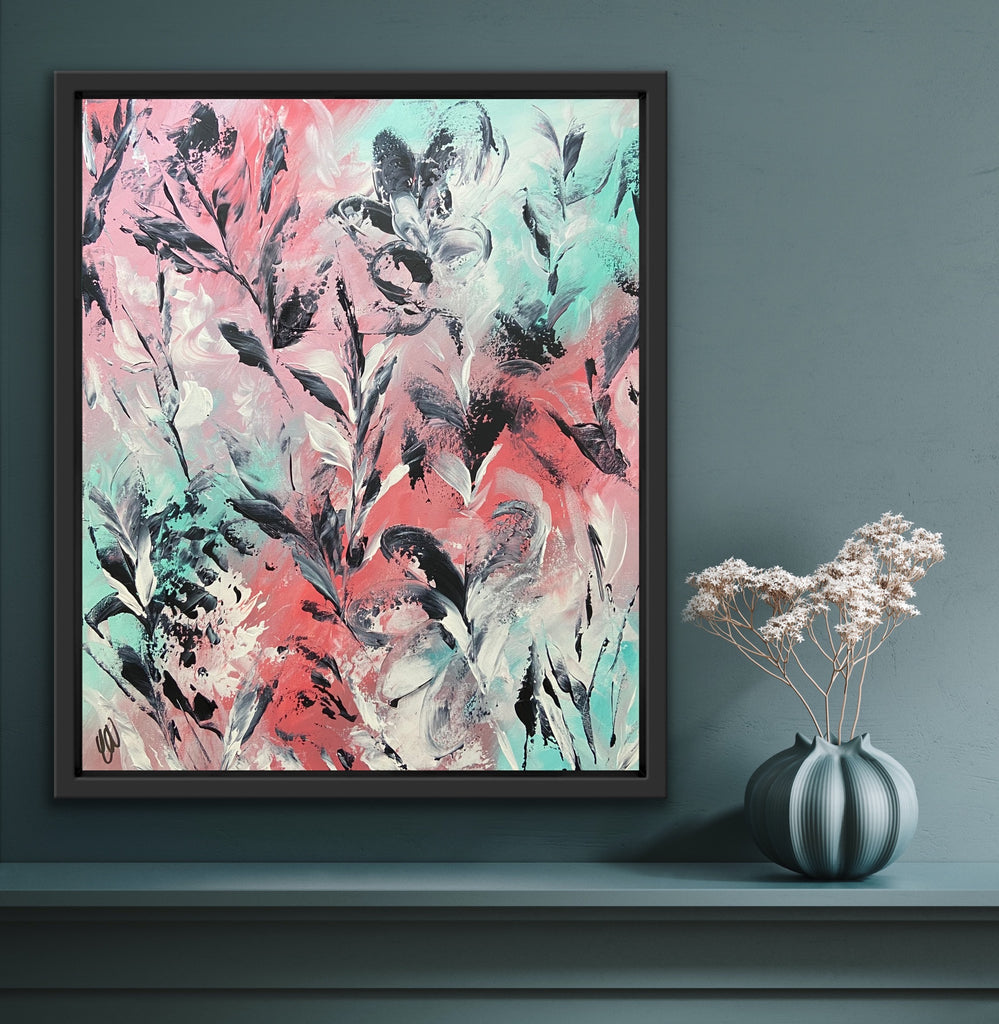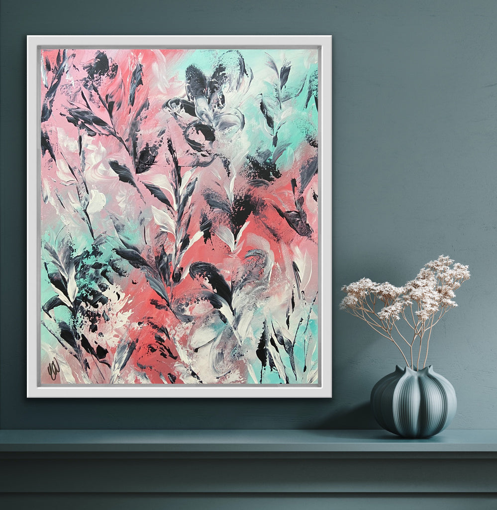 Here And Now is a beautiful abstract botanical piece that has an absolutely stunning colour combination. This artwork will be a beautiful addition to any space in your home or office! 60 x 50 cm. Acrylic on canvas, ready to hang. Some images show what this painting will look like framed. Frames not included. See how this painting was made on my YouTube channel. Link to my YouTube channel is on the home page. No returns on original artworks so please choose carefully.