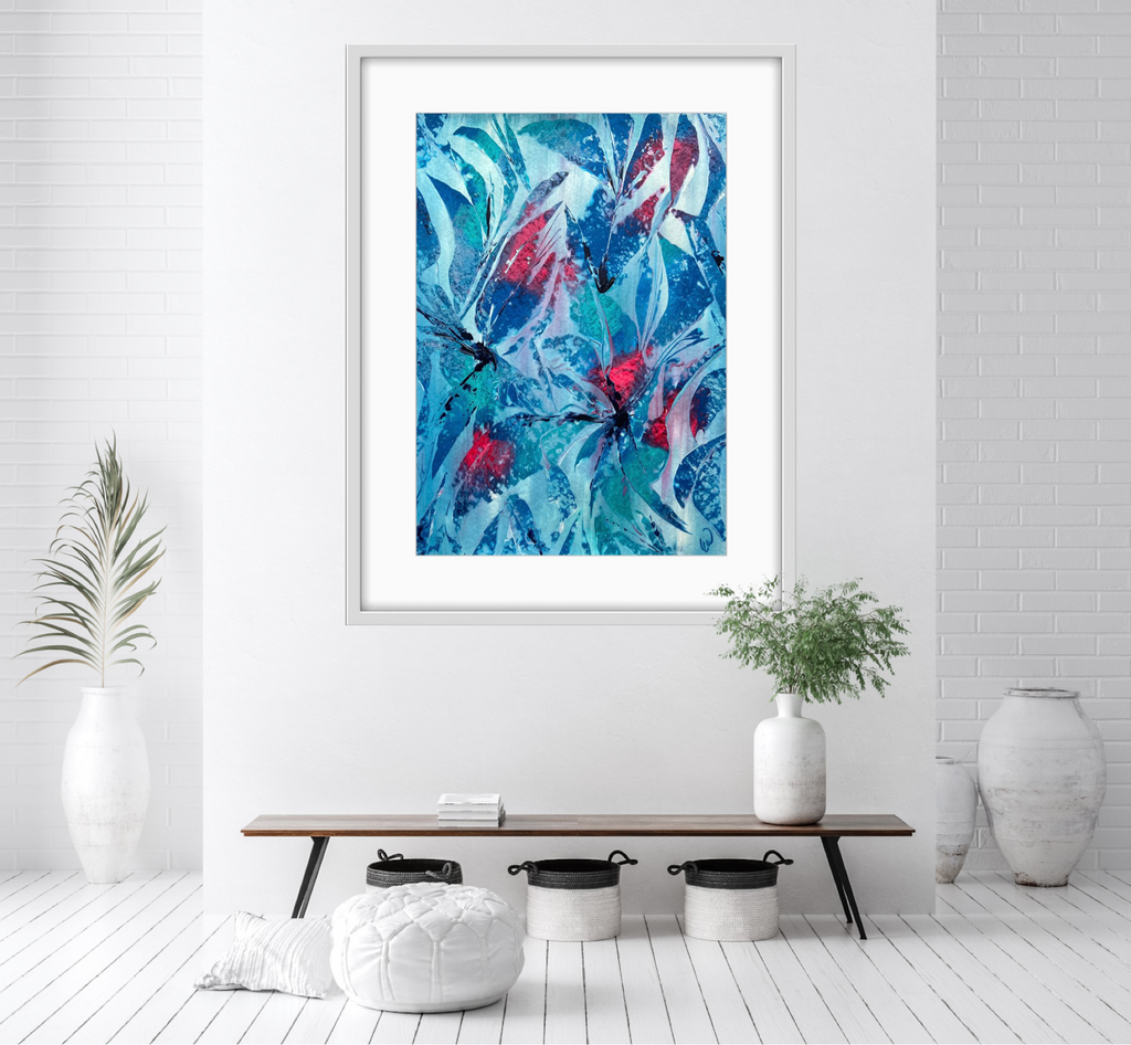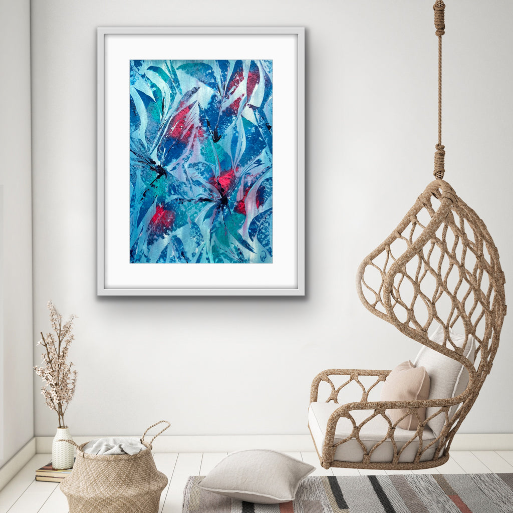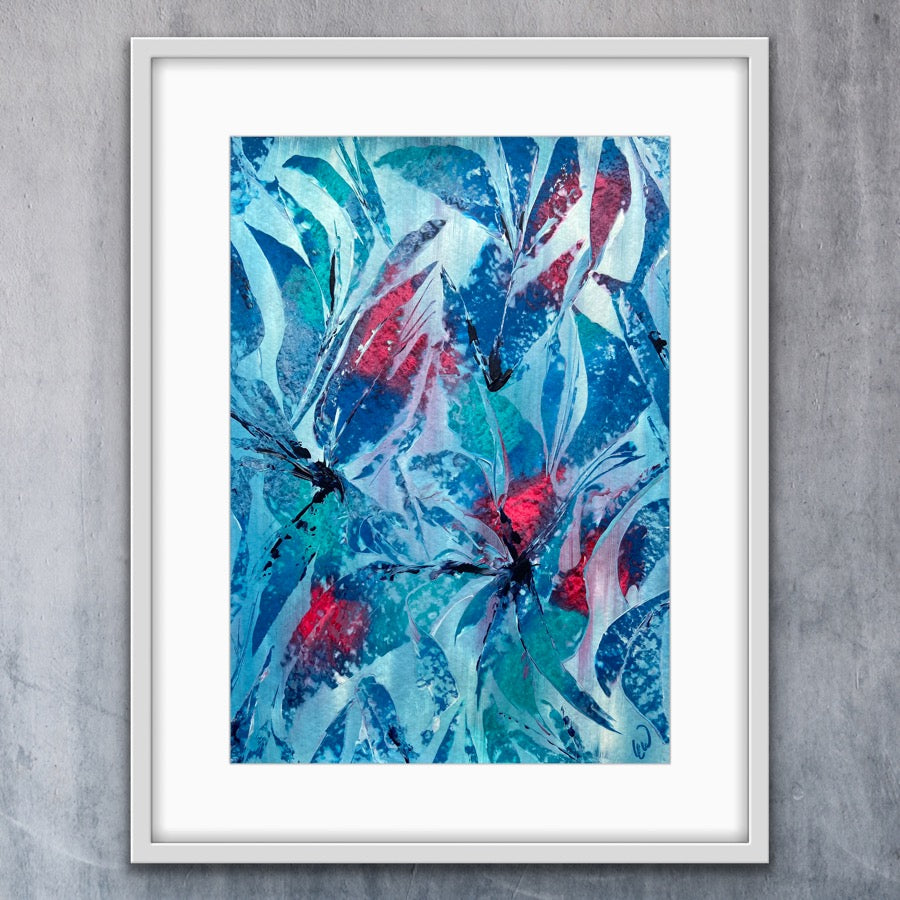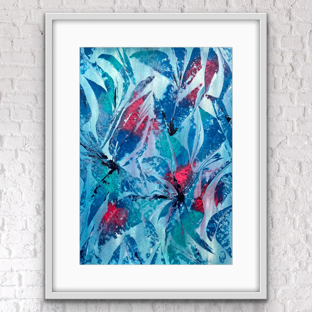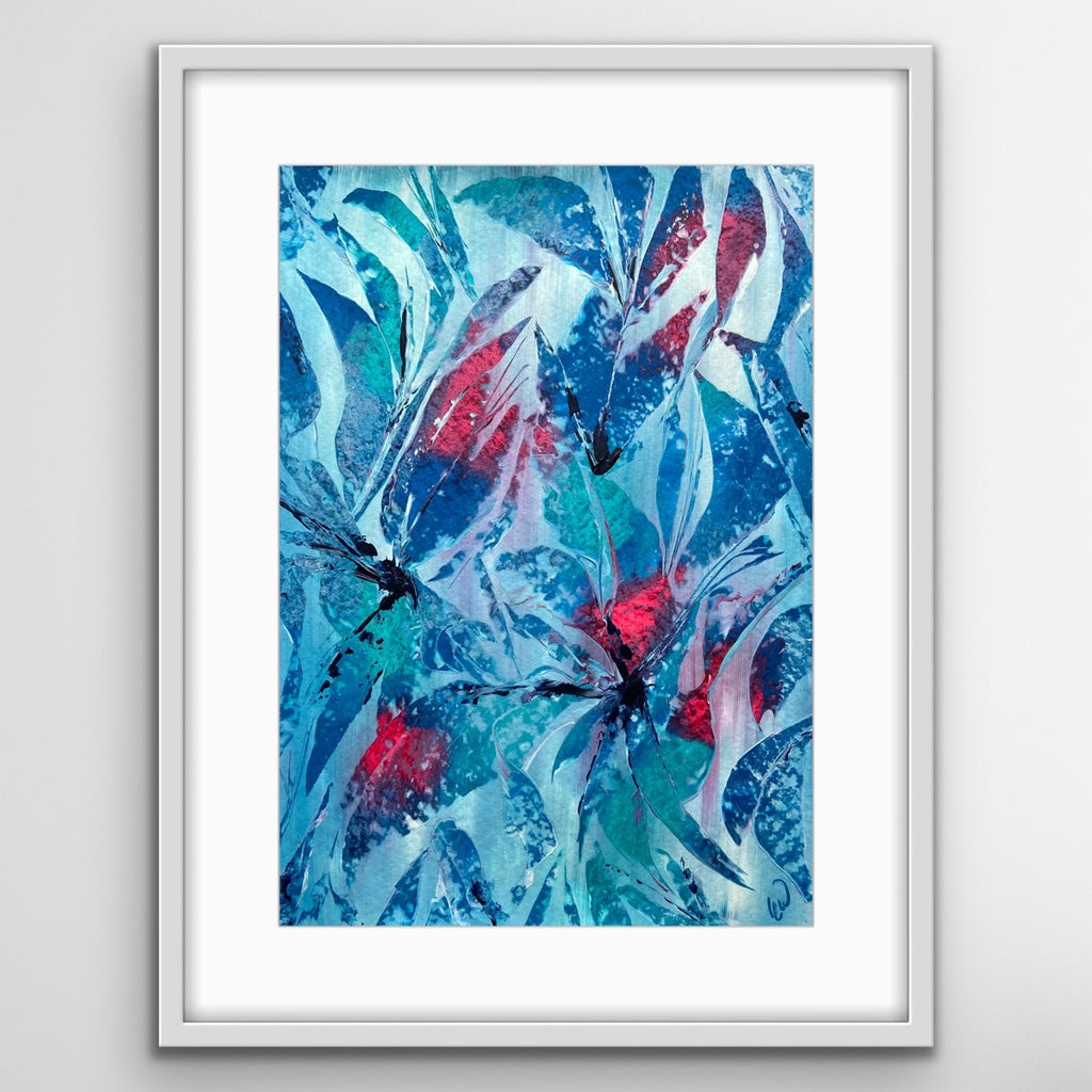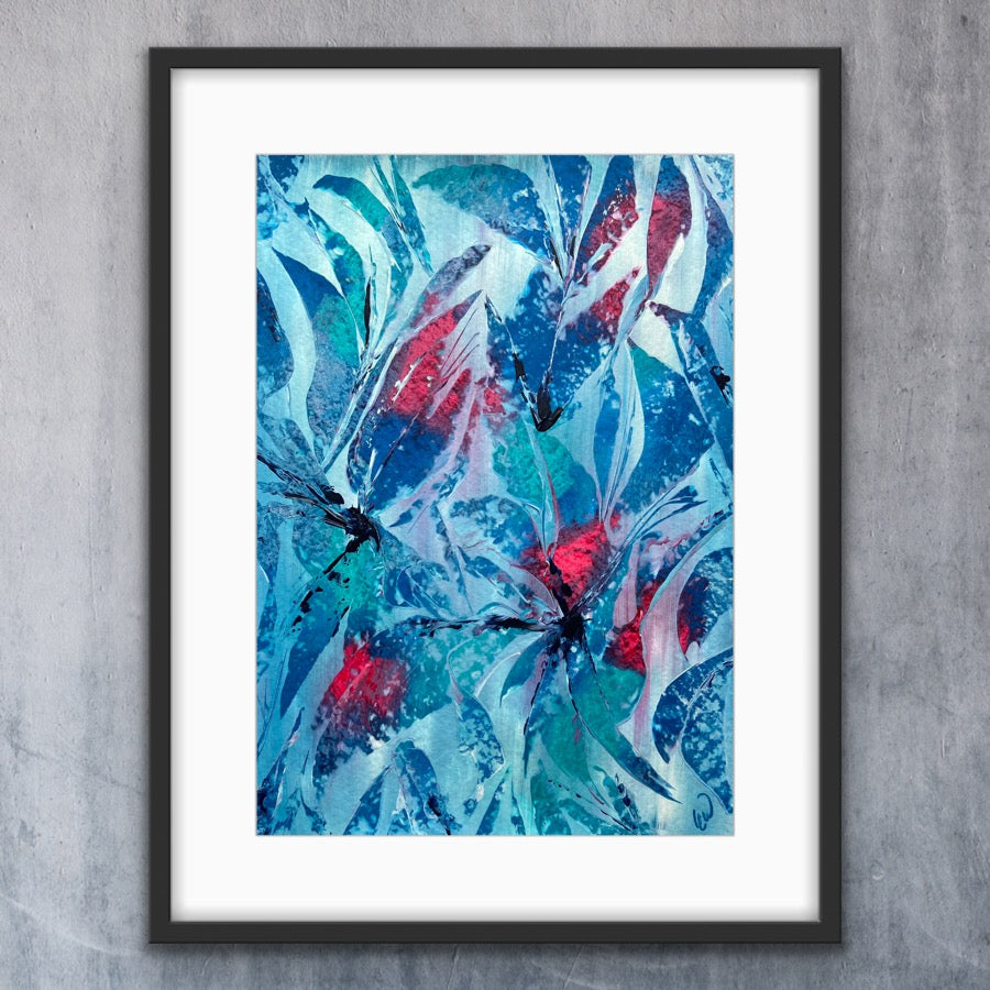 Kiss Me Quick is a beautiful abstract botanical piece inspired by nature. Some images show what this piece looks like framed. Frames not included. 59.4 x 42 cm (A2 size) Acrylic on paper. Requires framing. No returns on original artworks so please choose carefully.