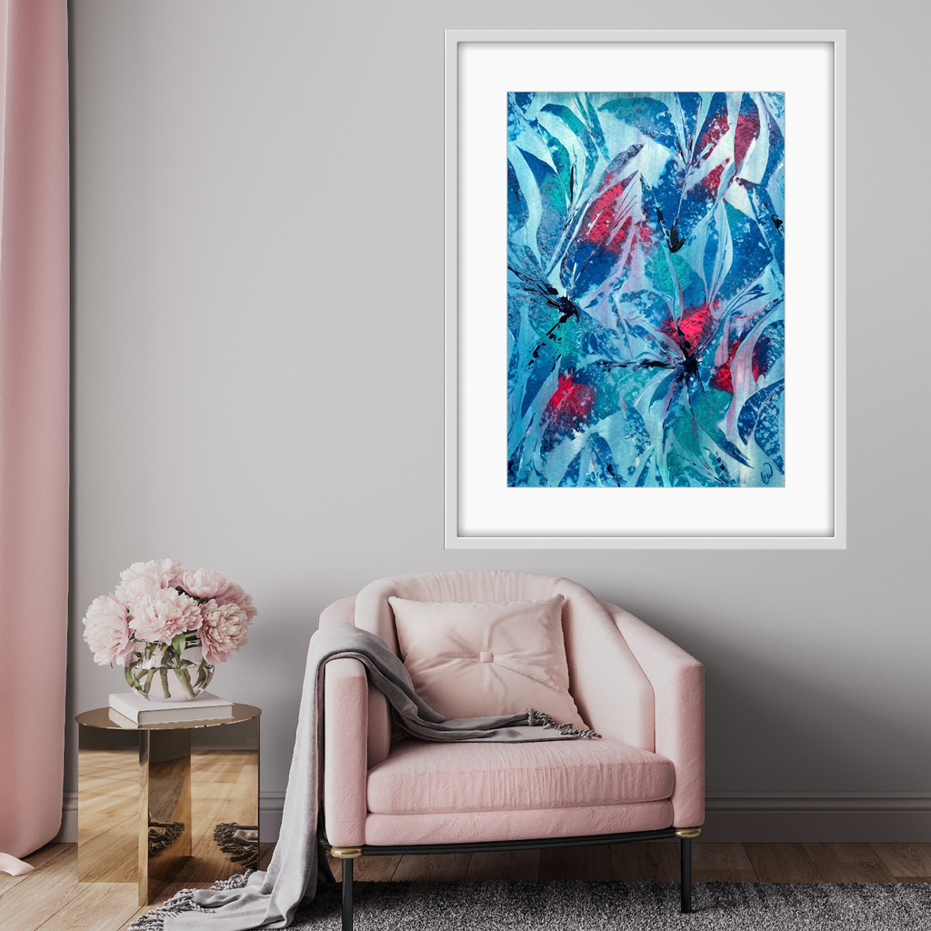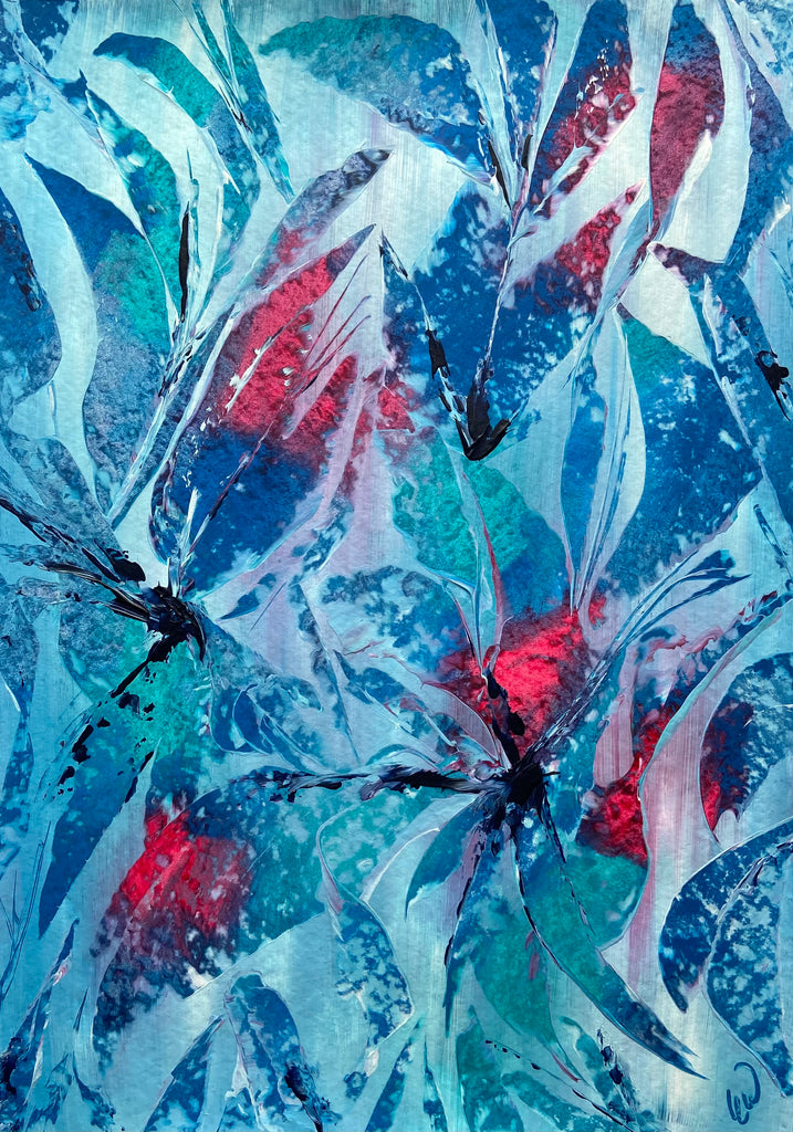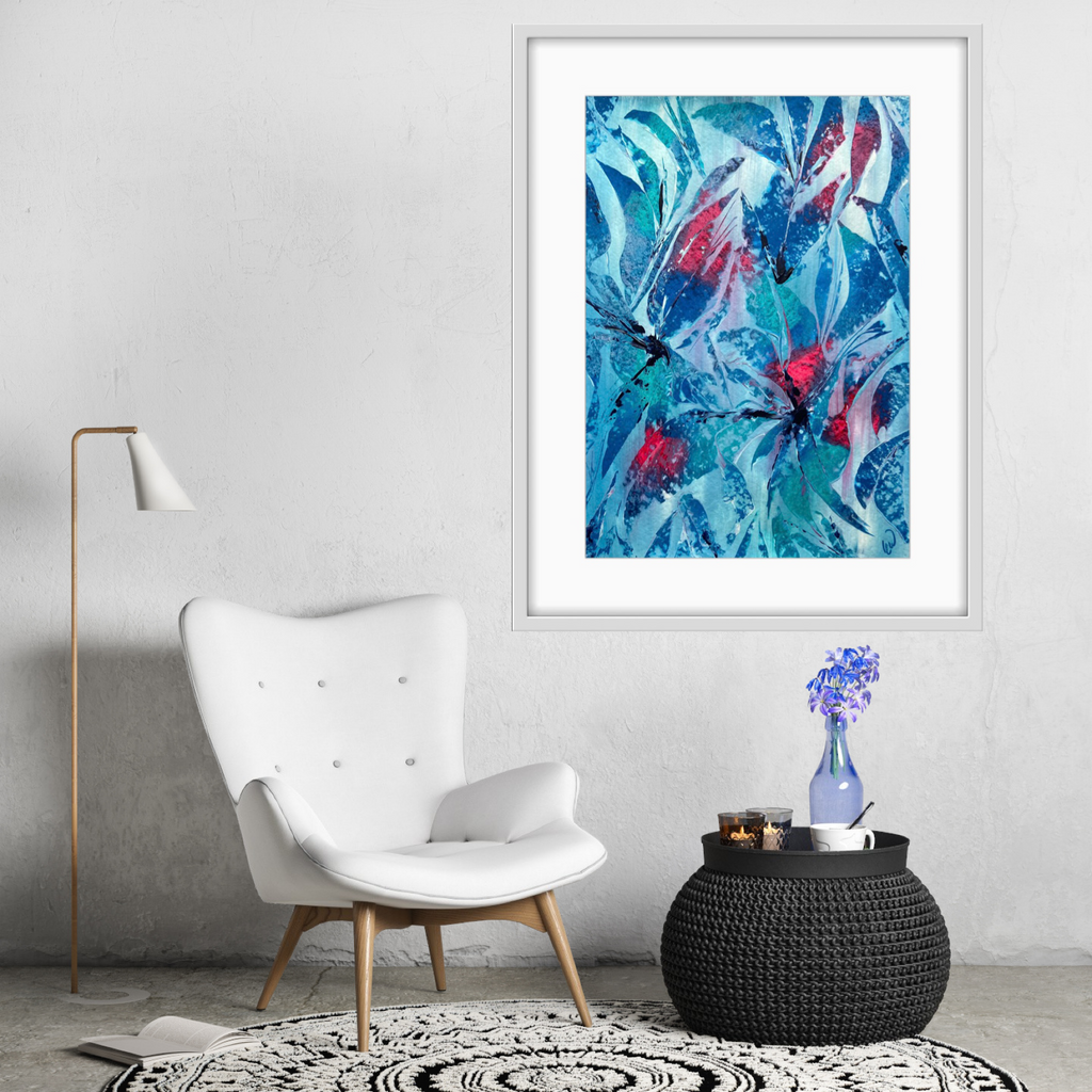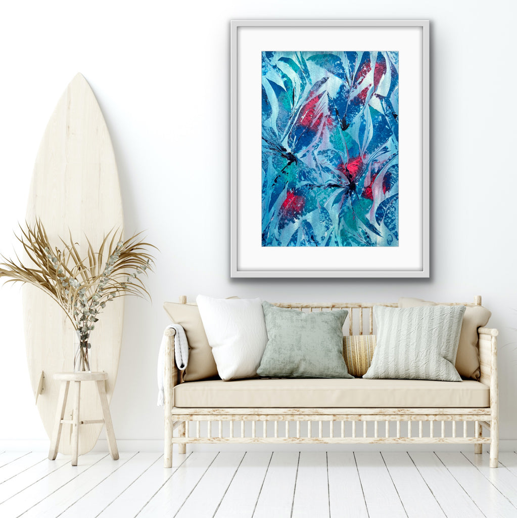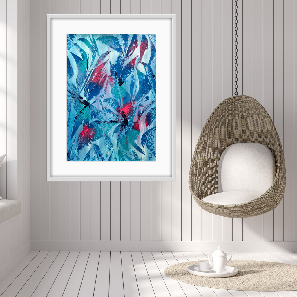 Kiss Me Quick is a beautiful abstract botanical piece inspired by nature. Some images show what this piece looks like framed. Frames not included. 59.4 x 42 cm (A2 size) Acrylic on paper. Requires framing. No returns on original artworks so please choose carefully.