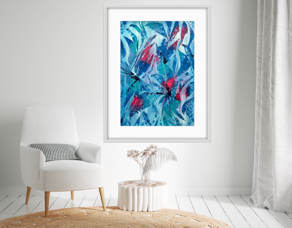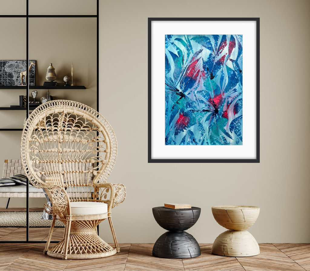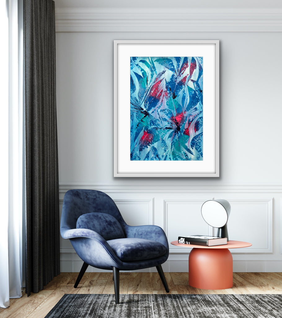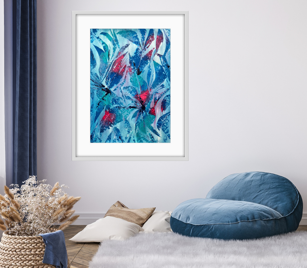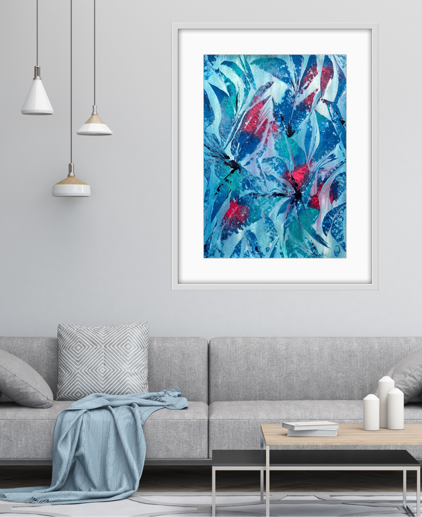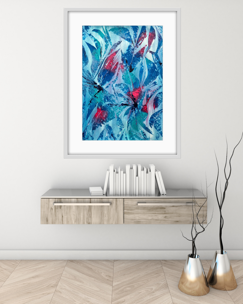 Kiss Me Quick is a beautiful abstract botanical piece inspired by nature. Some images show what this piece looks like framed. Frames not included. 59.4 x 42 cm (A2 size) Acrylic on paper. Requires framing. No returns on original artworks so please choose carefully.