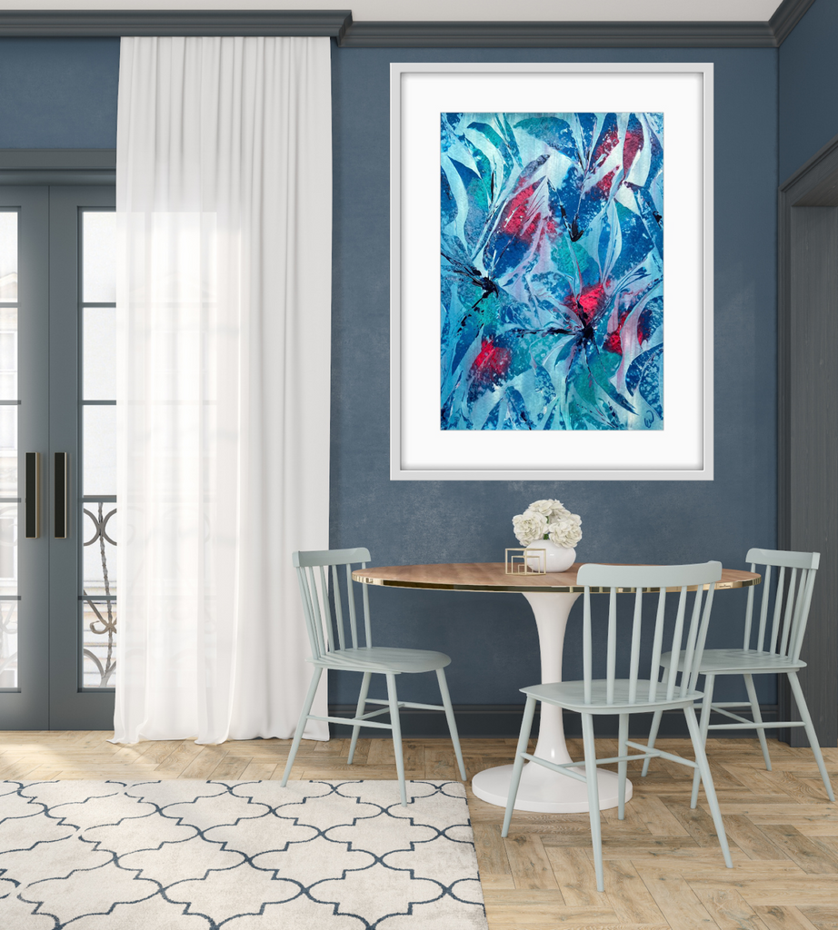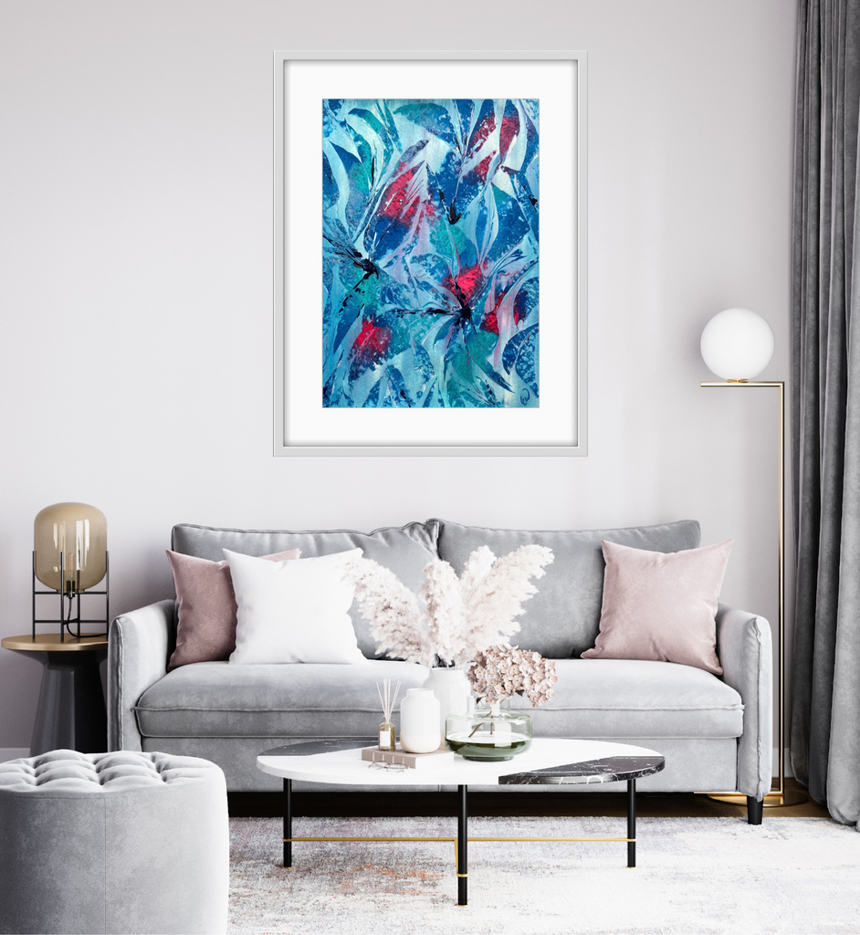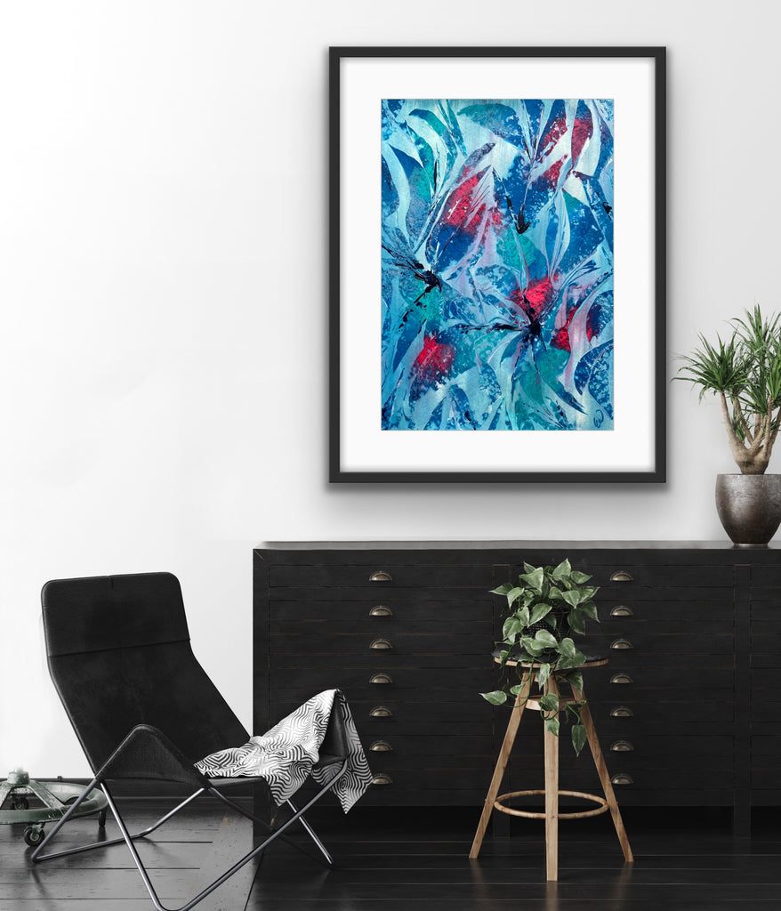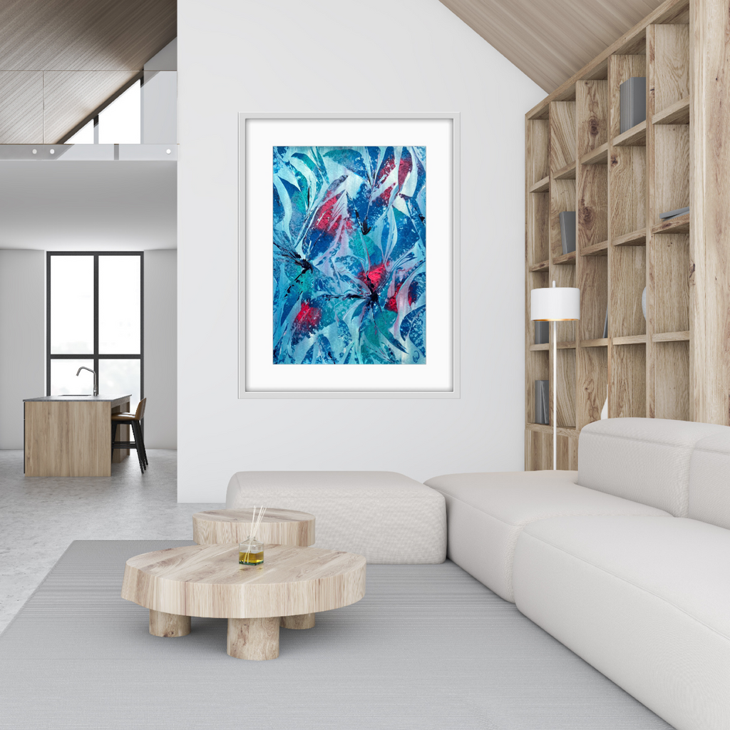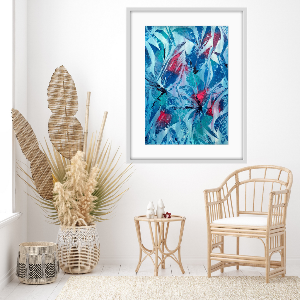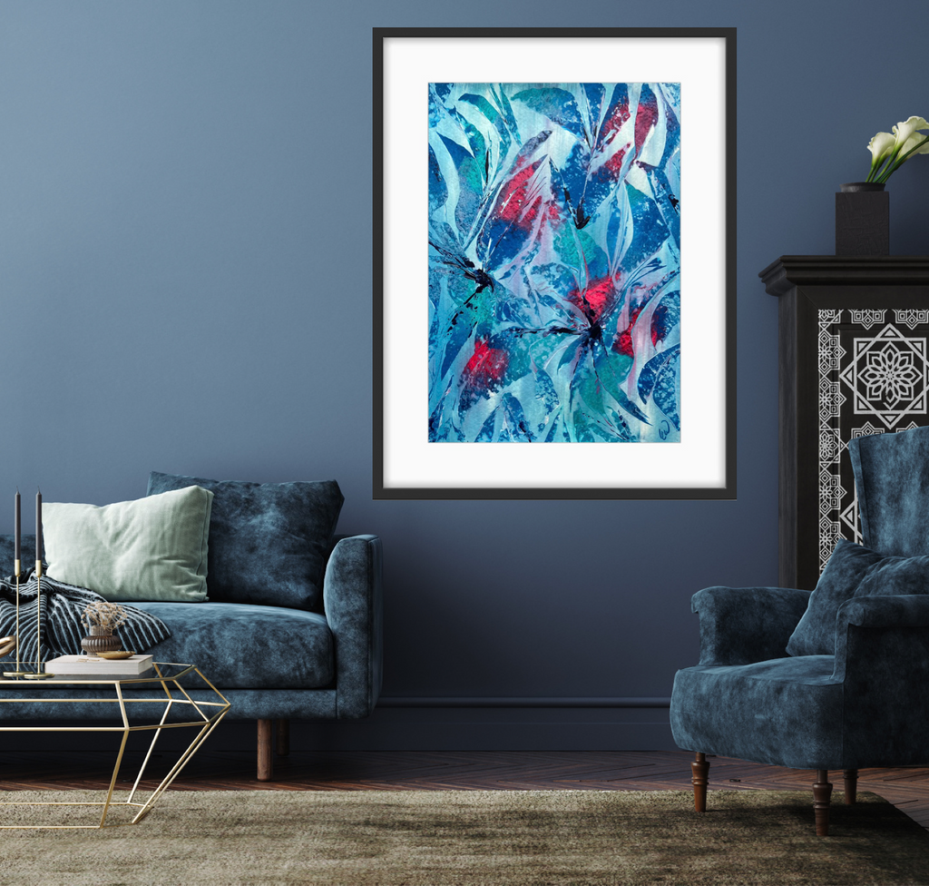 Kiss Me Quick is a beautiful abstract botanical piece inspired by nature. Some images show what this piece looks like framed. Frames not included. 59.4 x 42 cm (A2 size) Acrylic on paper. Requires framing. No returns on original artworks so please choose carefully.