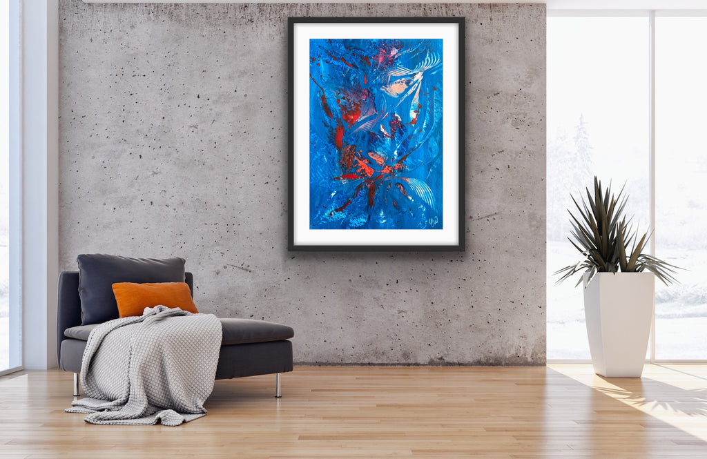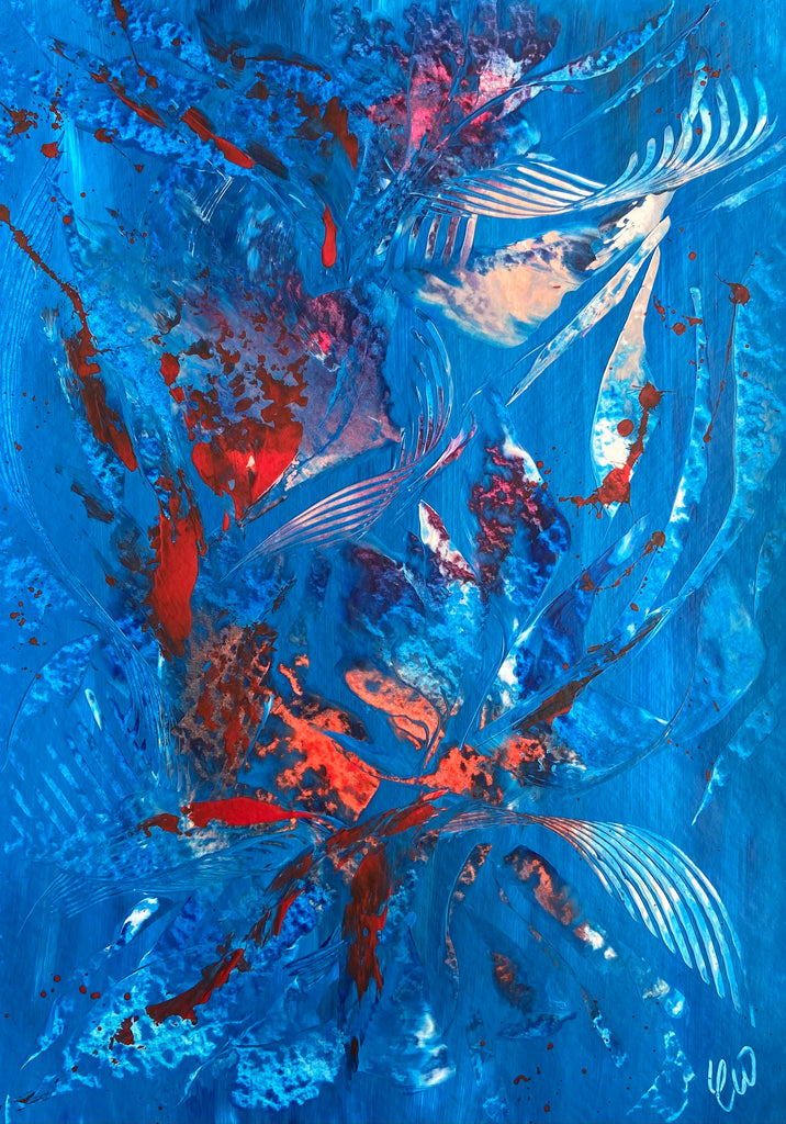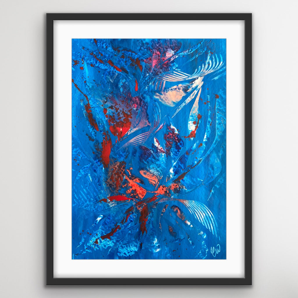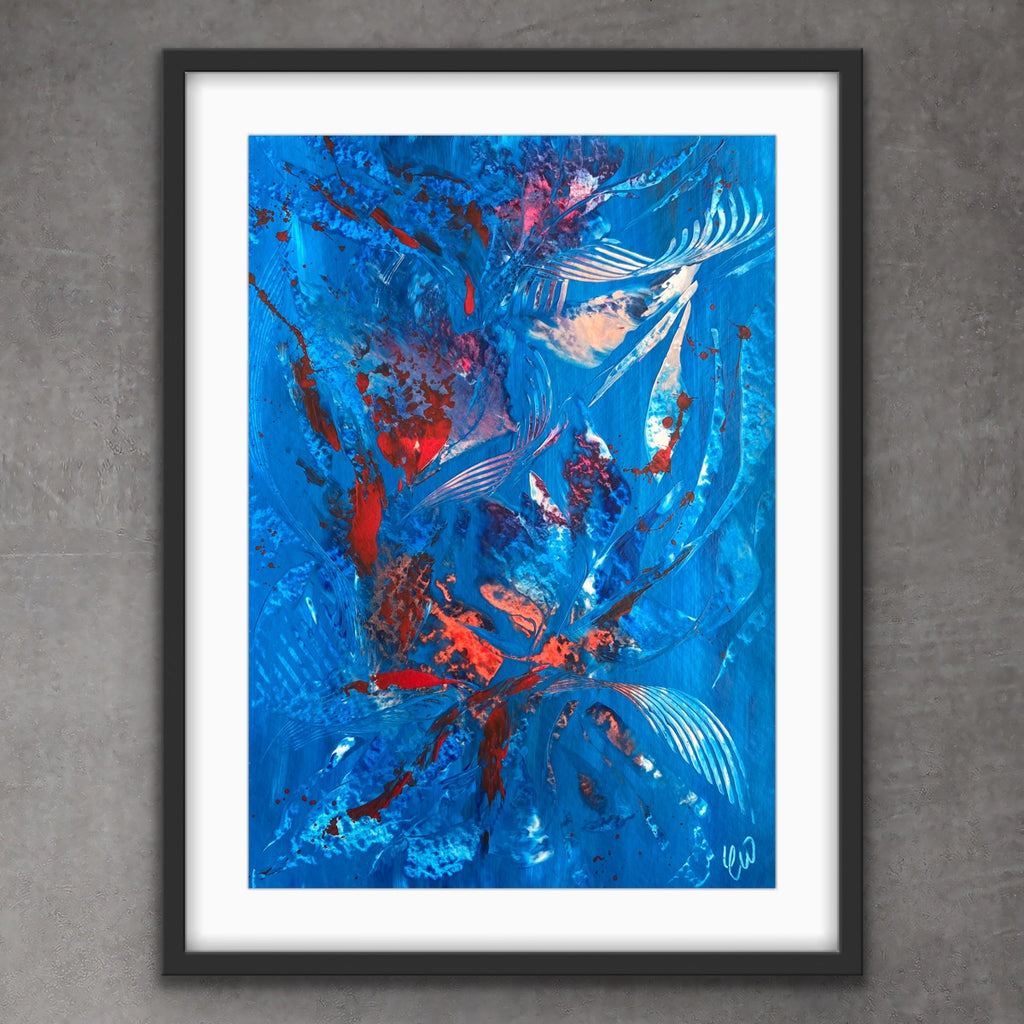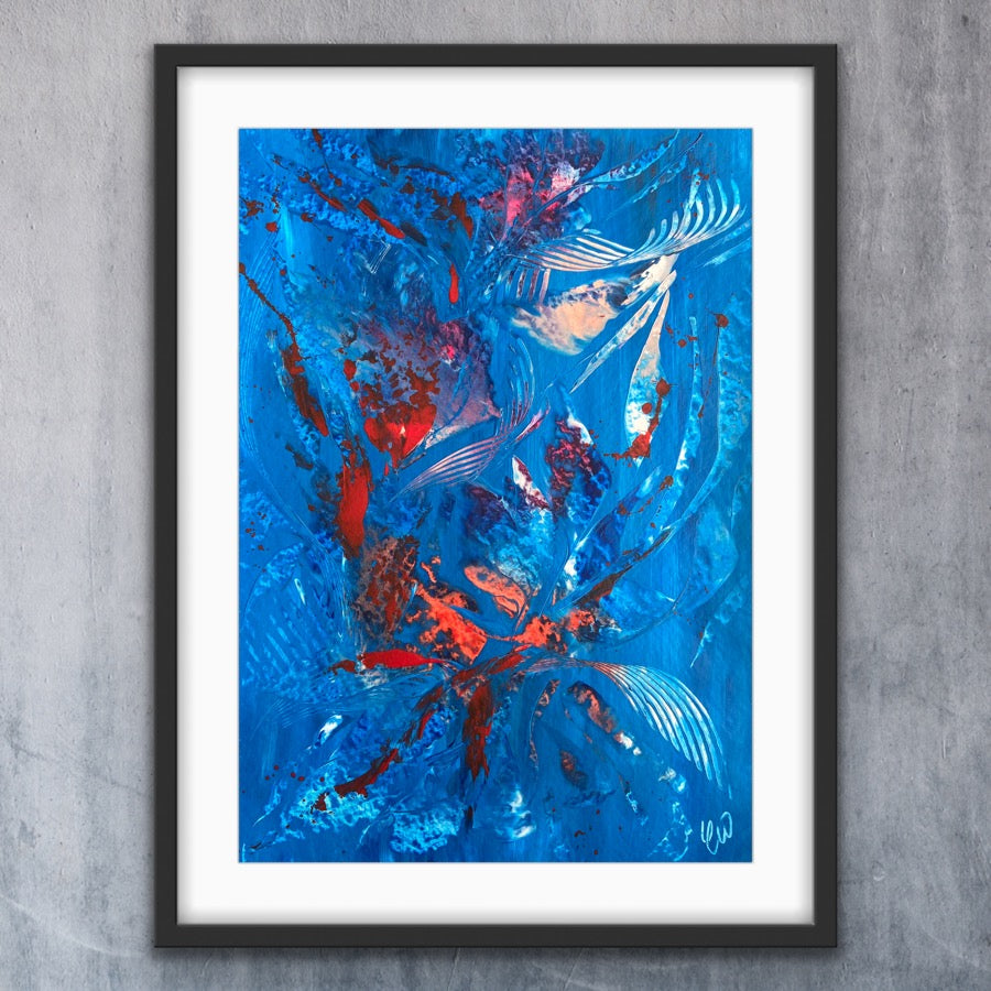 Spirited is a lively textured abstract painting that is symbolic of energy and freedom. Some images show what this piece looks like framed. Frames not included. 59.4 x 42 cm (A2 size) Acrylic on paper. Requires framing. No returns on original artworks so please choose carefully.