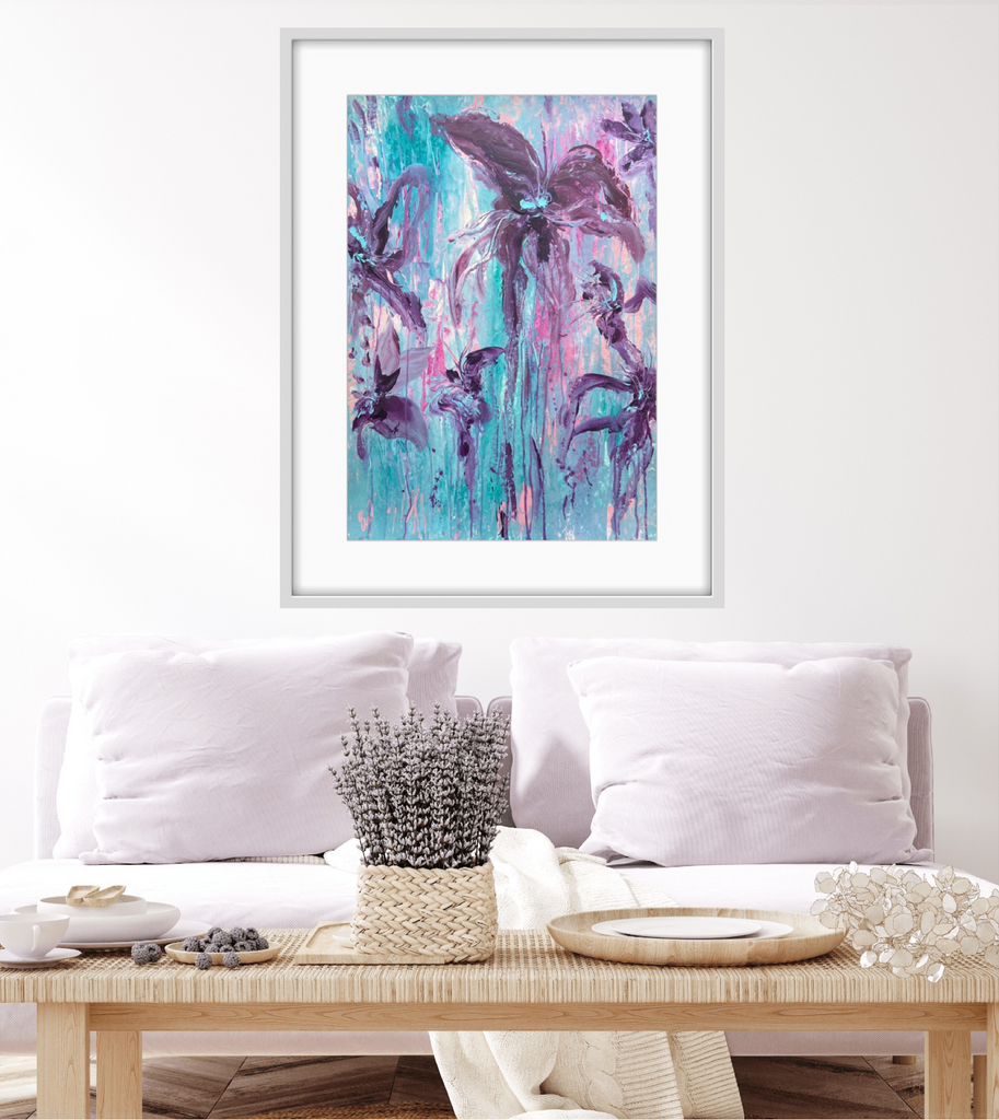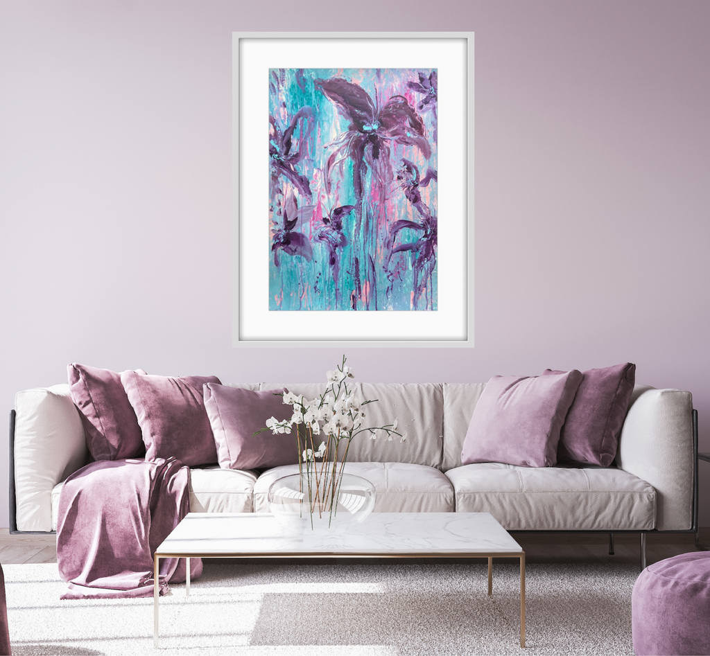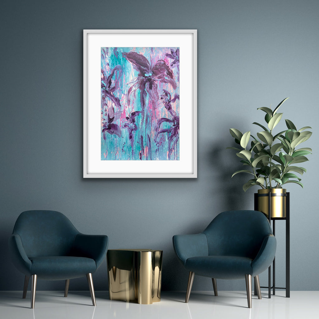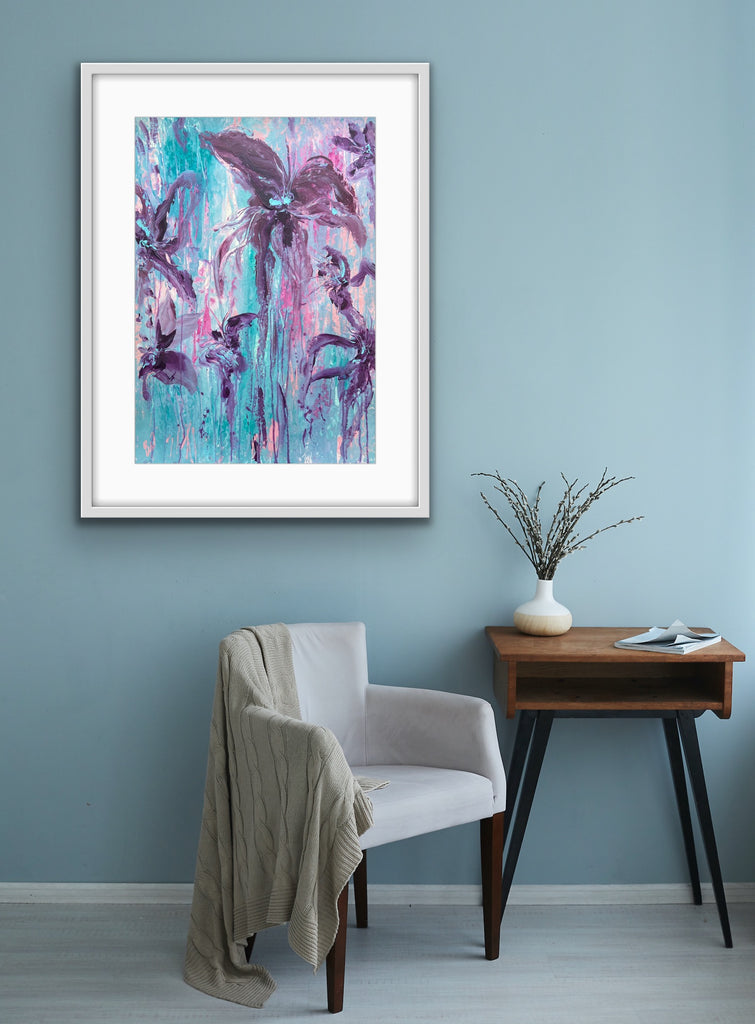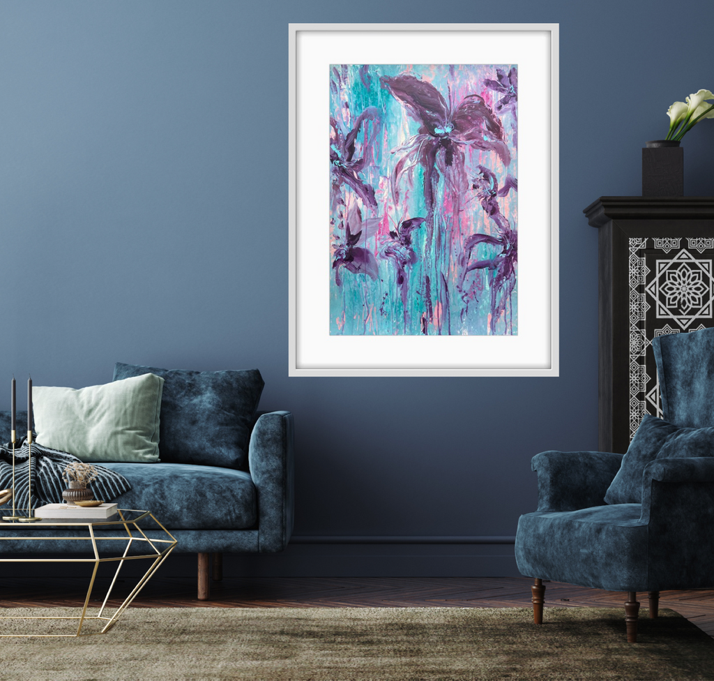 Spring Shower is a beautiful abstract botanical piece that has a stunning colour palette and will bring life to any room. Some images show what this piece looks like framed. Frames not included. 59.4 x 42 cm (A2 size) Acrylic on paper. Requires framing. No returns on original artworks so please choose carefully.