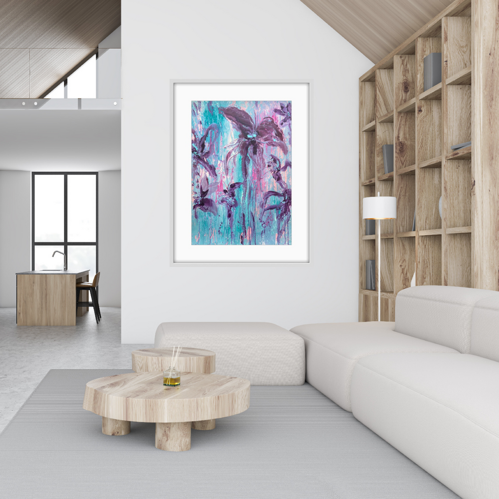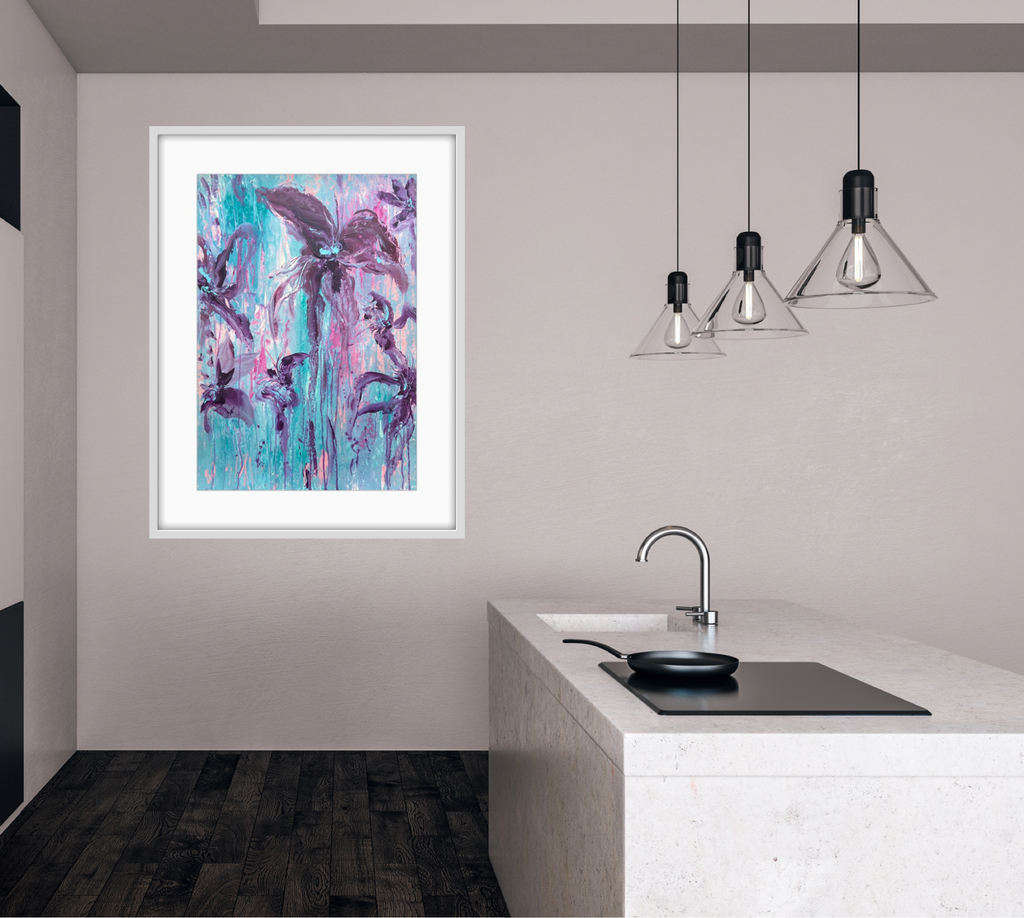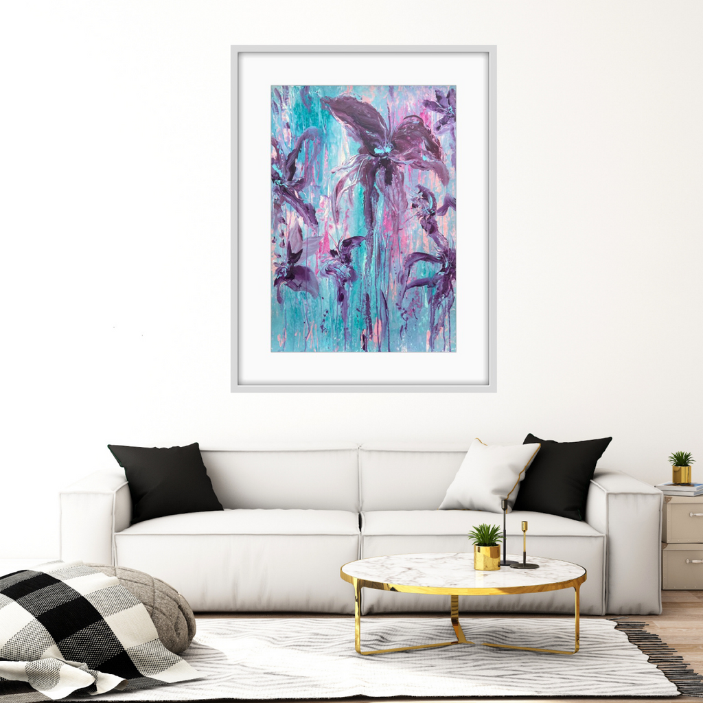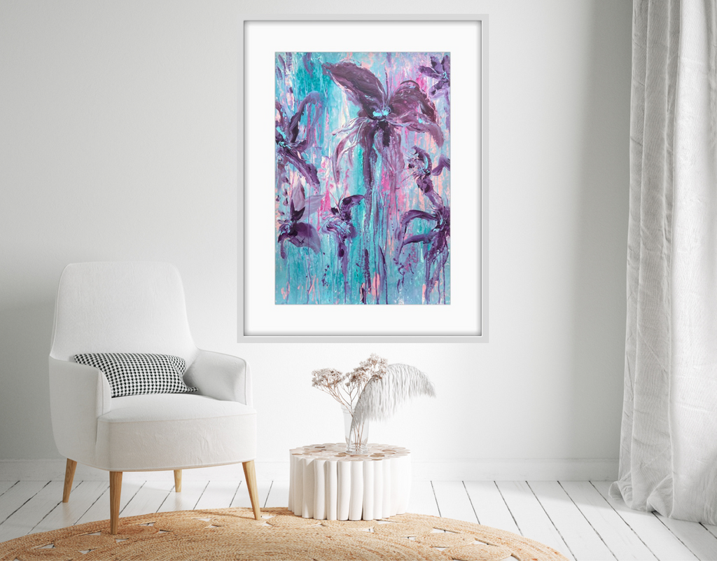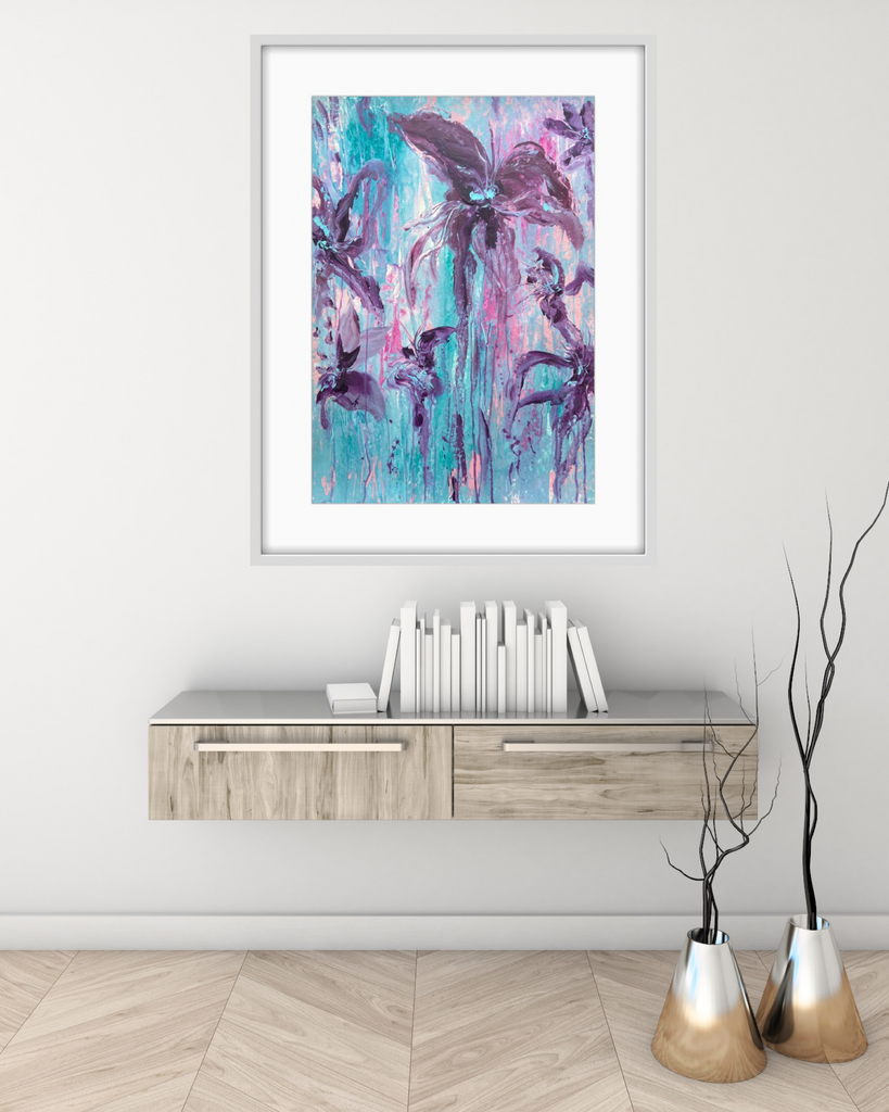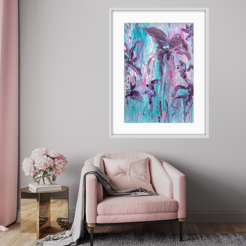 Spring Shower is a beautiful abstract botanical piece that has a stunning colour palette and will bring life to any room. Some images show what this piece looks like framed. Frames not included. 59.4 x 42 cm (A2 size) Acrylic on paper. Requires framing. No returns on original artworks so please choose carefully.